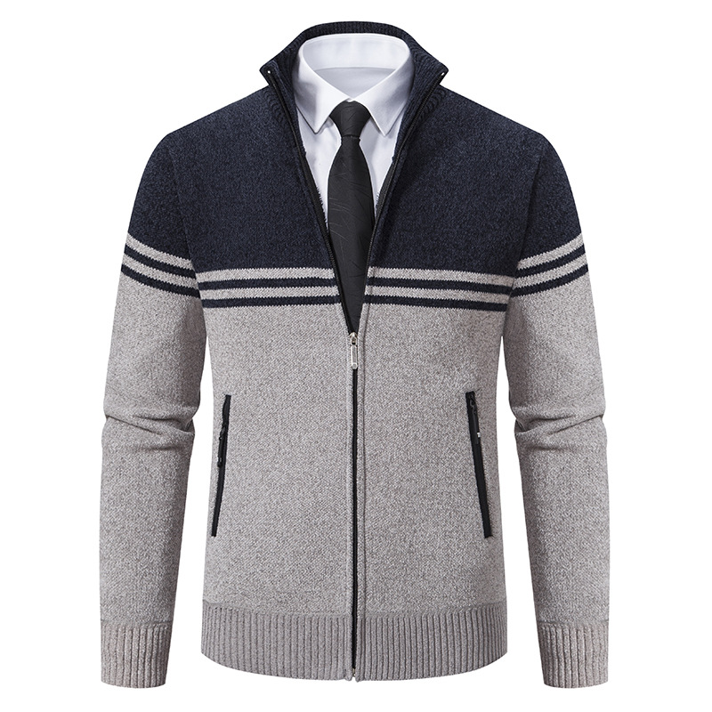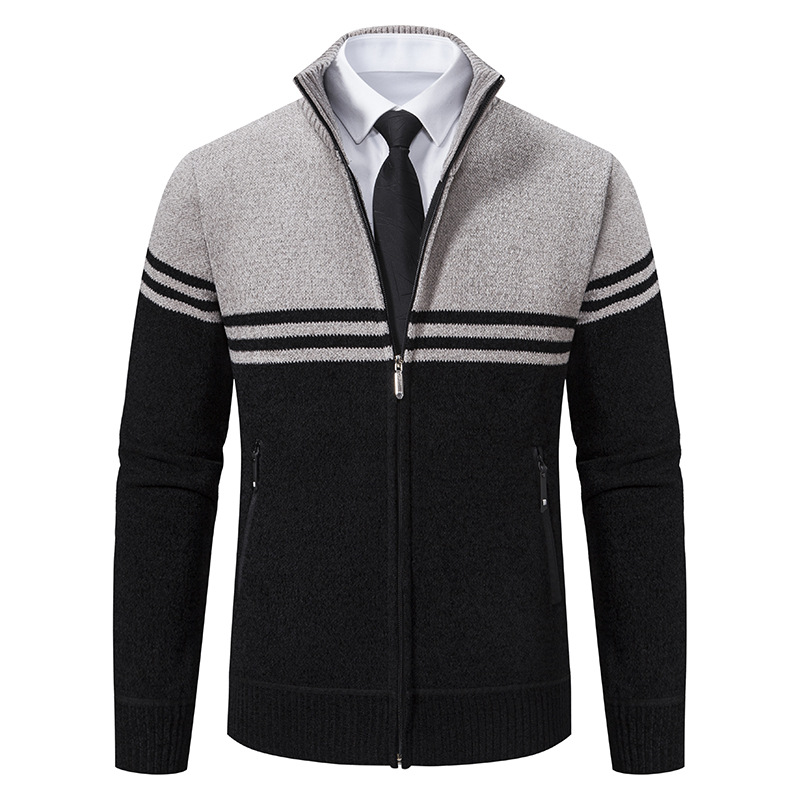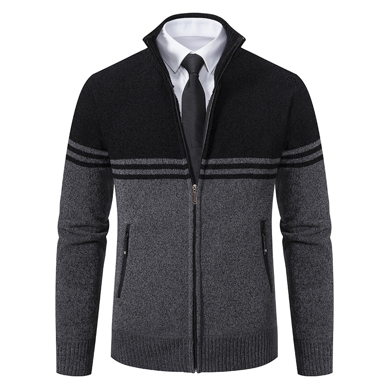 2023 가을과 겨울 대외 무역 새로운 남성 스탠드 칼라 스웨터 재킷 패션 남성 캐주얼 느슨한 색상 매칭 스웨터