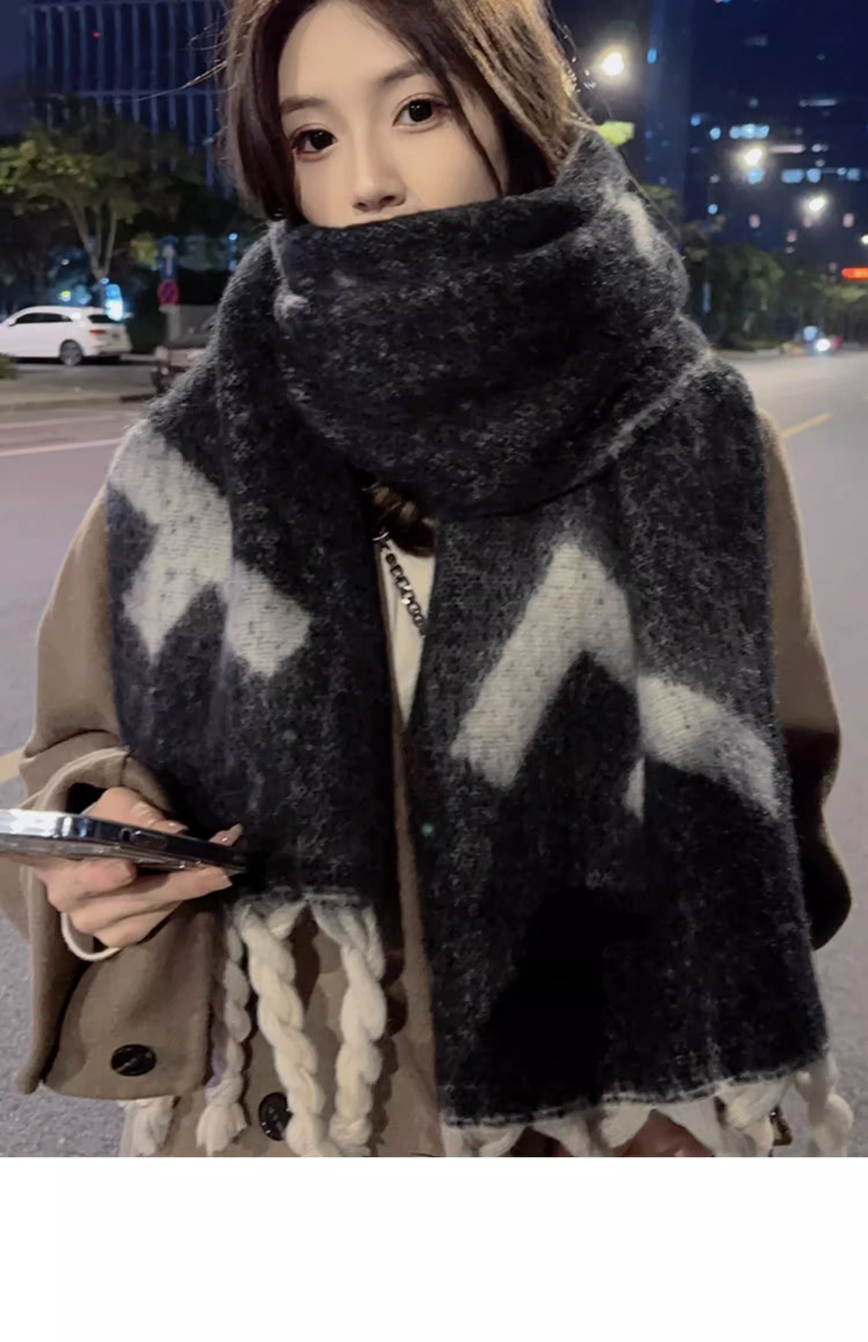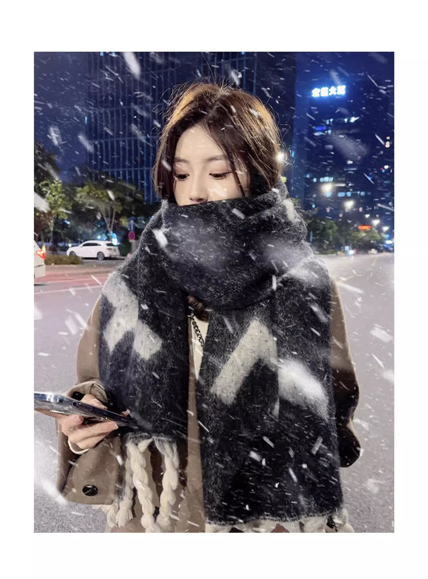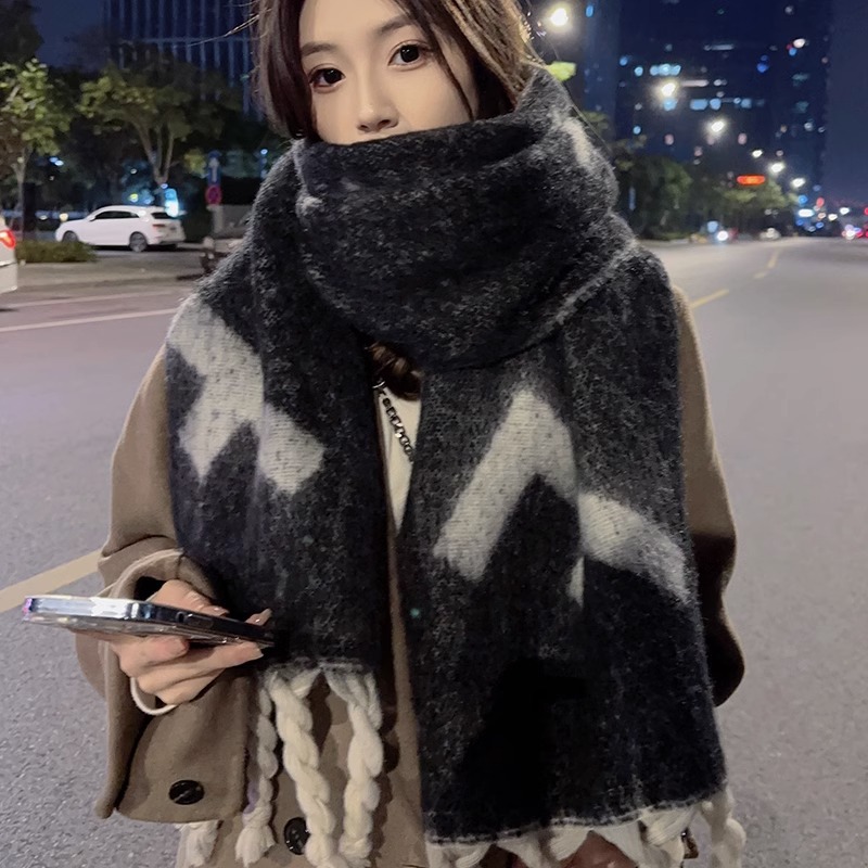 모헤어 스카프 여성용 겨울 2023 새로운 온라인 인기 한국식 모든 매치 고급 감각 꼰 숄 따뜻한 스카프스토어 가기