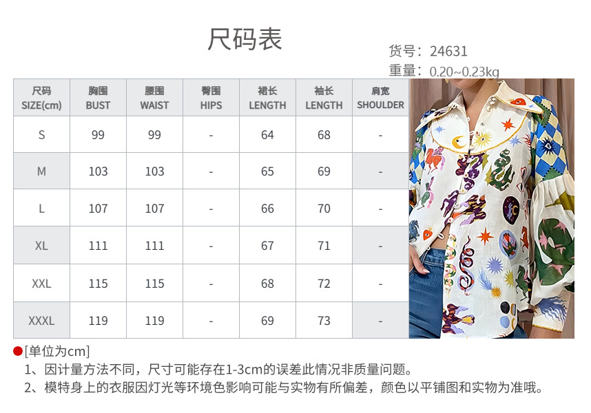 가을 2023 유럽과 미국 여성 의류 아마존 새로운 우아한 통근 인쇄 옷깃 여성용 싱글 브레스트 랜턴 슬리브 셔츠스토어 가기