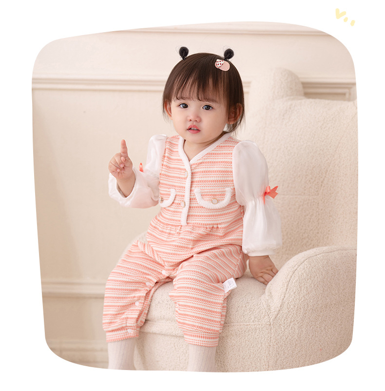 아이디어 아기 한국식 점프 슈트 2023 가을 아기 소녀를위한 새로운 긴팔 더블 레이어 등반 세트 봄과 가을 3220스토어 가기