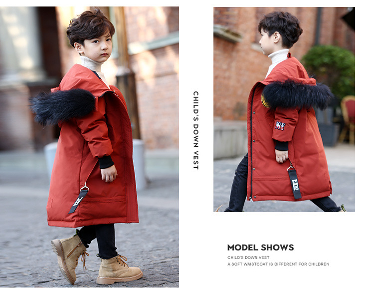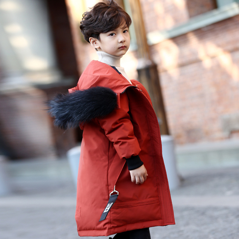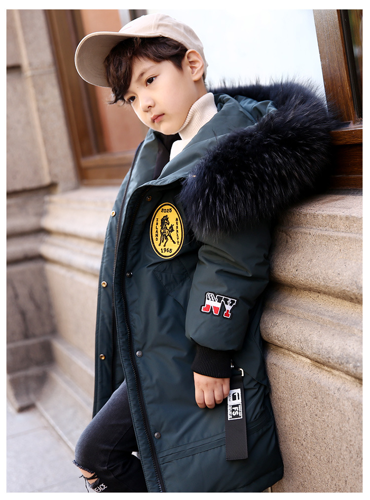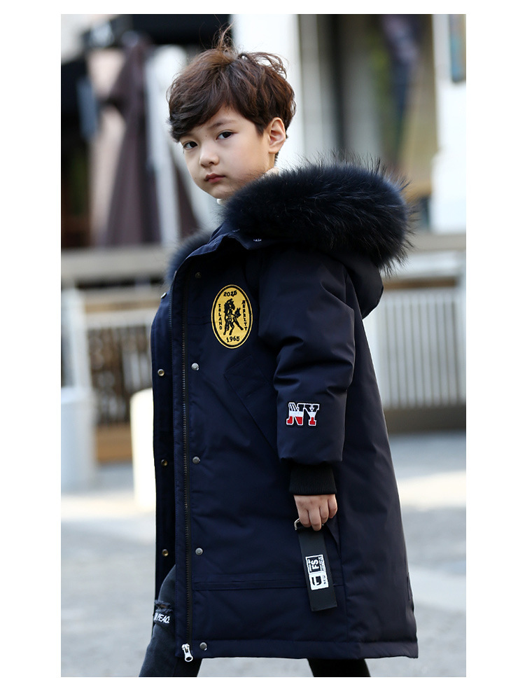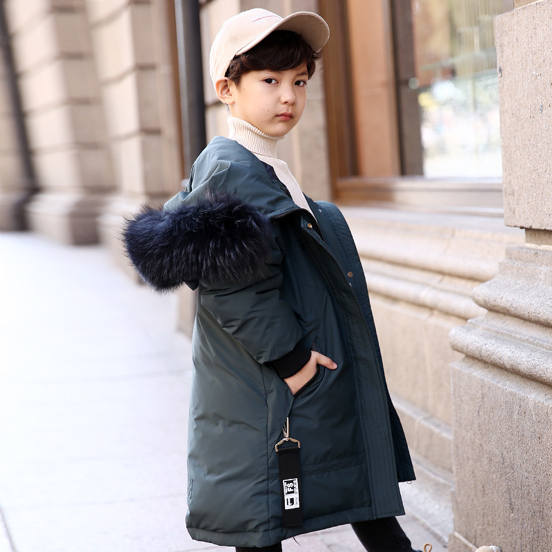 아동용 다운 실크 재킷 2024 새로운 스타일 소년 중대형 아동용 두꺼운 중간 길이 한국 스타일 캐주얼 재킷 겨울스토어 가기