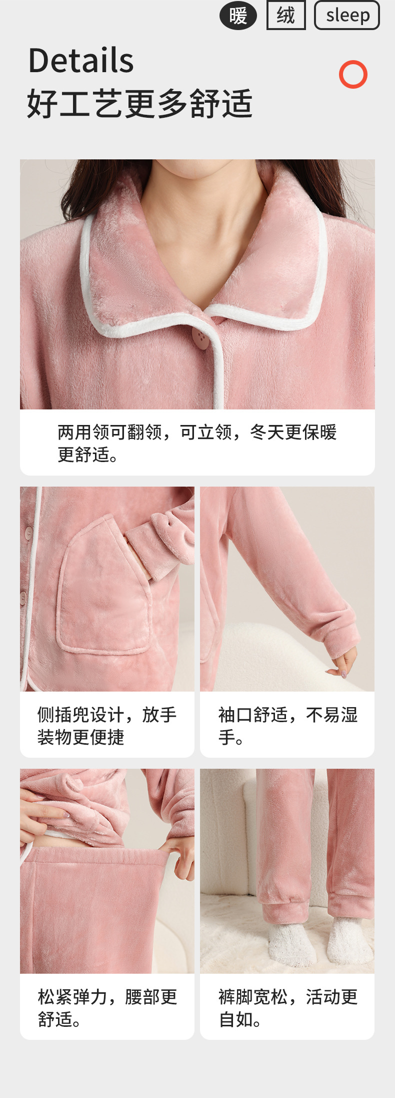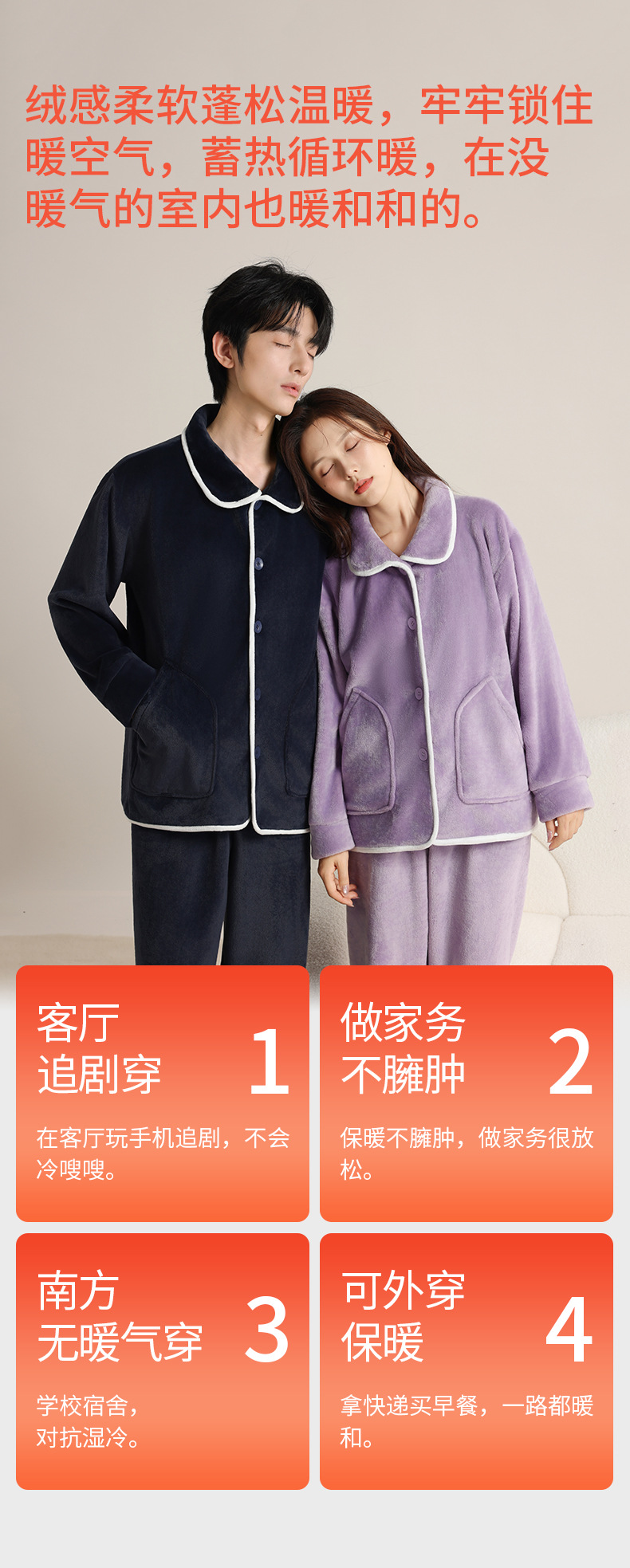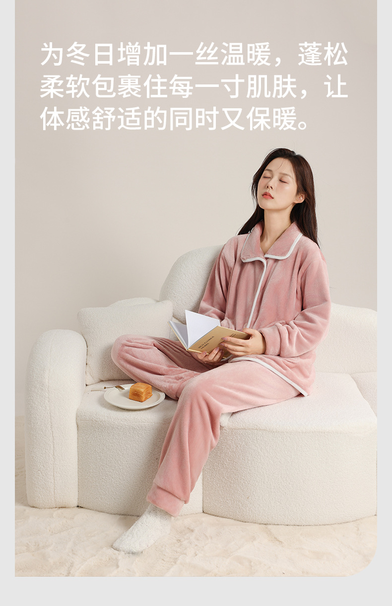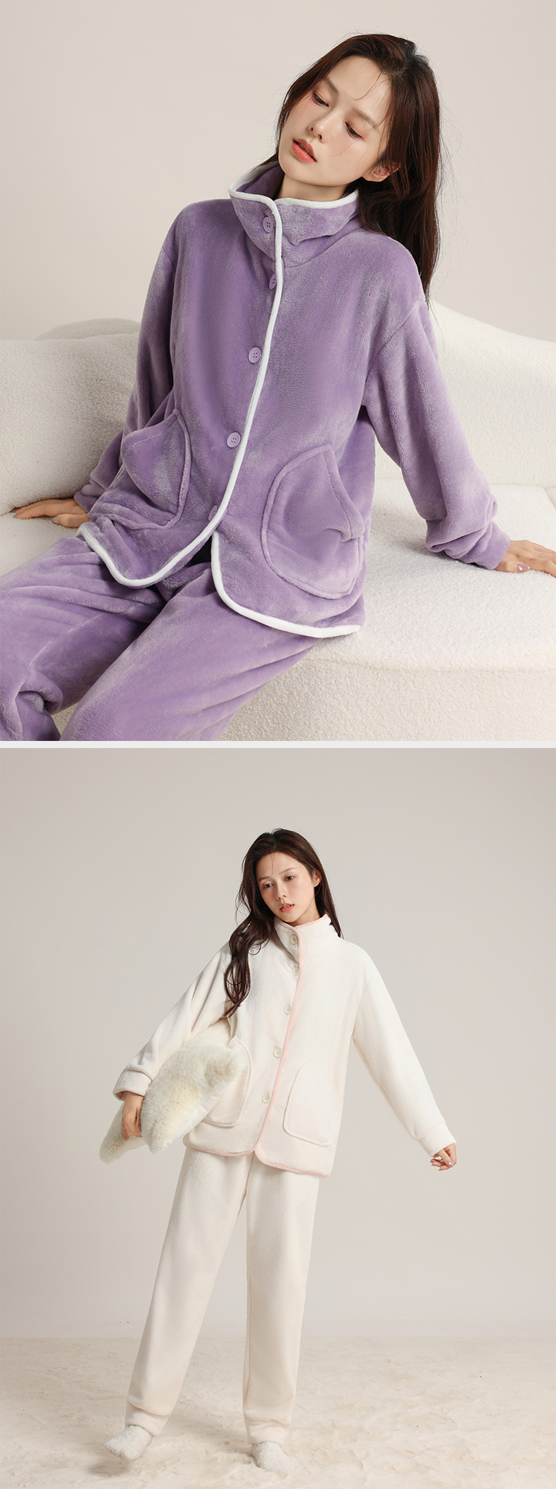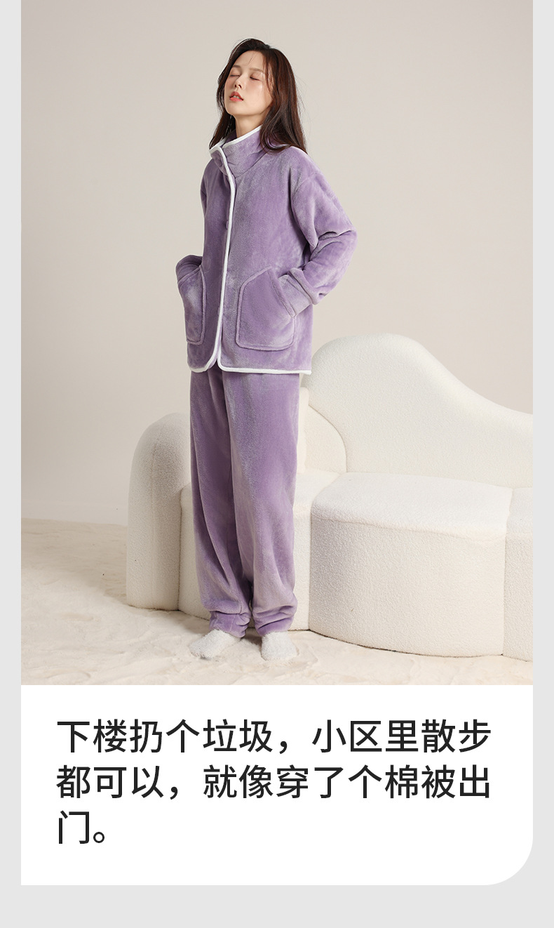 가을 겨울 남녀 플란넬 따뜻한 홈웨어, 스탠드 칼라 또는 라펠 칼라 선택 가능, 커플용 심플 두꺼운 잠옷 투피스 세트스토어 가기