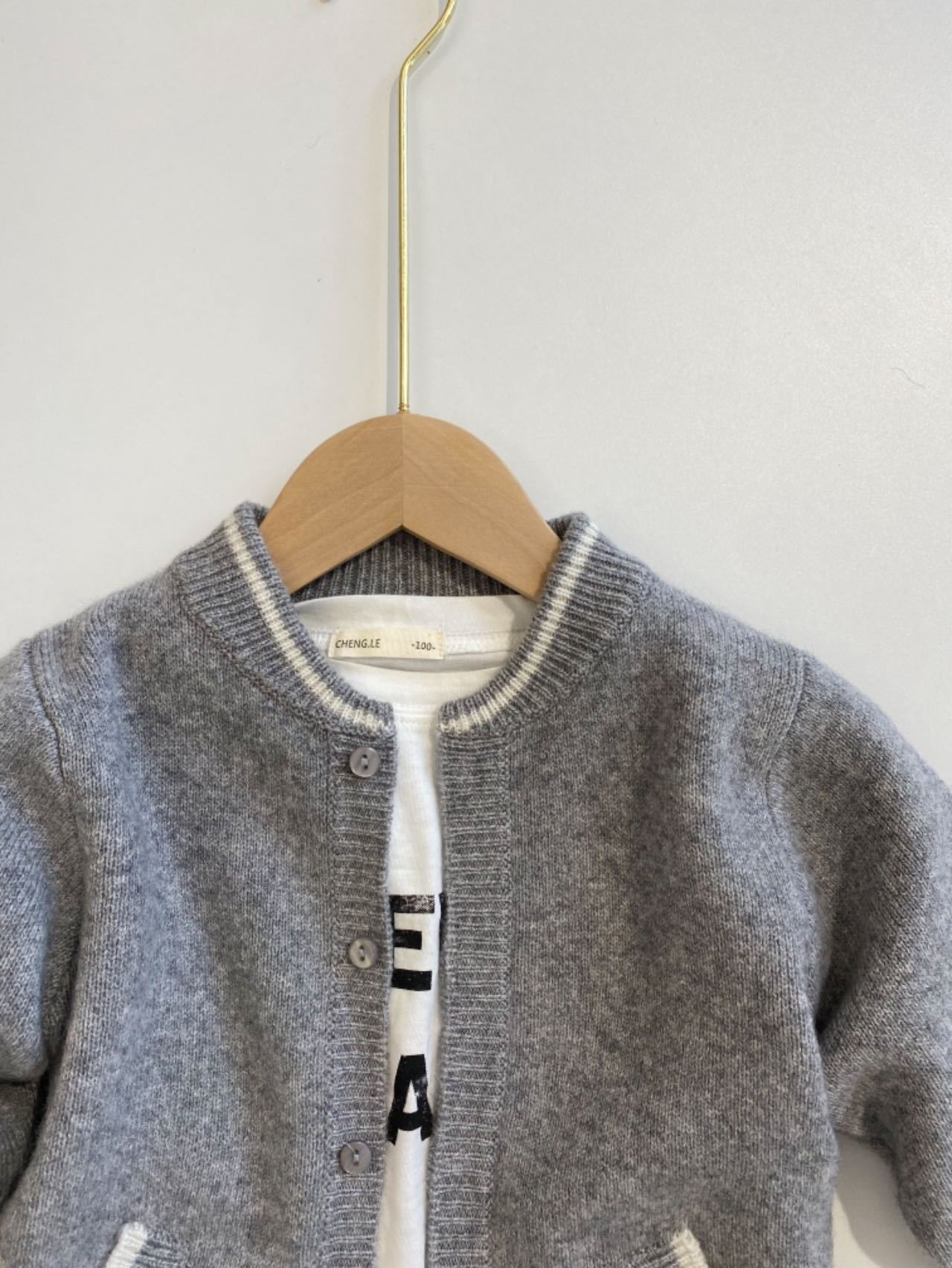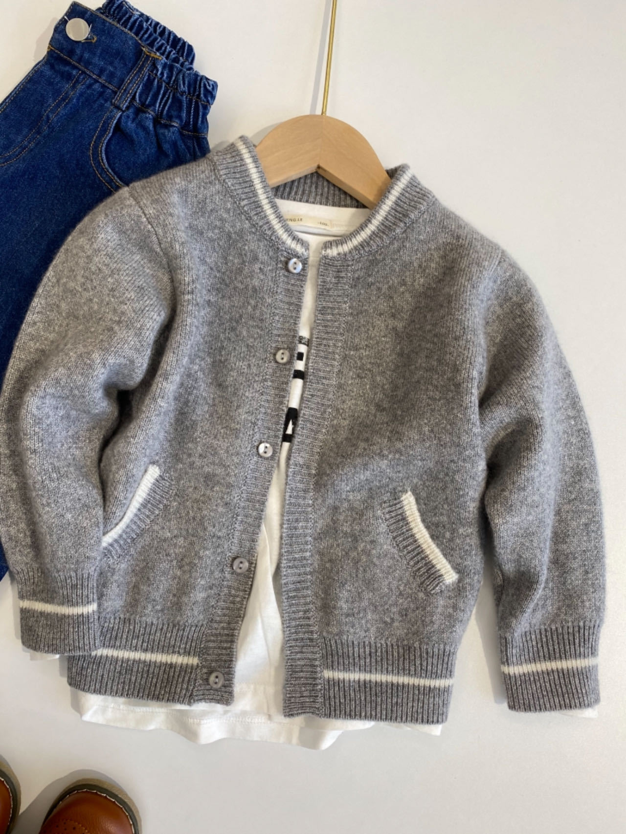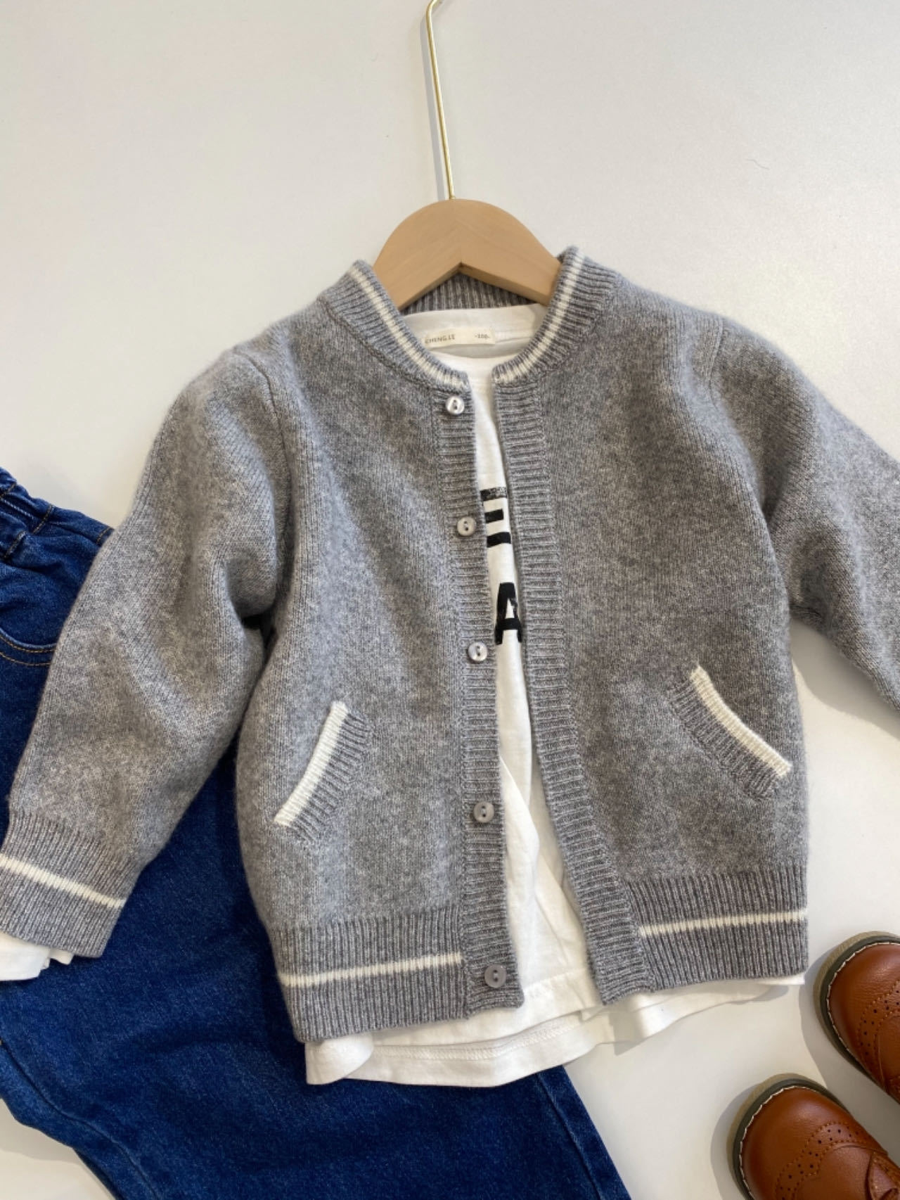 Peng Bo 캐시미어 크루넥 카디건 남성과 여성의 캐시미어 스웨터 두꺼운 재킷 포켓 니트 스웨터 야구 세트