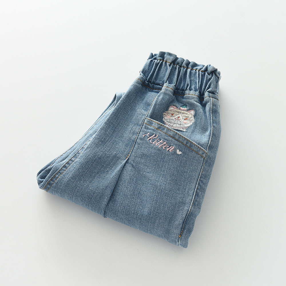 2023秋季新款 卡通字母绣花 女童纯棉水洗牛仔长裤