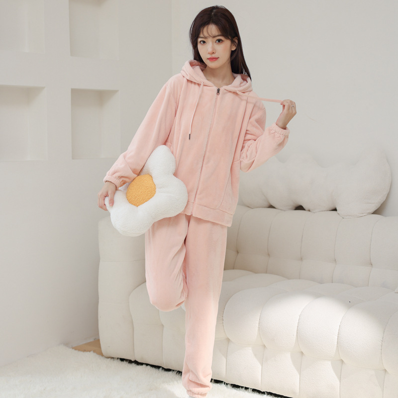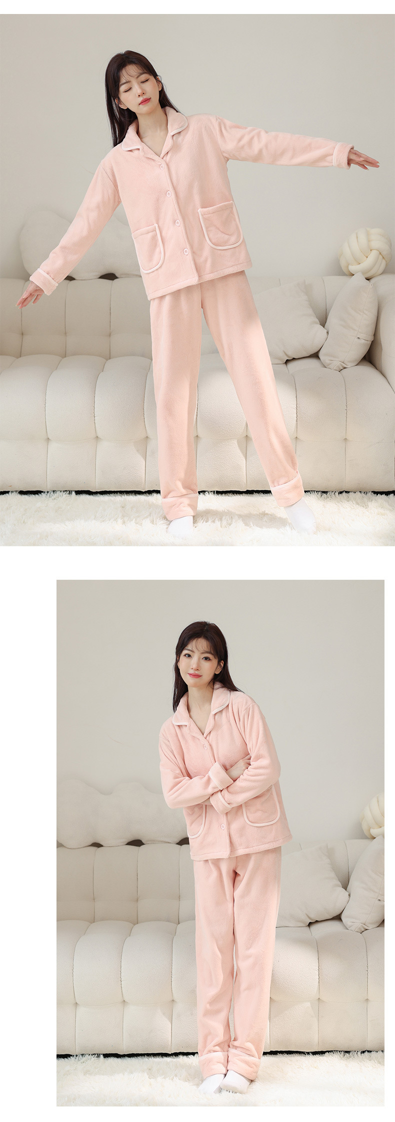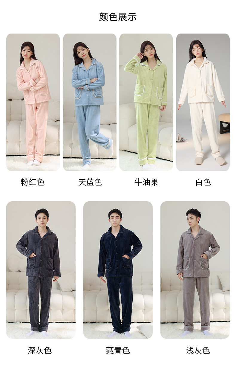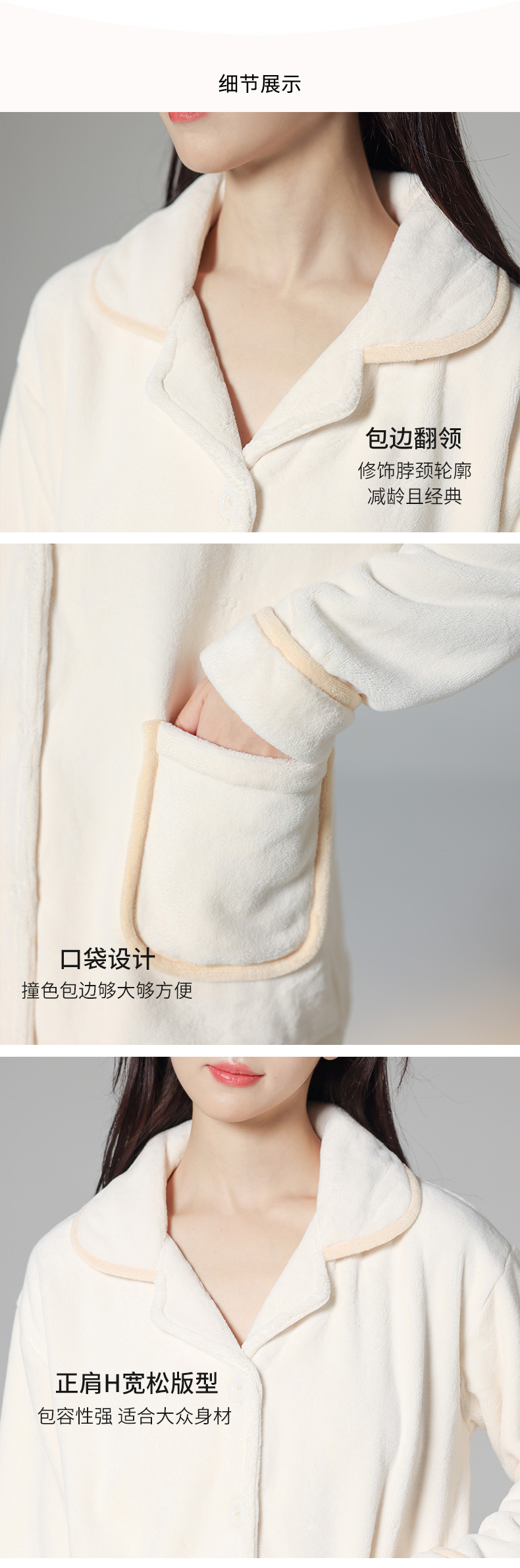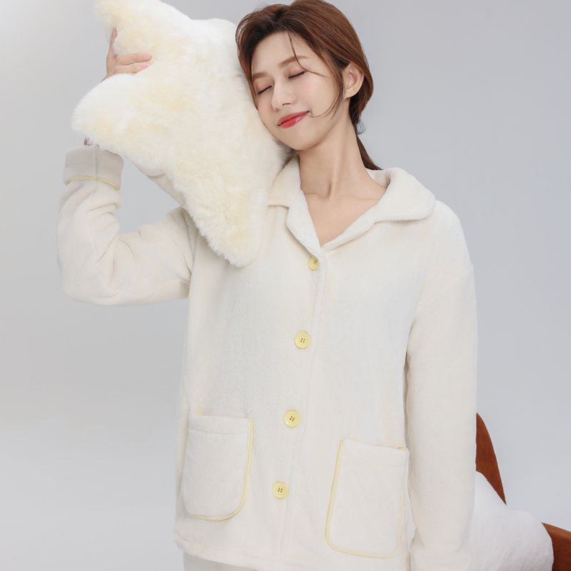 겨울 플란넬 따뜻한 홈웨어 여성용 가을 겨울 카라 오픈형 잠옷 코랄 벨벳 두꺼운 세트 심플 디자인