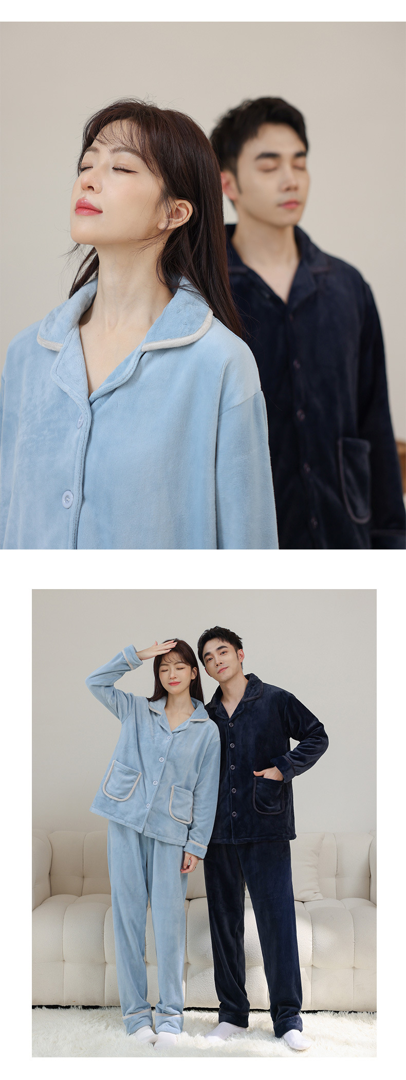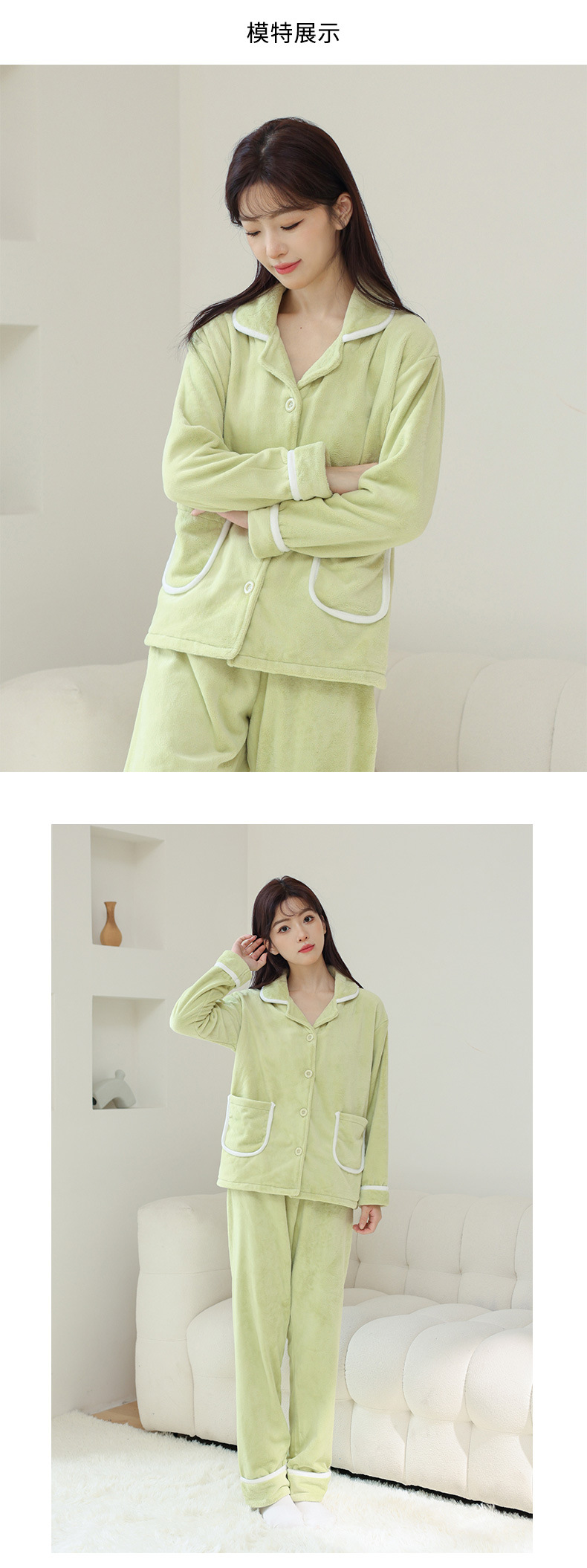 겨울 플란넬 따뜻한 홈웨어 여성용 가을 겨울 카라 오픈형 잠옷 코랄 벨벳 두꺼운 세트 심플 디자인스토어 가기