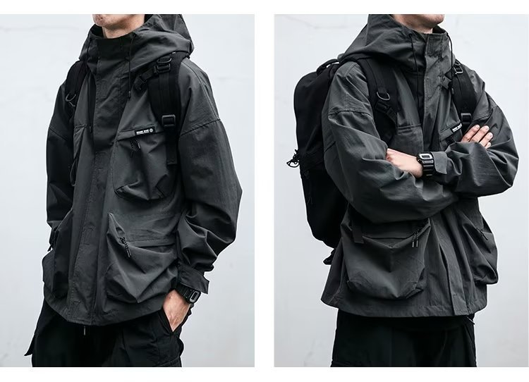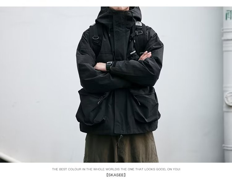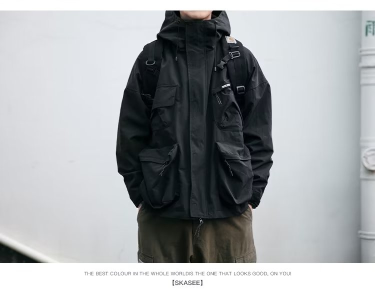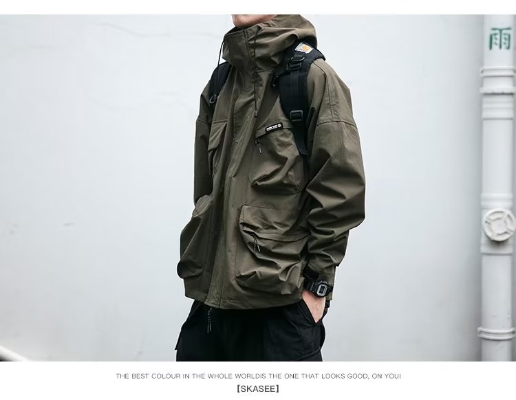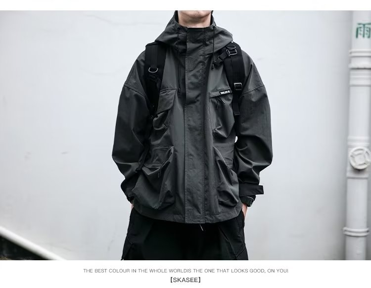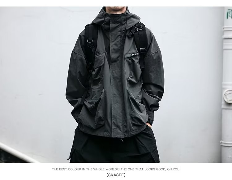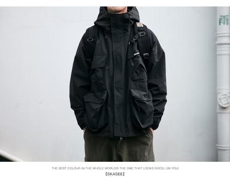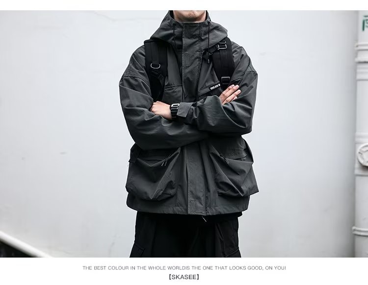 봄과 가을 후드 러쉬 의류 남성 트렌디 브랜드 느슨한 3 차원 포켓 기능성 방풍 재킷 캐주얼 작업 재킷 트렌디
