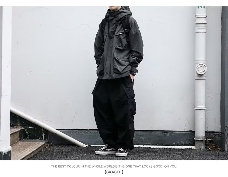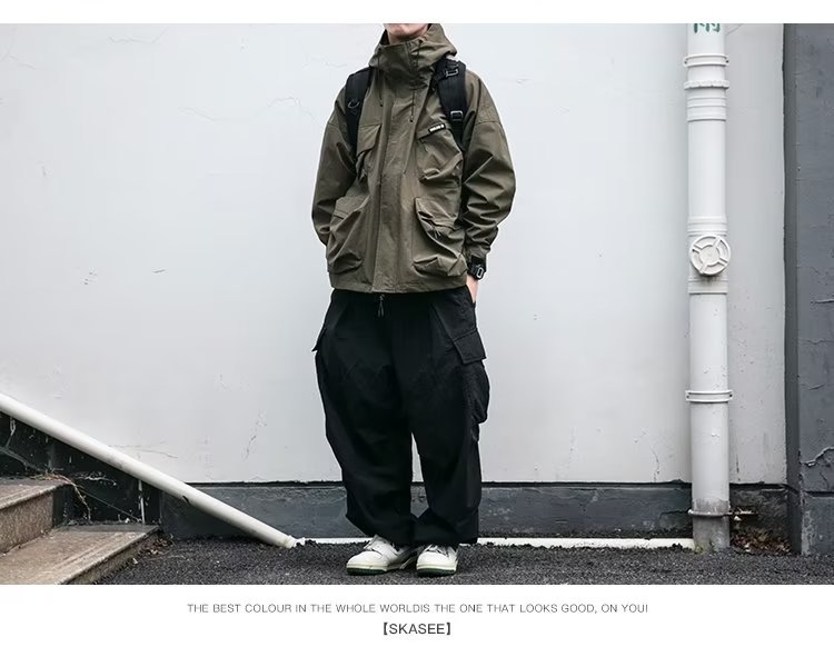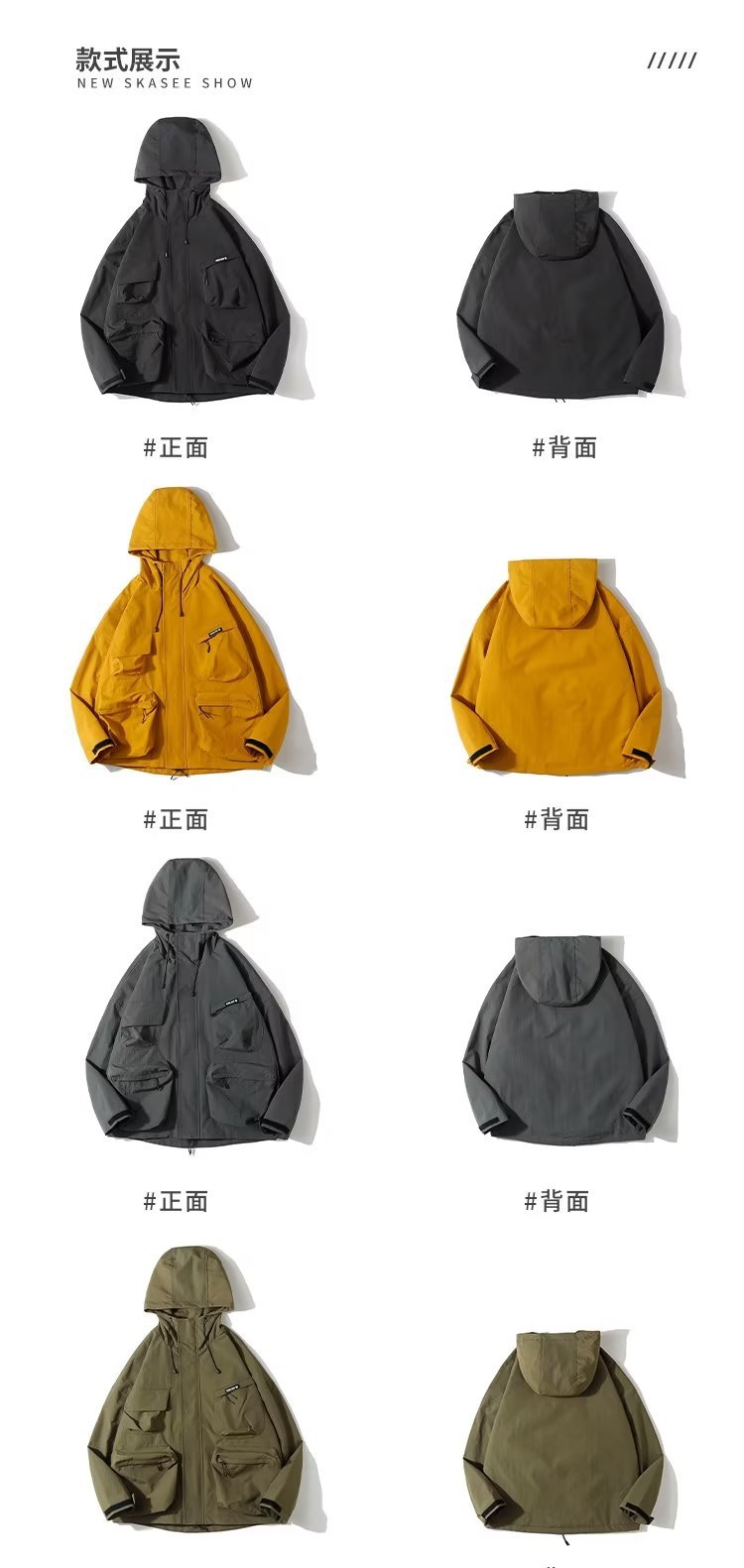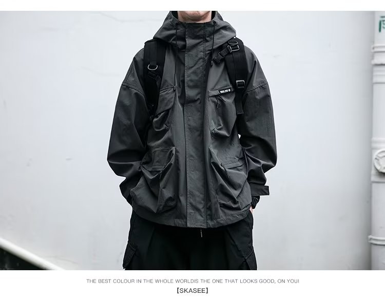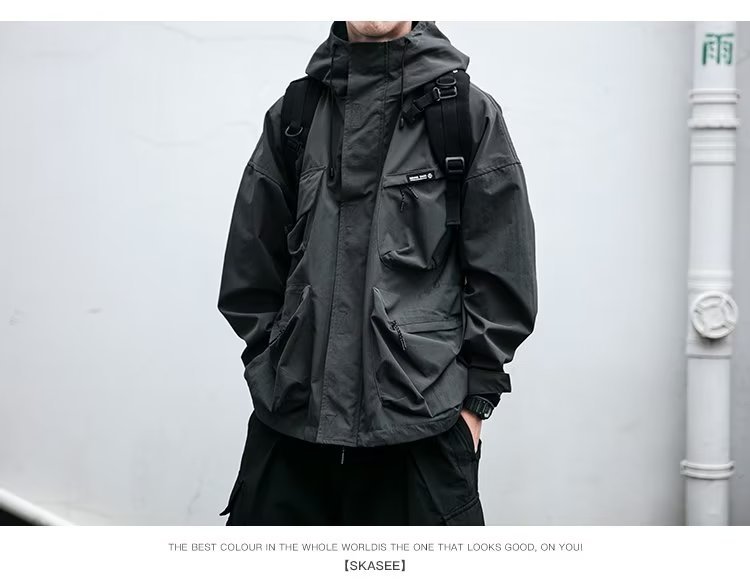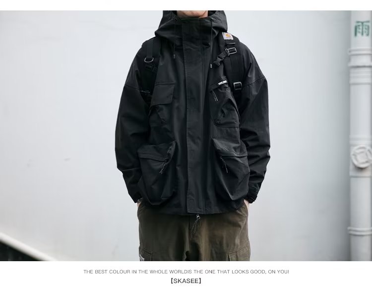 봄과 가을 후드 러쉬 의류 남성 트렌디 브랜드 느슨한 3 차원 포켓 기능성 방풍 재킷 캐주얼 작업 재킷 트렌디스토어 가기