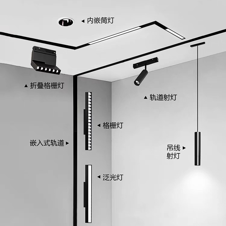 자기 매력 트랙 라이트 led 스포트라이트 임베디드 슬라이드 레일 가정용 거실 숨겨진 오픈 마운트 가이드 트랙 라이트 오픈 마운트 비 메인 라이트