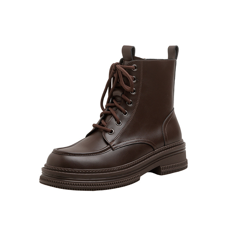 정품 가죽 마틴 부츠 2023 신상품 다크 브라운 빈티지 여성용 짧은 배럴 영국 스타일 두꺼운 바닥 짧은 부츠 여성용 싱글 부츠