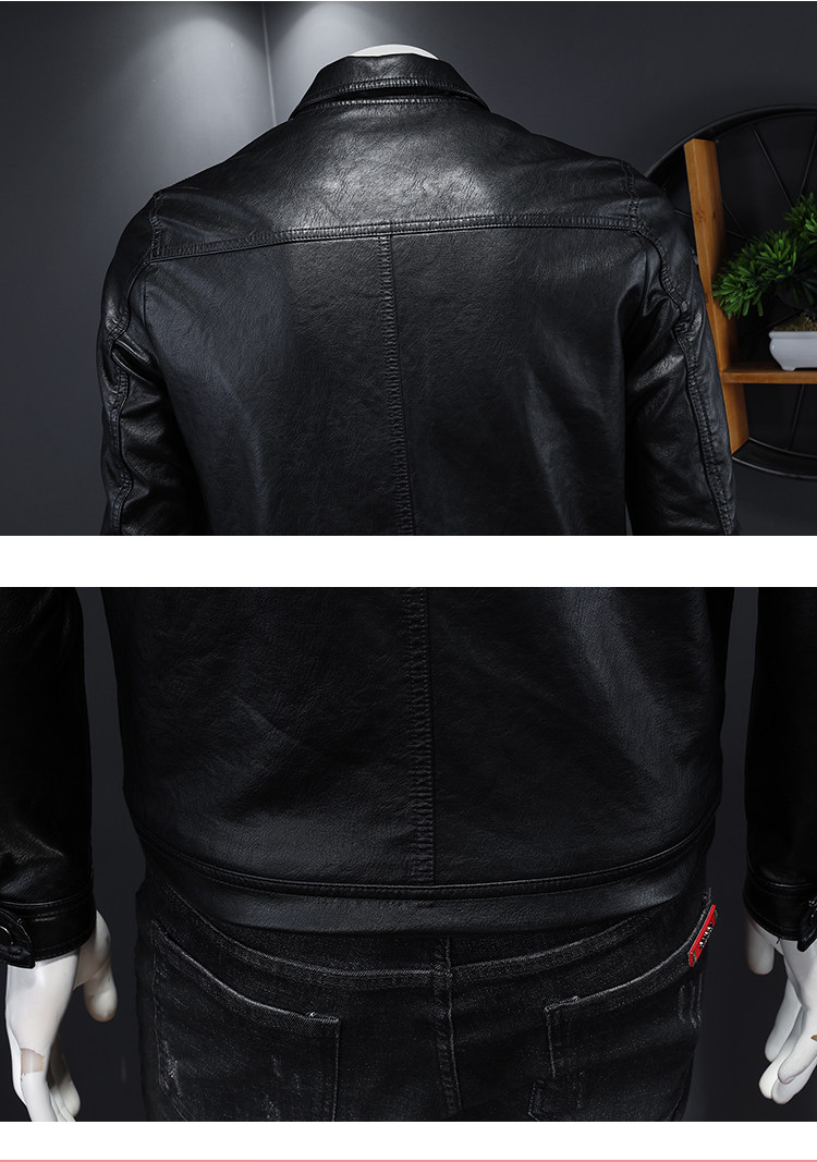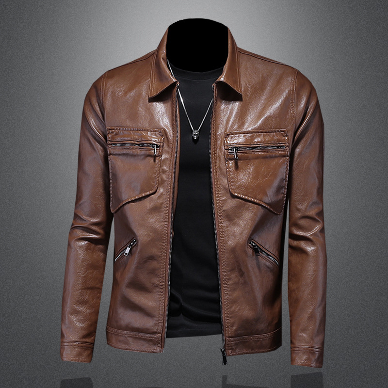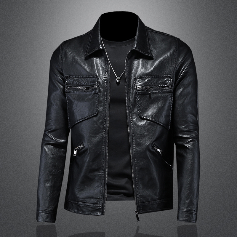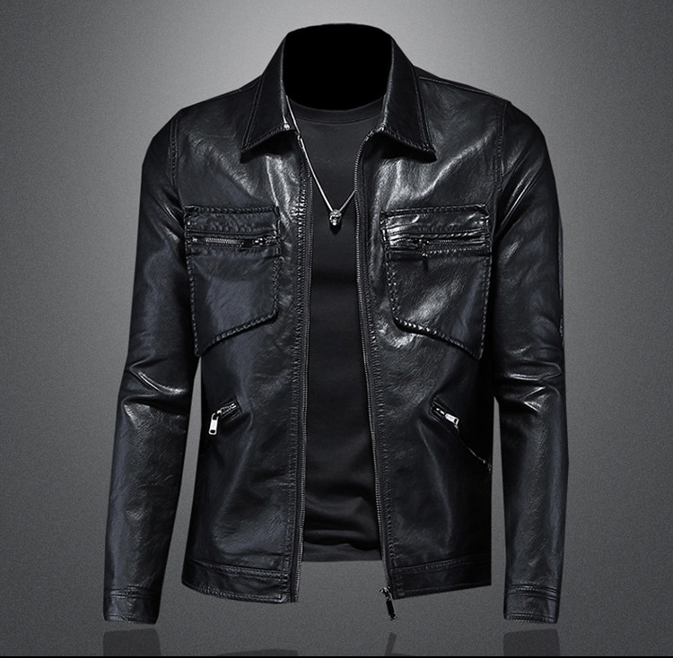 2023 가을과 겨울 새로운 남성 라펠 오토바이 가죽 코트 슬림핏 트렌디 남성 pu 가죽 7016