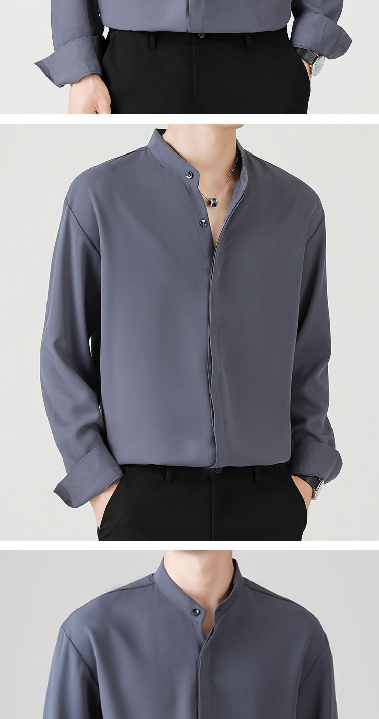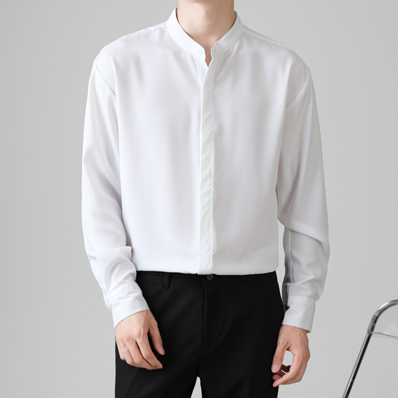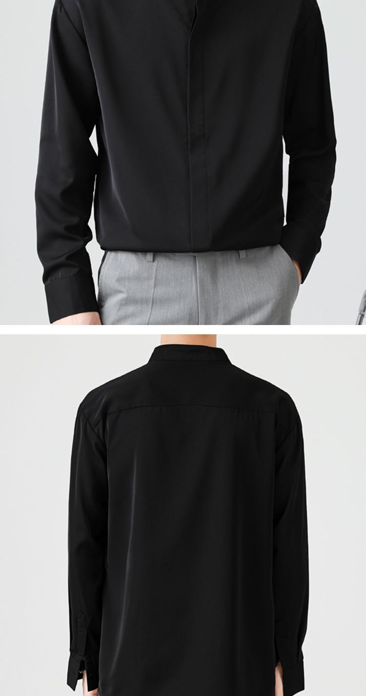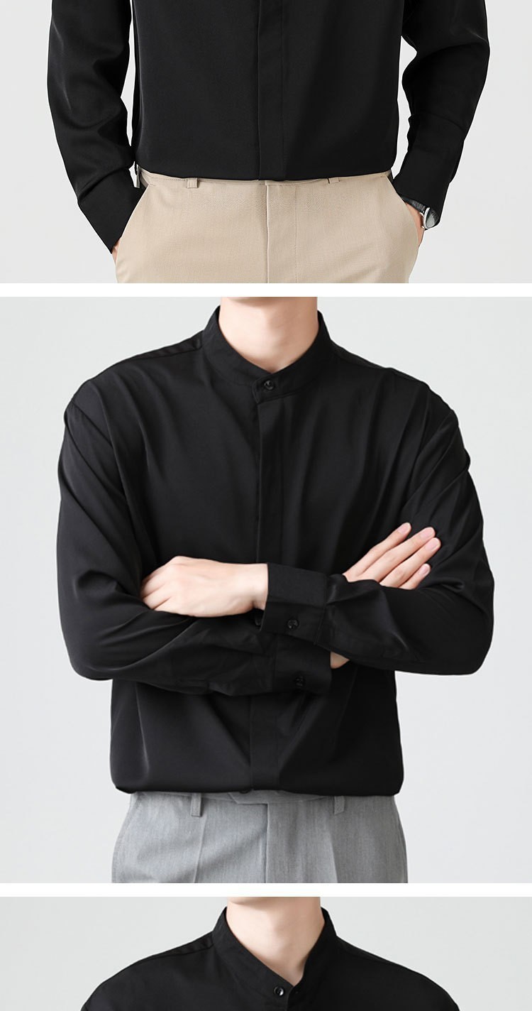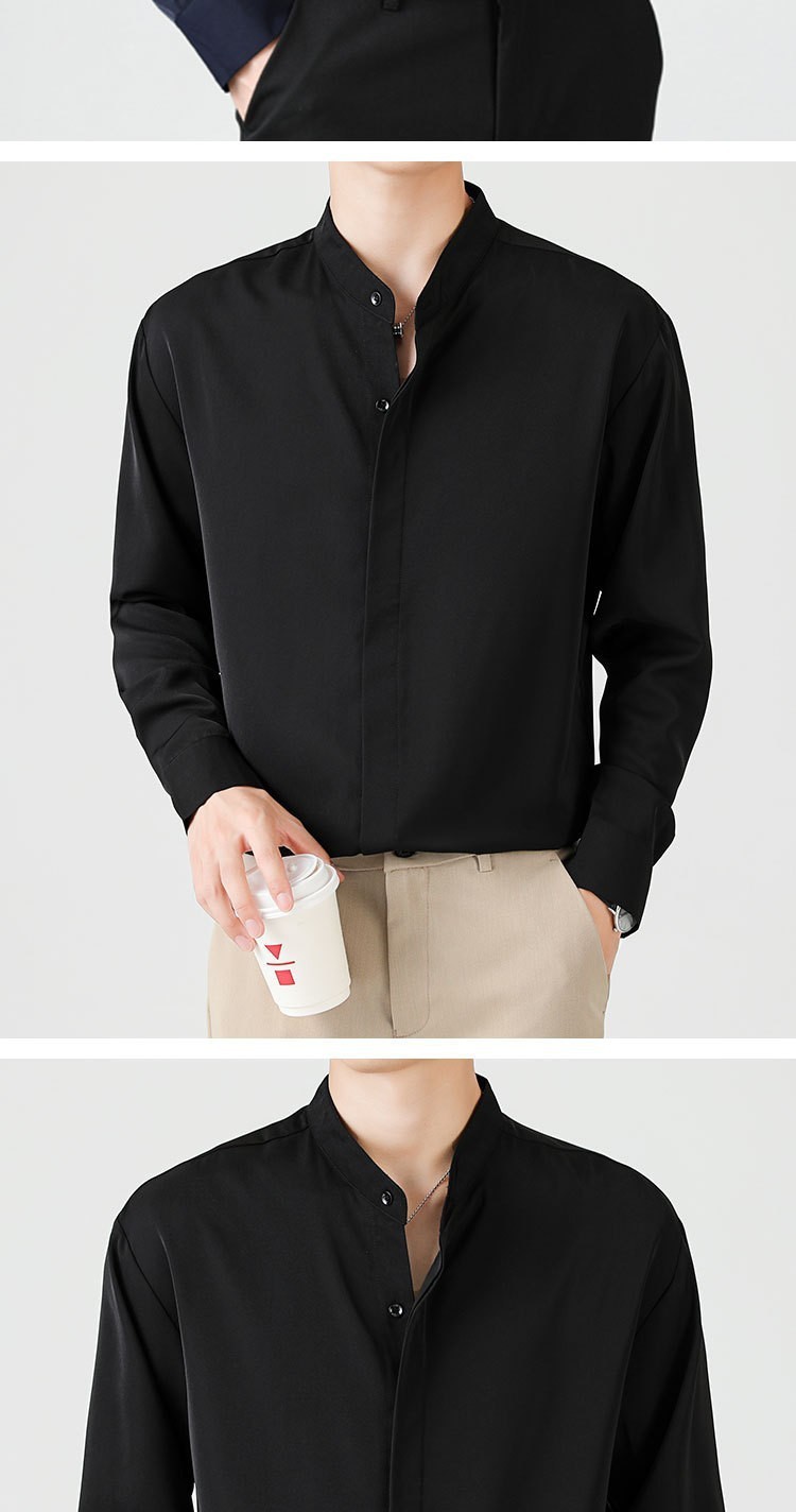 남성용 칼라 셔츠 여름 긴팔 슬림핏 슬림핏 블랙 스타일리스트 셔츠 중산 칼라 봄과 가을 얇은 겉옷스토어 가기