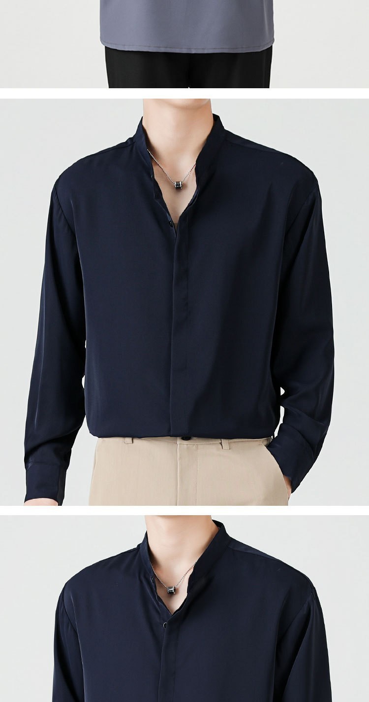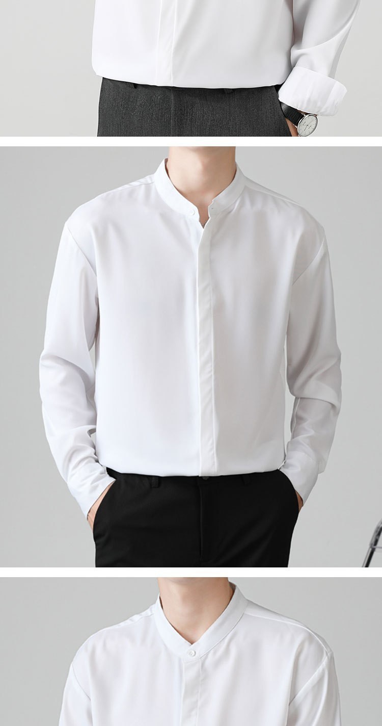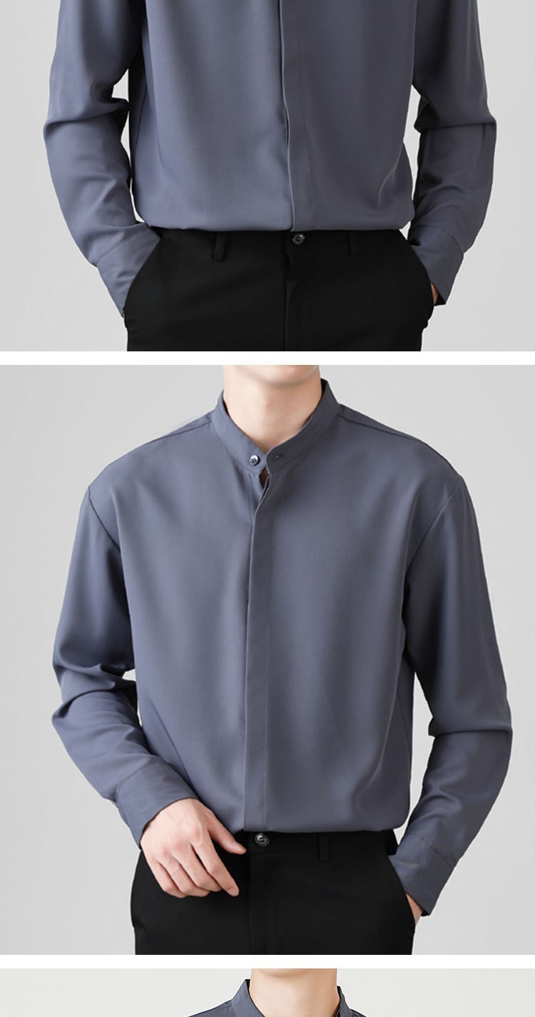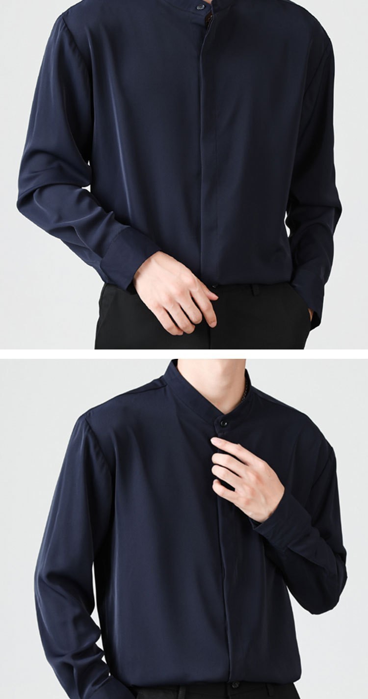 남성용 칼라 셔츠 여름 긴팔 슬림핏 슬림핏 블랙 스타일리스트 셔츠 중산 칼라 봄과 가을 얇은 겉옷스토어 가기