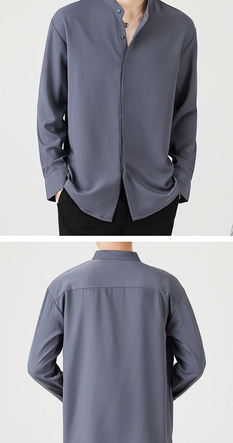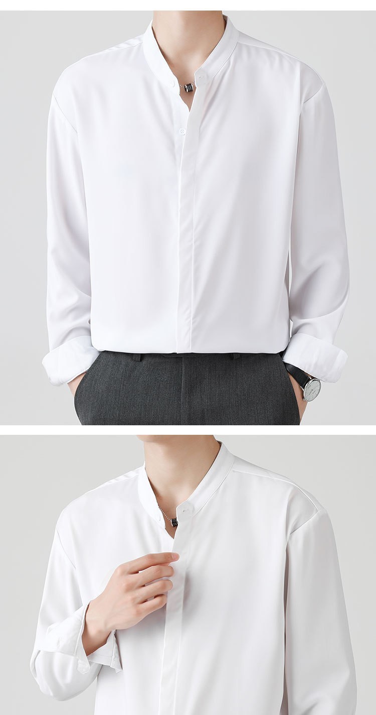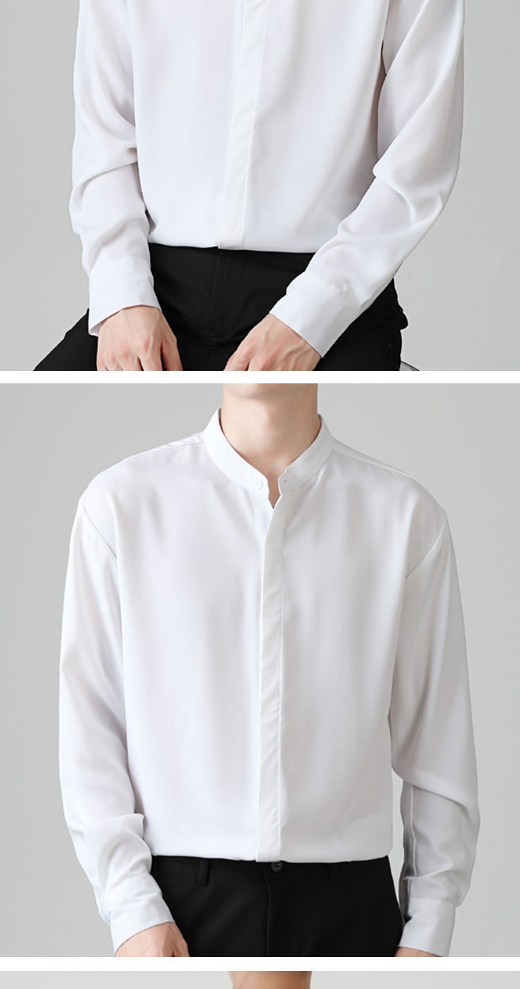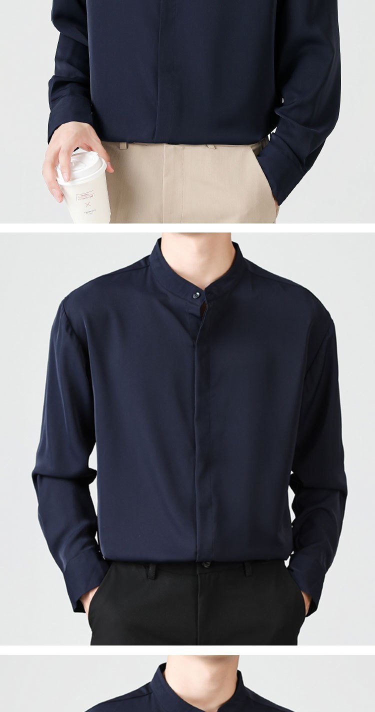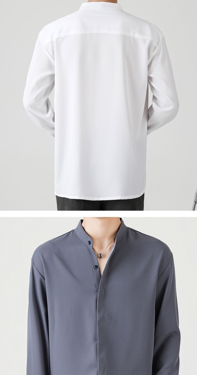 남성용 칼라 셔츠 여름 긴팔 슬림핏 슬림핏 블랙 스타일리스트 셔츠 중산 칼라 봄과 가을 얇은 겉옷스토어 가기