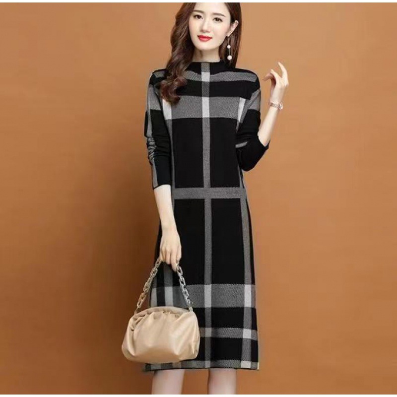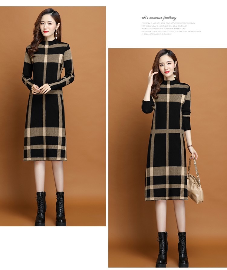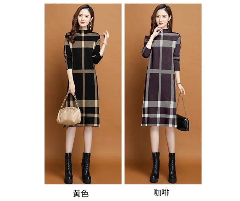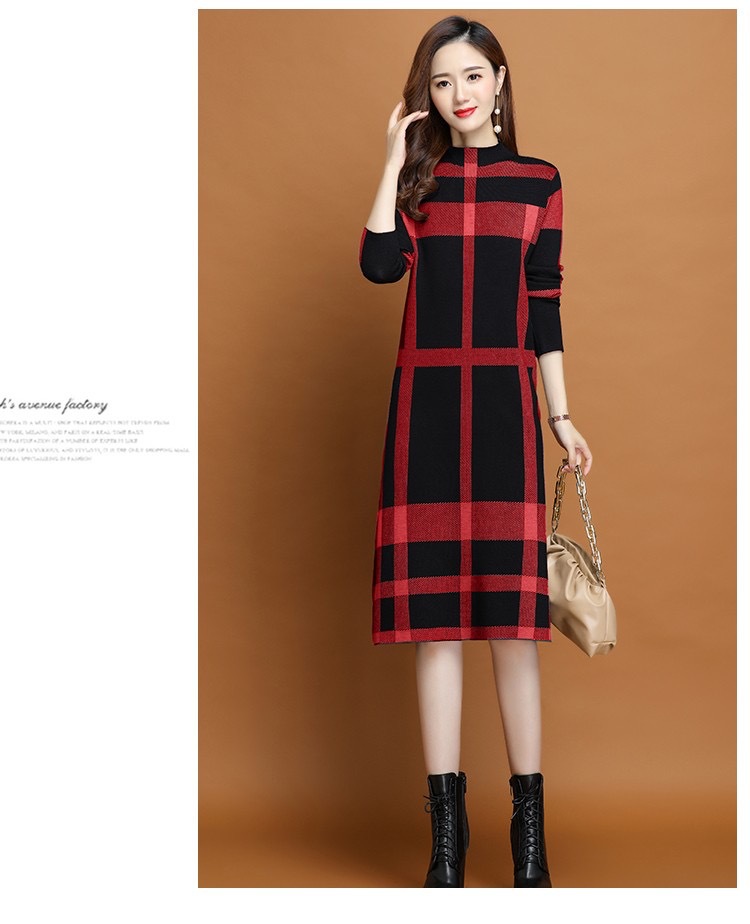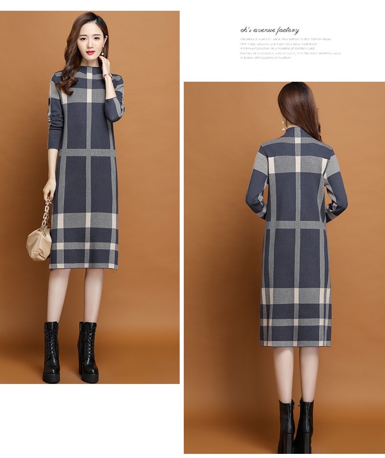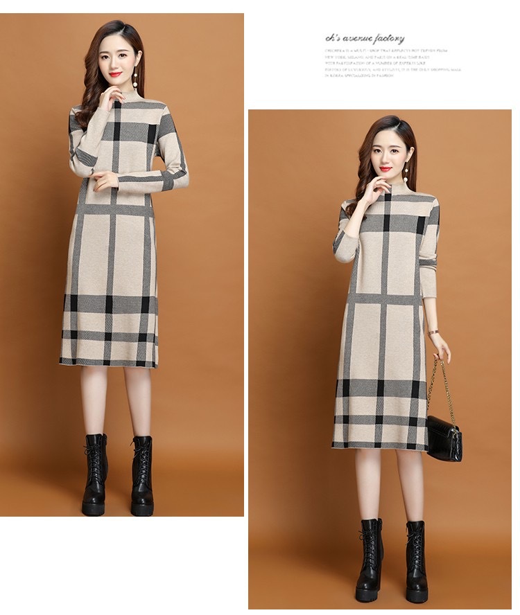 가을과 겨울 일본과 한국의 새로운 스웨터 무릎 스티치 하프 하이 칼라 원피스 느슨한 매칭 코트 내부 스웨터 원피스스토어 가기