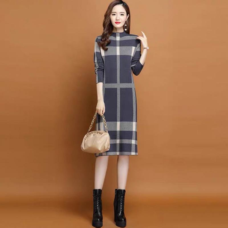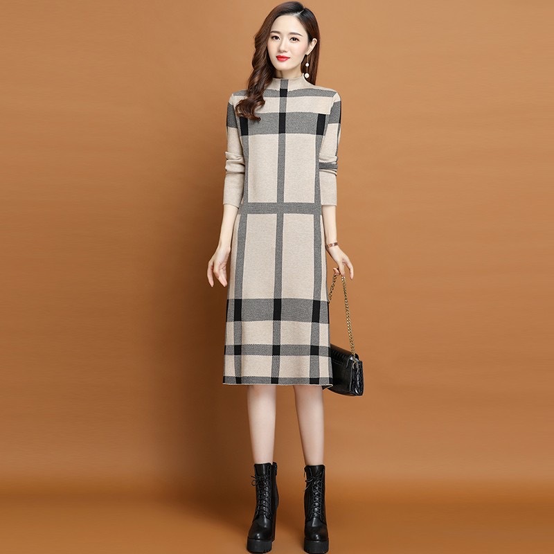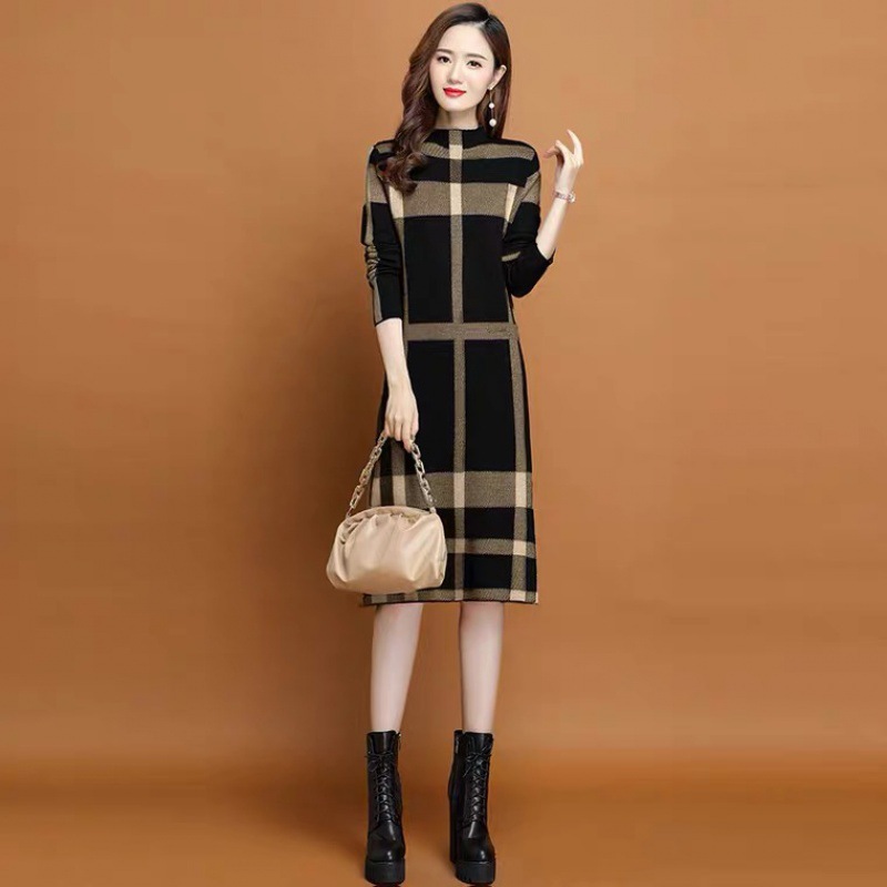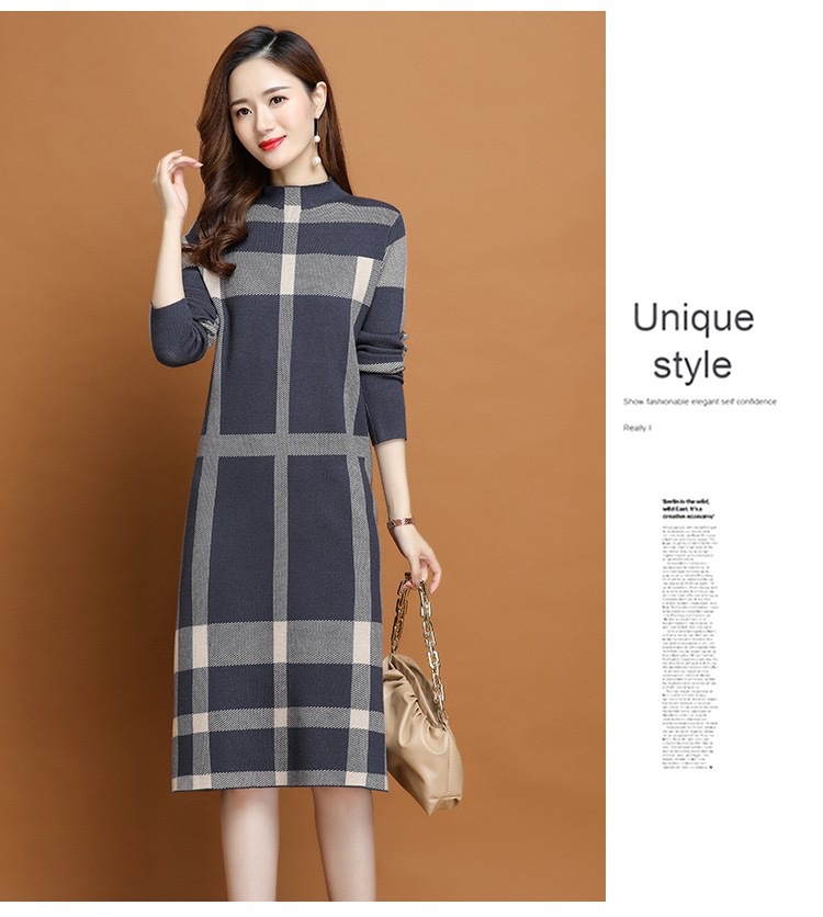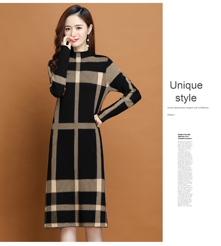 가을과 겨울 일본과 한국의 새로운 스웨터 무릎 스티치 하프 하이 칼라 원피스 느슨한 매칭 코트 내부 스웨터 원피스