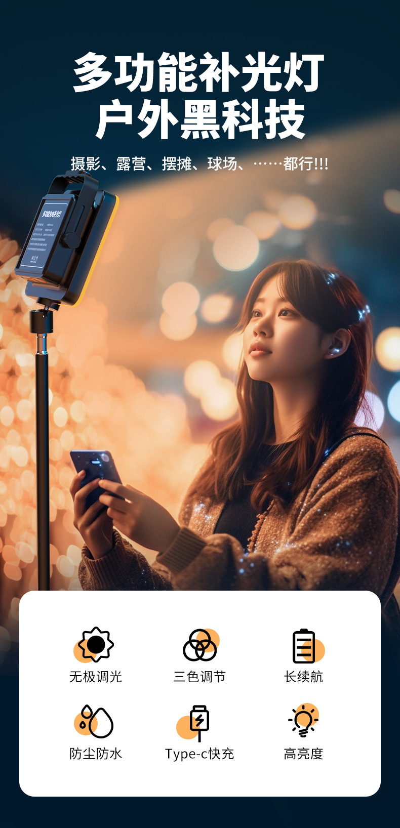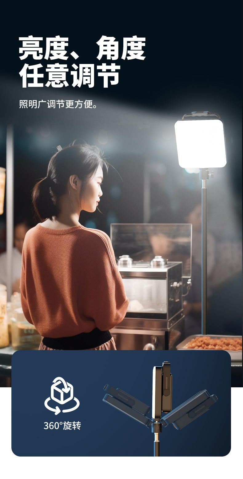 • 8 인치 충전 램프 + Yuntai + 2.1m 브래킷 + 백 베개 휴대폰 클립