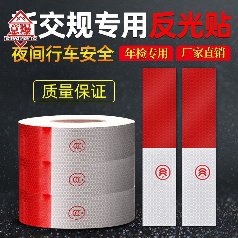 红白相间,宽5cm ;红白相间15cm+15cm,表面有六边蜂窝状图案,有立体手感,粘贴性好,防水性强,使用寿命长,反光度极高!