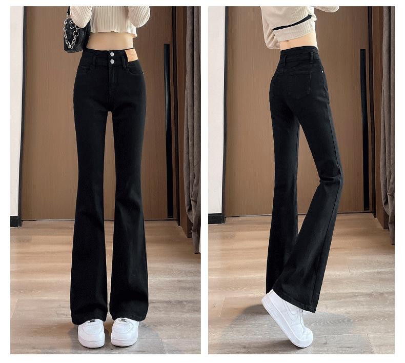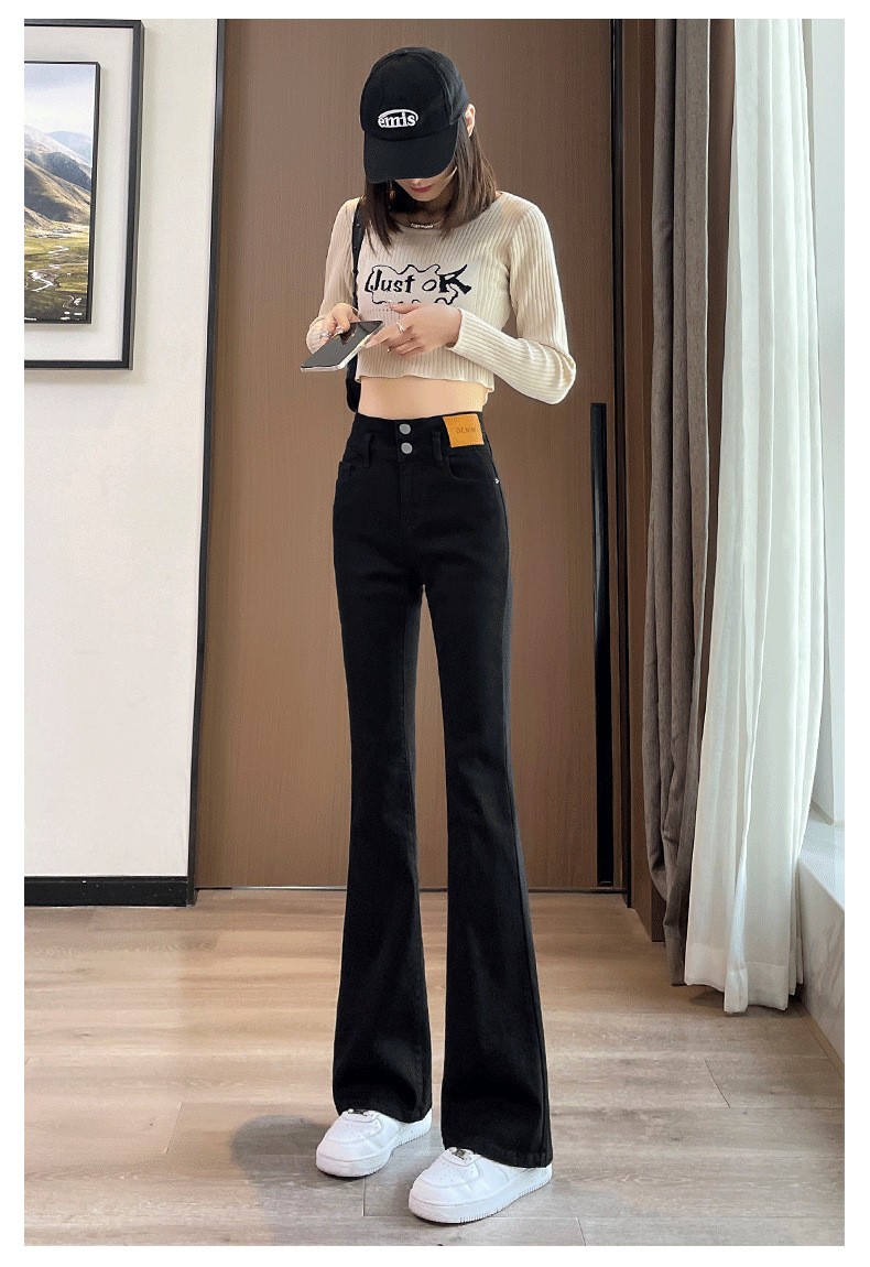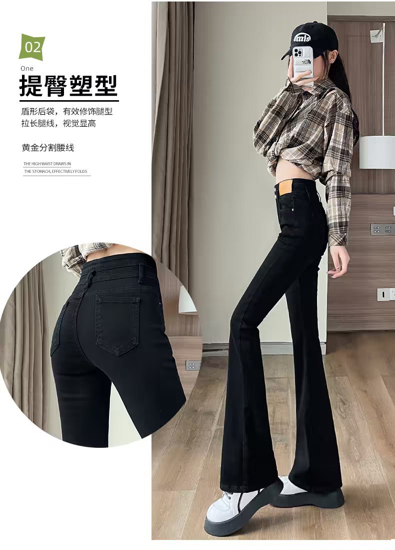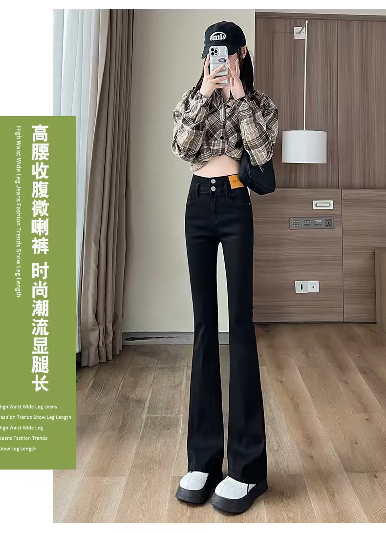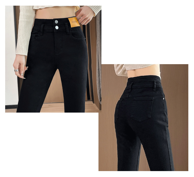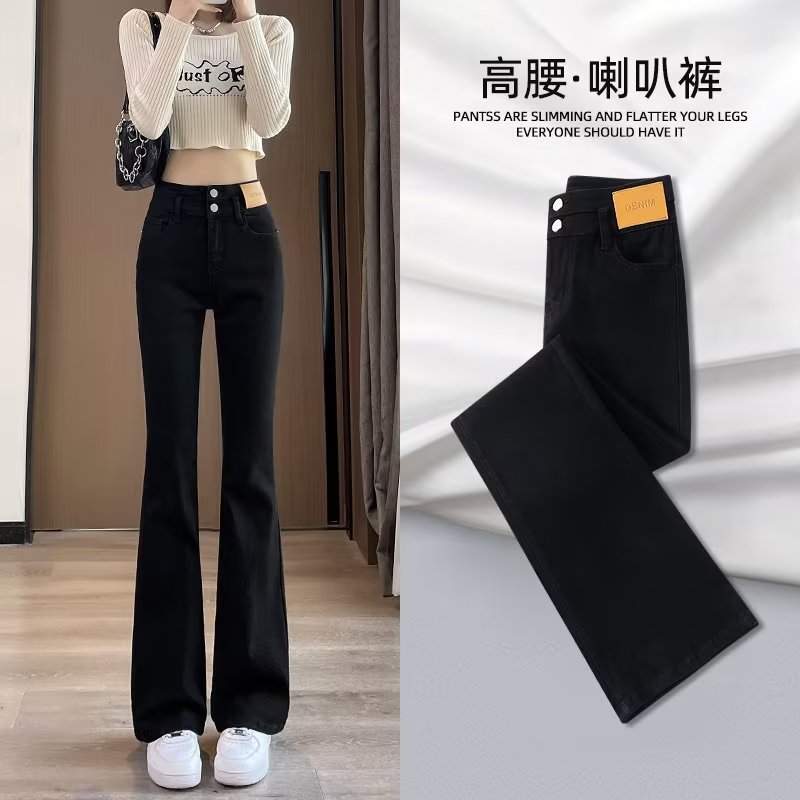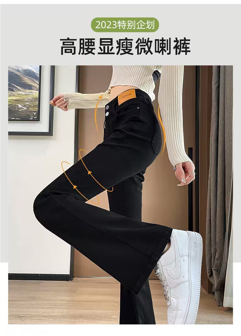 블랙 벨 바지 여성의 가을 2023 새로운 폭발 하이 웨이스트 슬리밍 모든 일치 작은 데님 바지스토어 가기