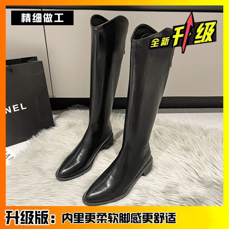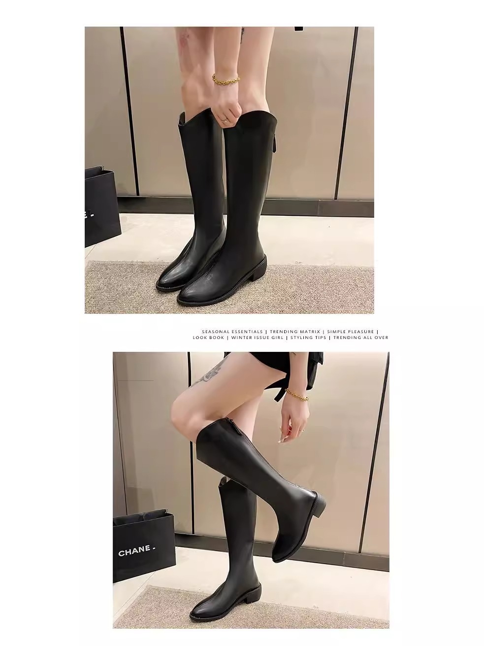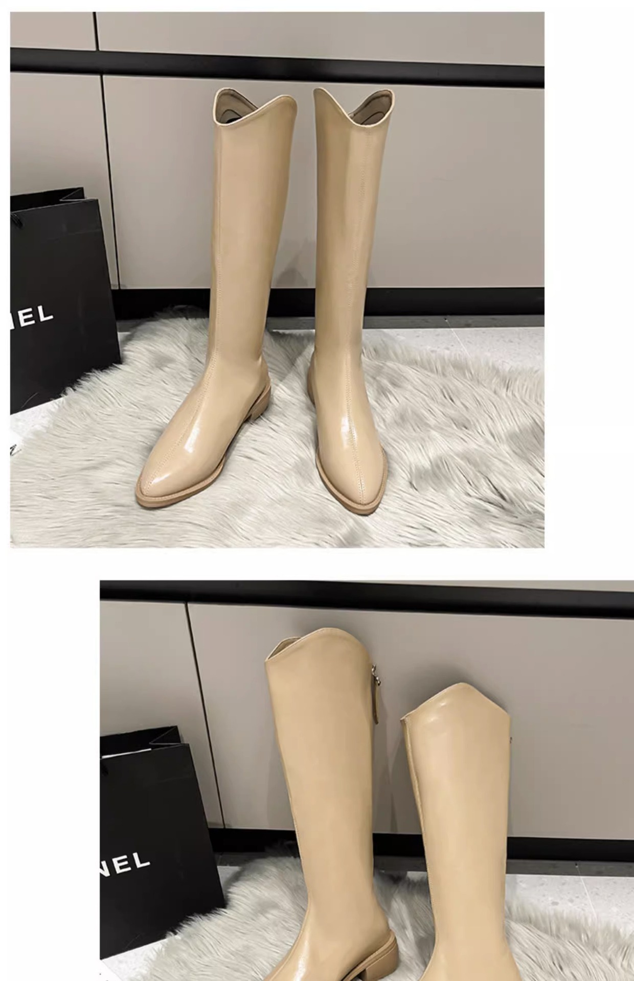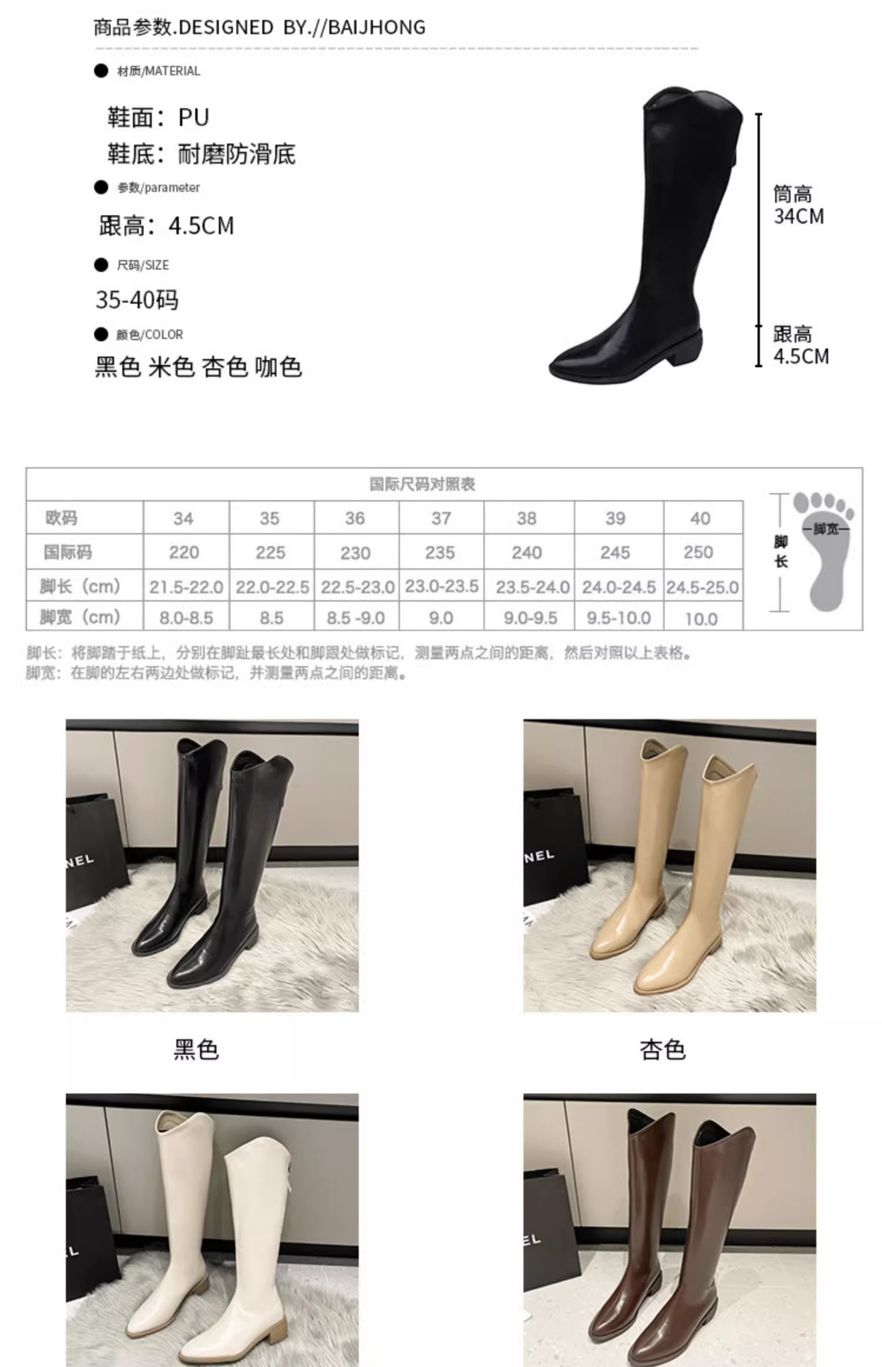 정품 가죽 부츠 V 입 밀크 티 컬러 브라운 봄, 가을 두꺼운 굽 부츠 여성 겨울 새로운 스타일 작은 하이 부츠스토어 가기