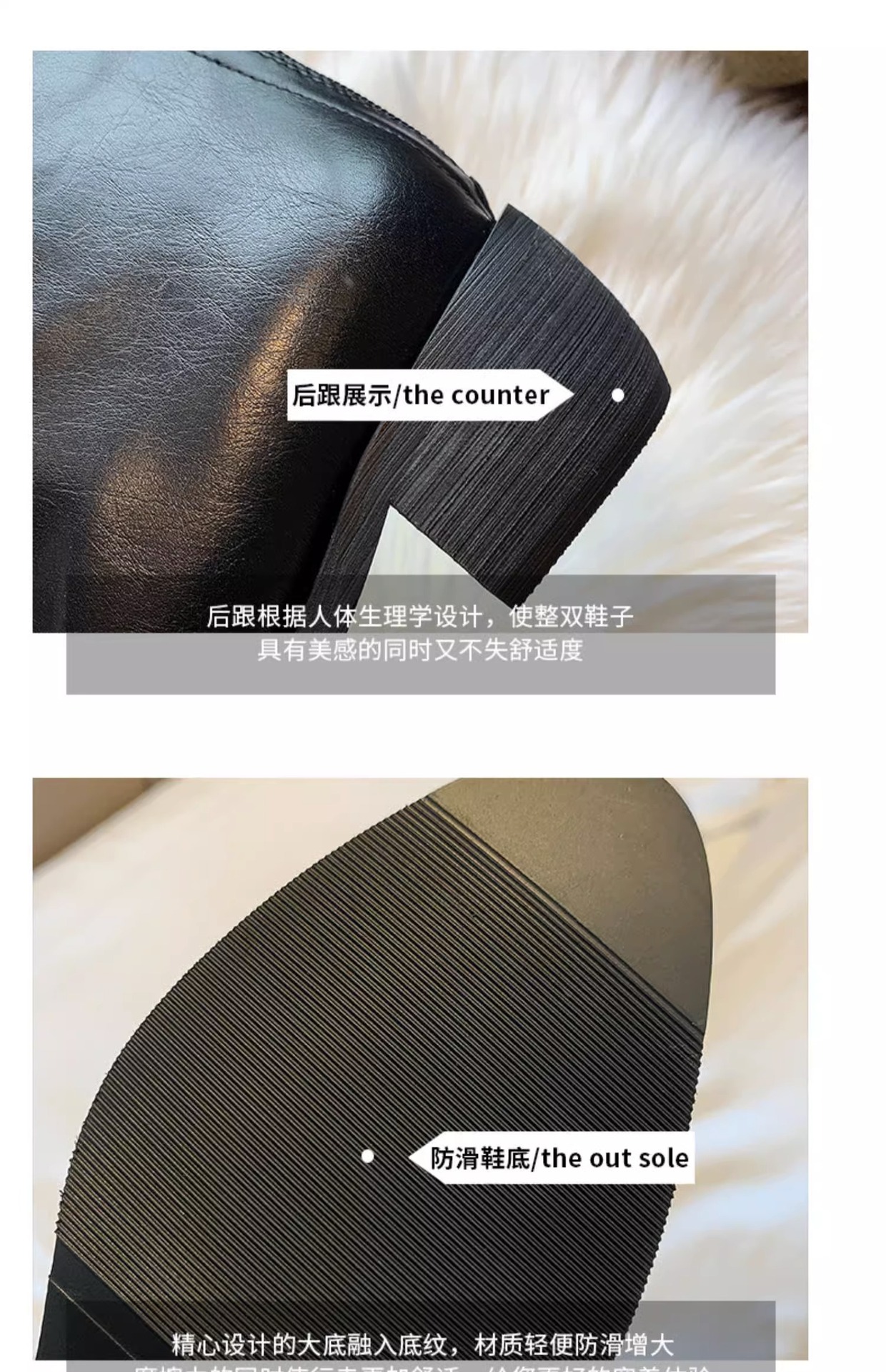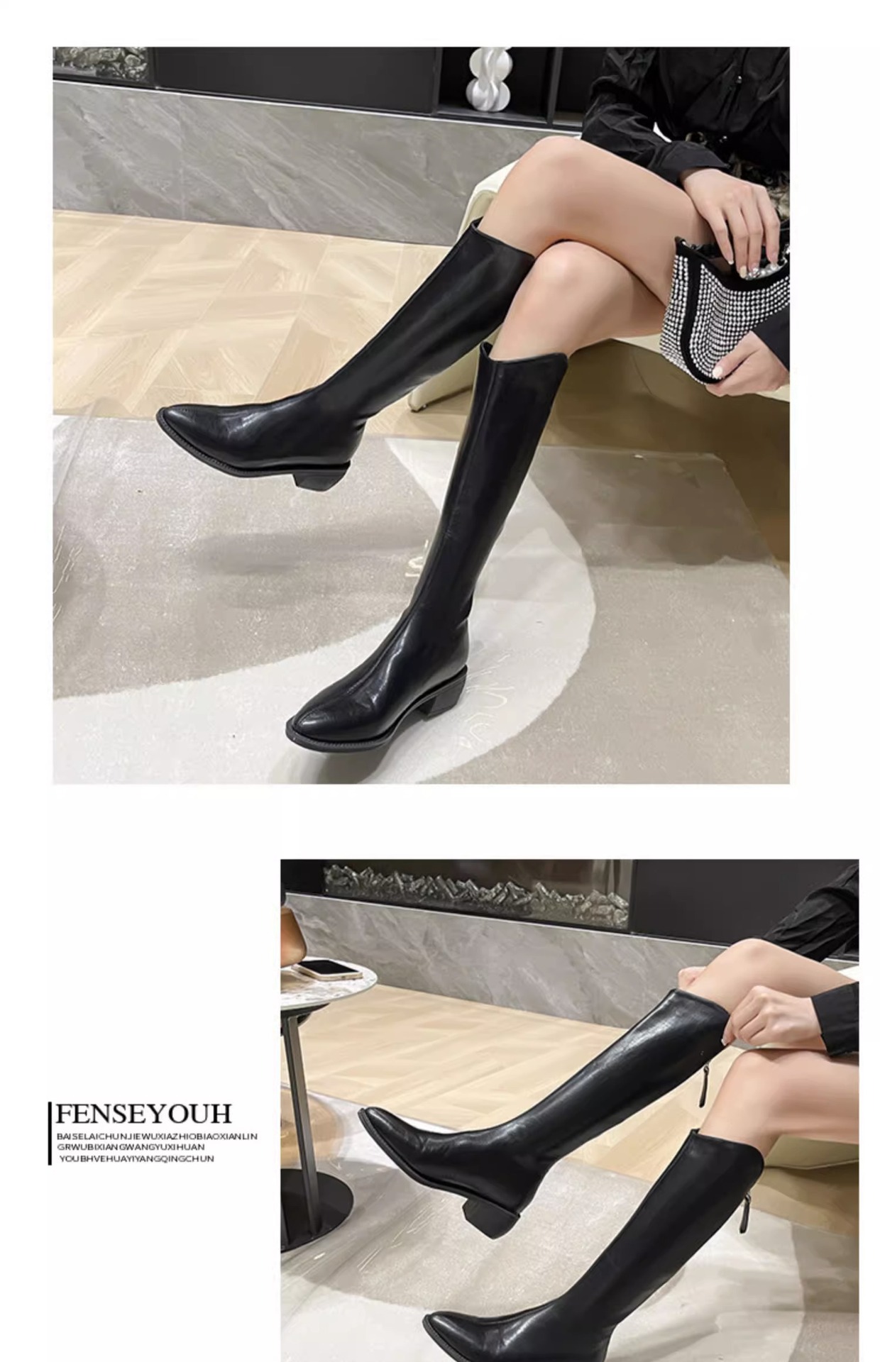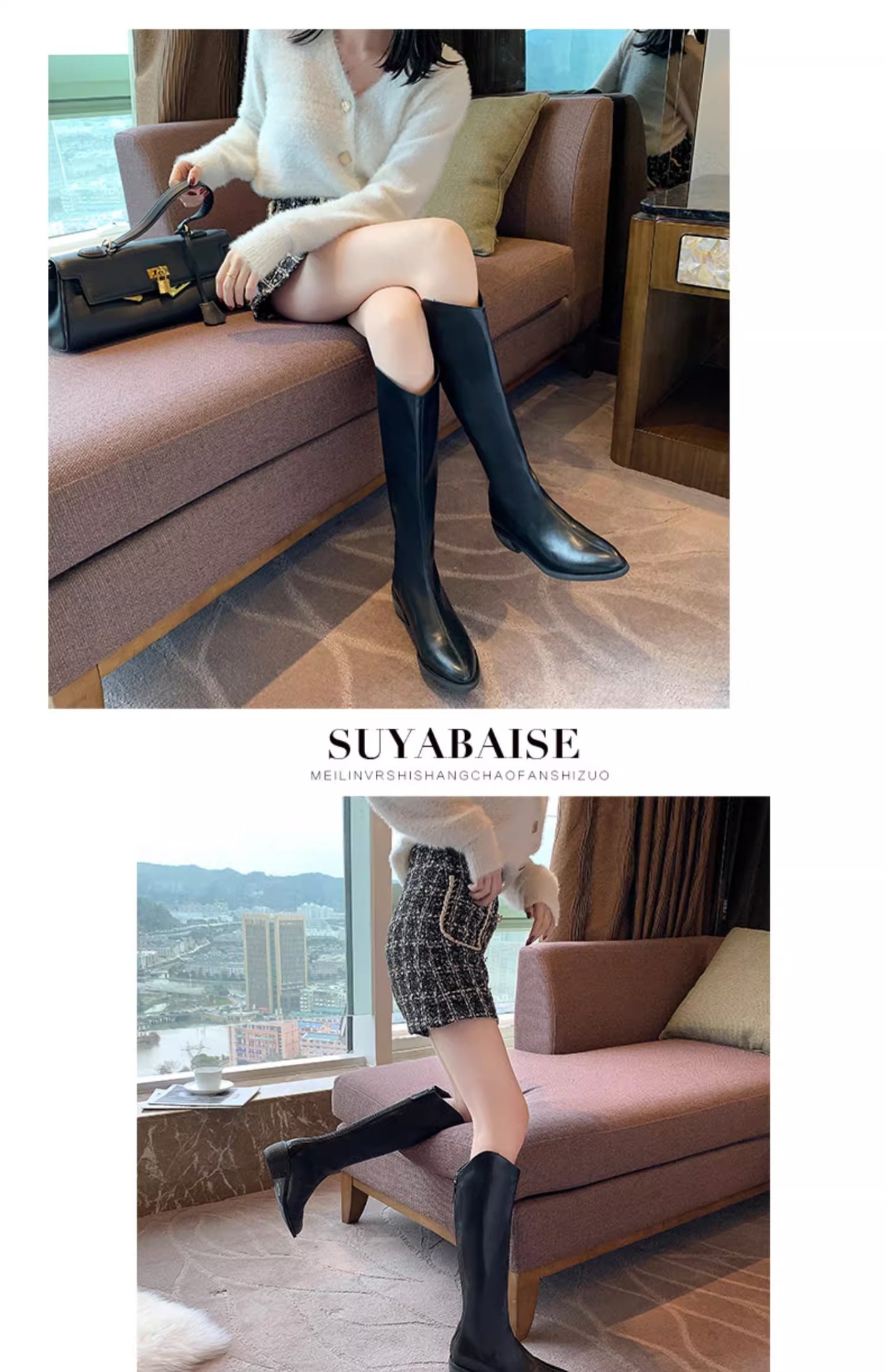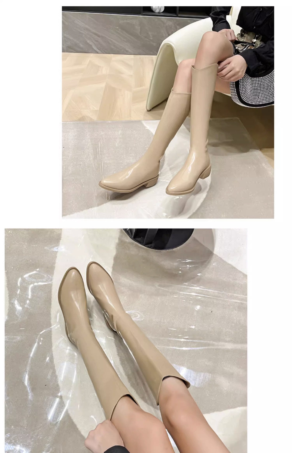 정품 가죽 부츠 V 입 밀크 티 컬러 브라운 봄, 가을 두꺼운 굽 부츠 여성 겨울 새로운 스타일 작은 하이 부츠스토어 가기