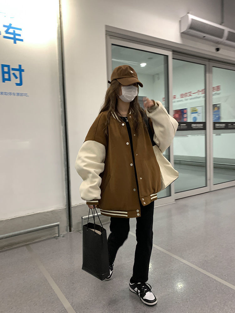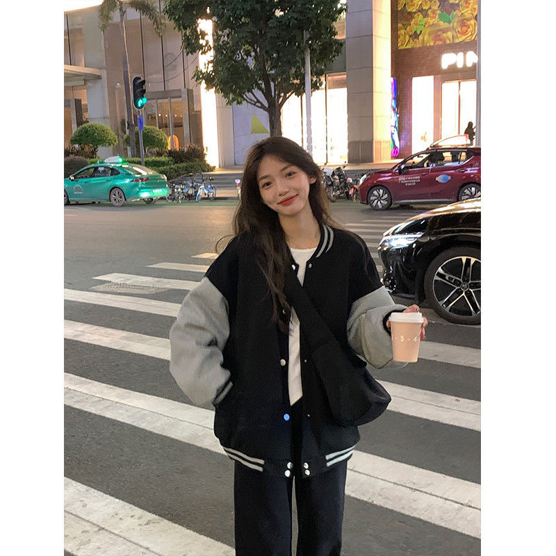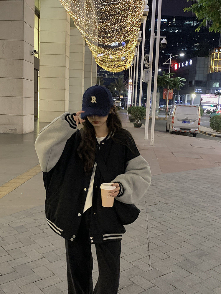 미국 레트로 스타일의 두꺼운 벨벳 야구 점퍼, 남녀 공용, 컬리지 스타일, 한국 버전, 개성 있고 멋진 재킷, 트렌디한 아우터