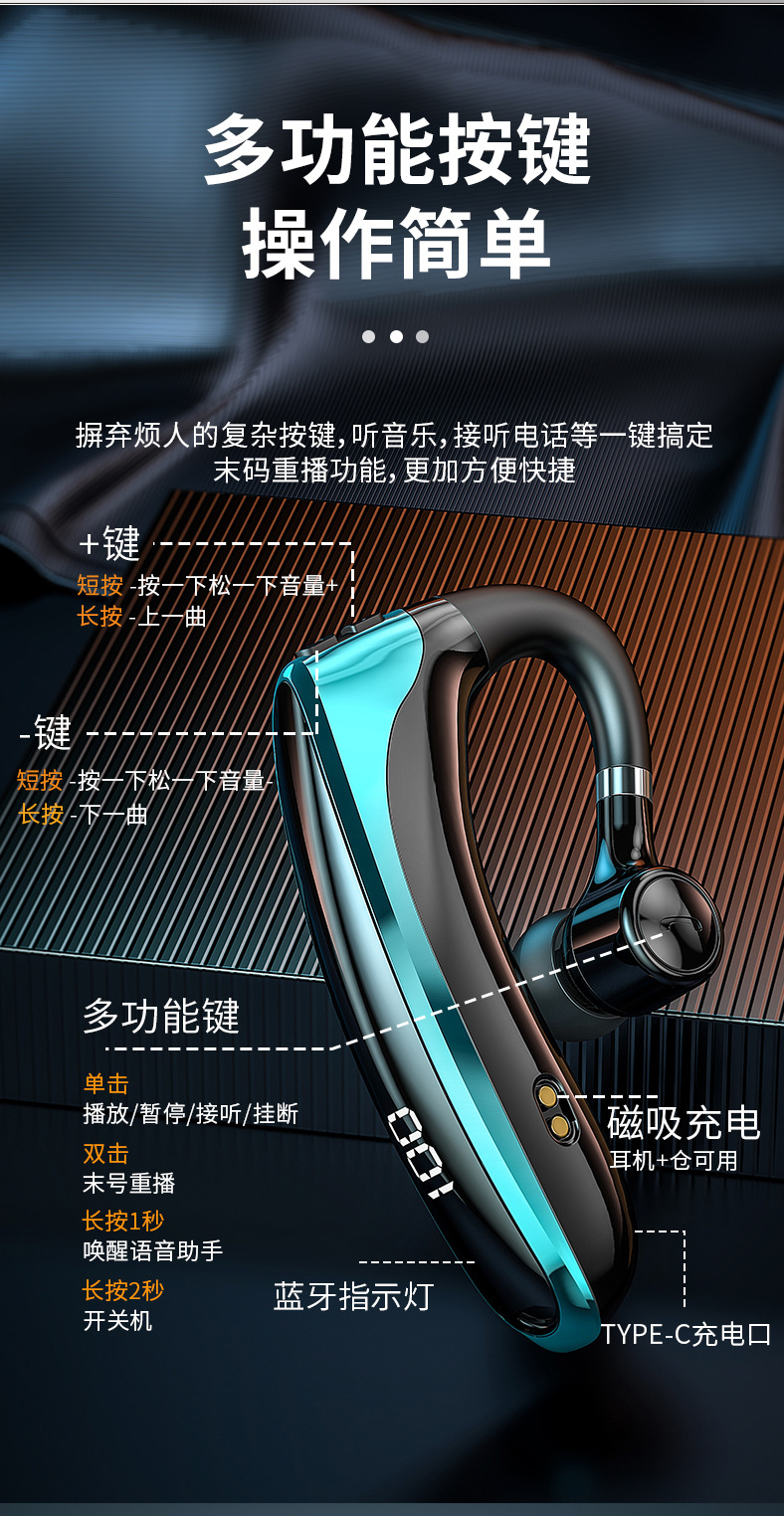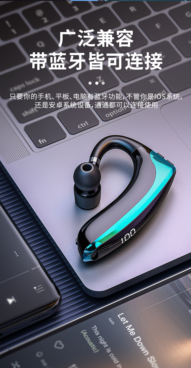 새로운 개인 모델 무선 블루투스 헤드셋 디지털 디스플레이 교수형 귀 모노 롱 지구력 인 이어 골전도 운동