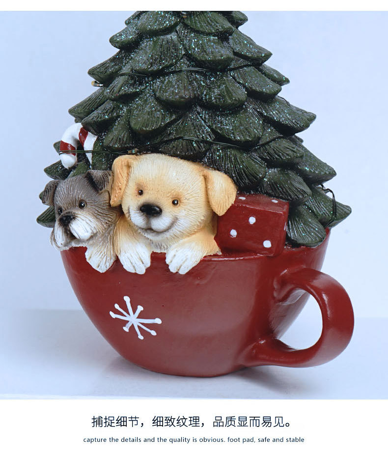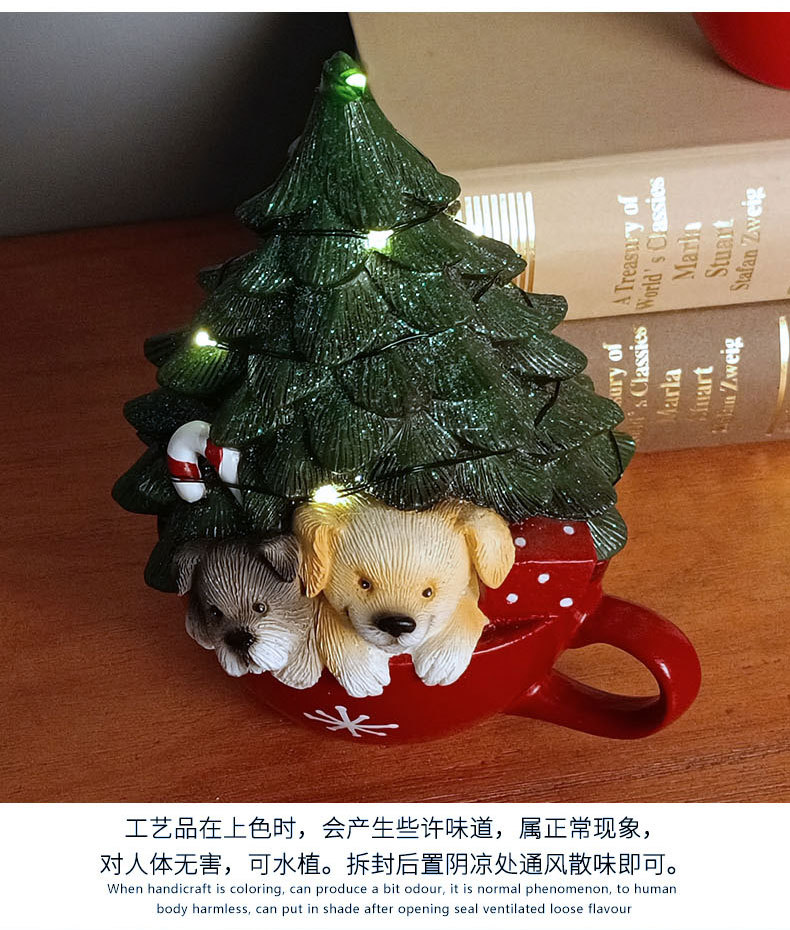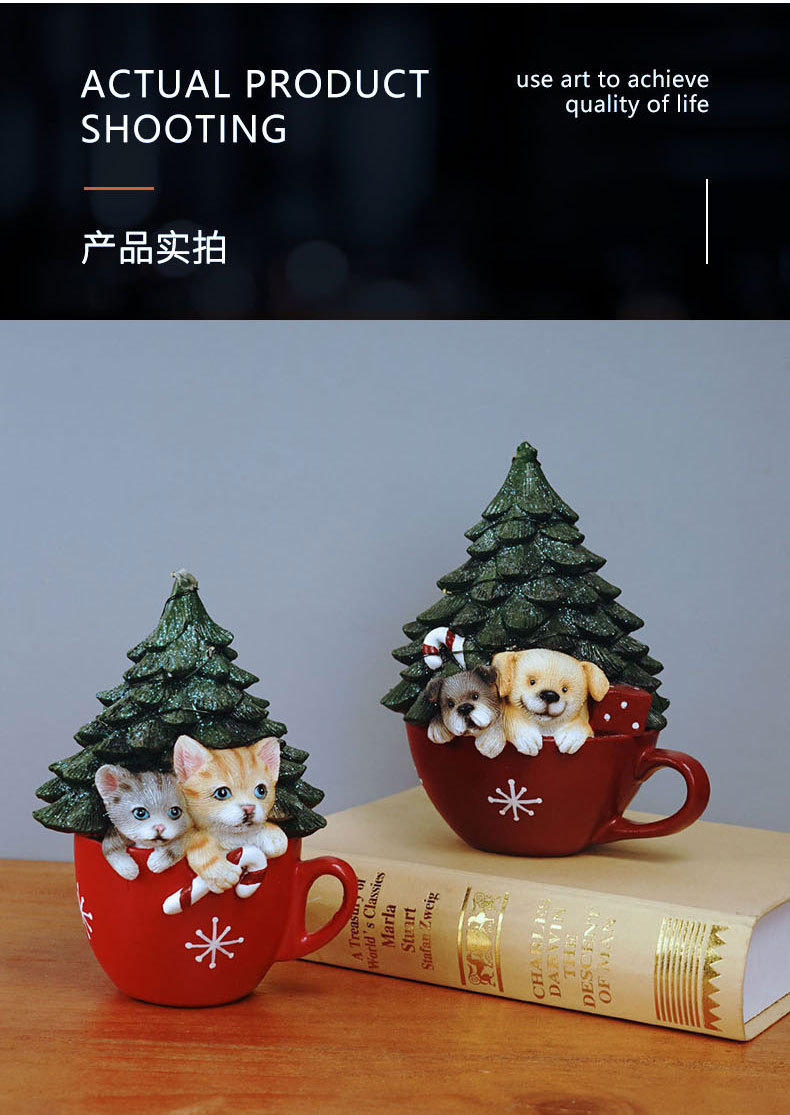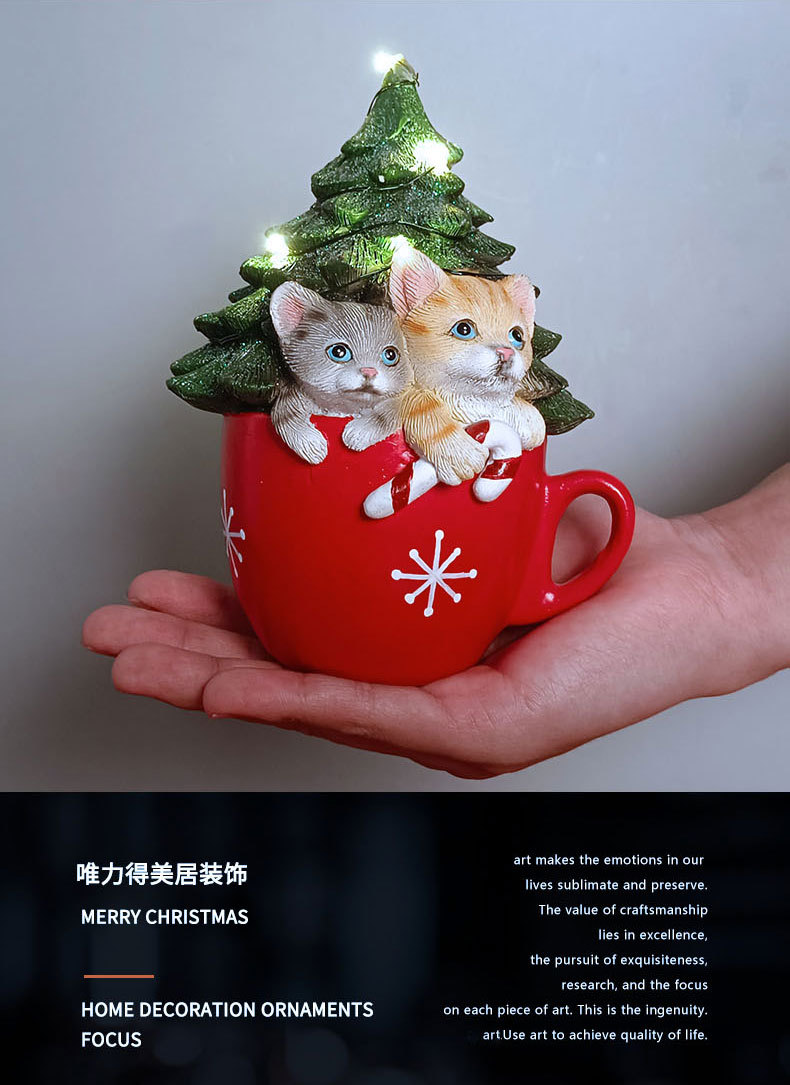 [특가] 크리스마스 발광 장식 창의적인 찻잔 고양이 장식품 레진 공예품 크리스마스 선물