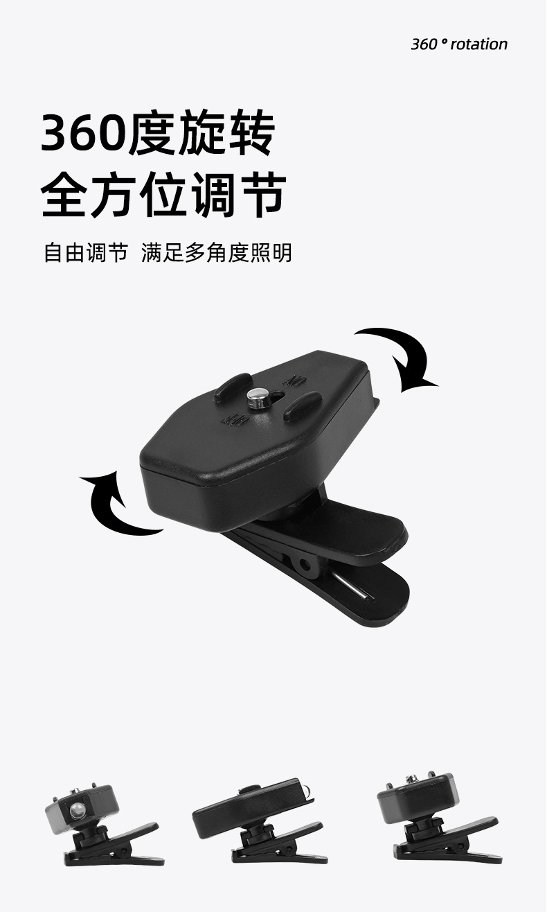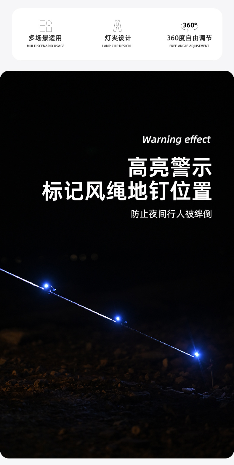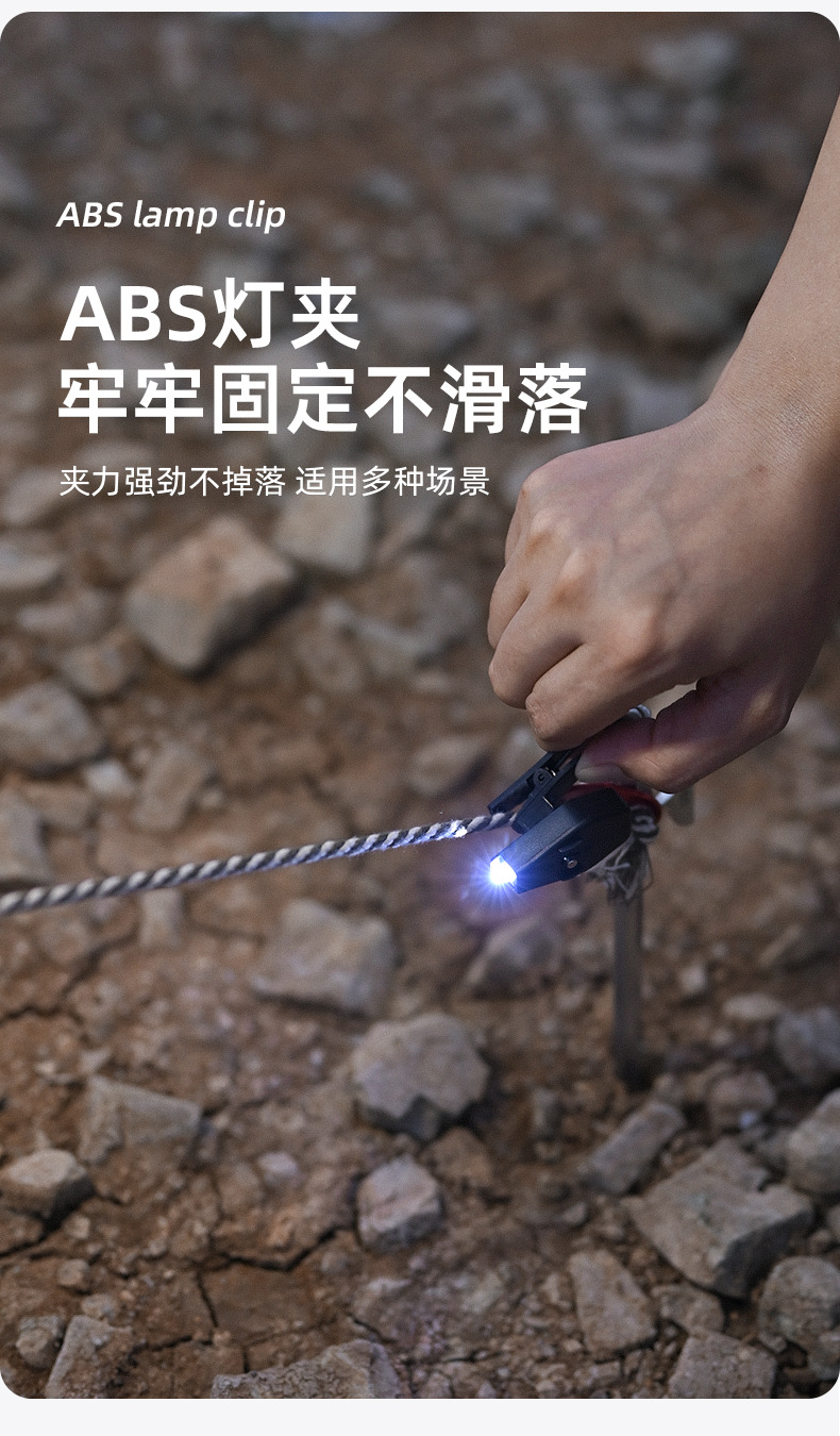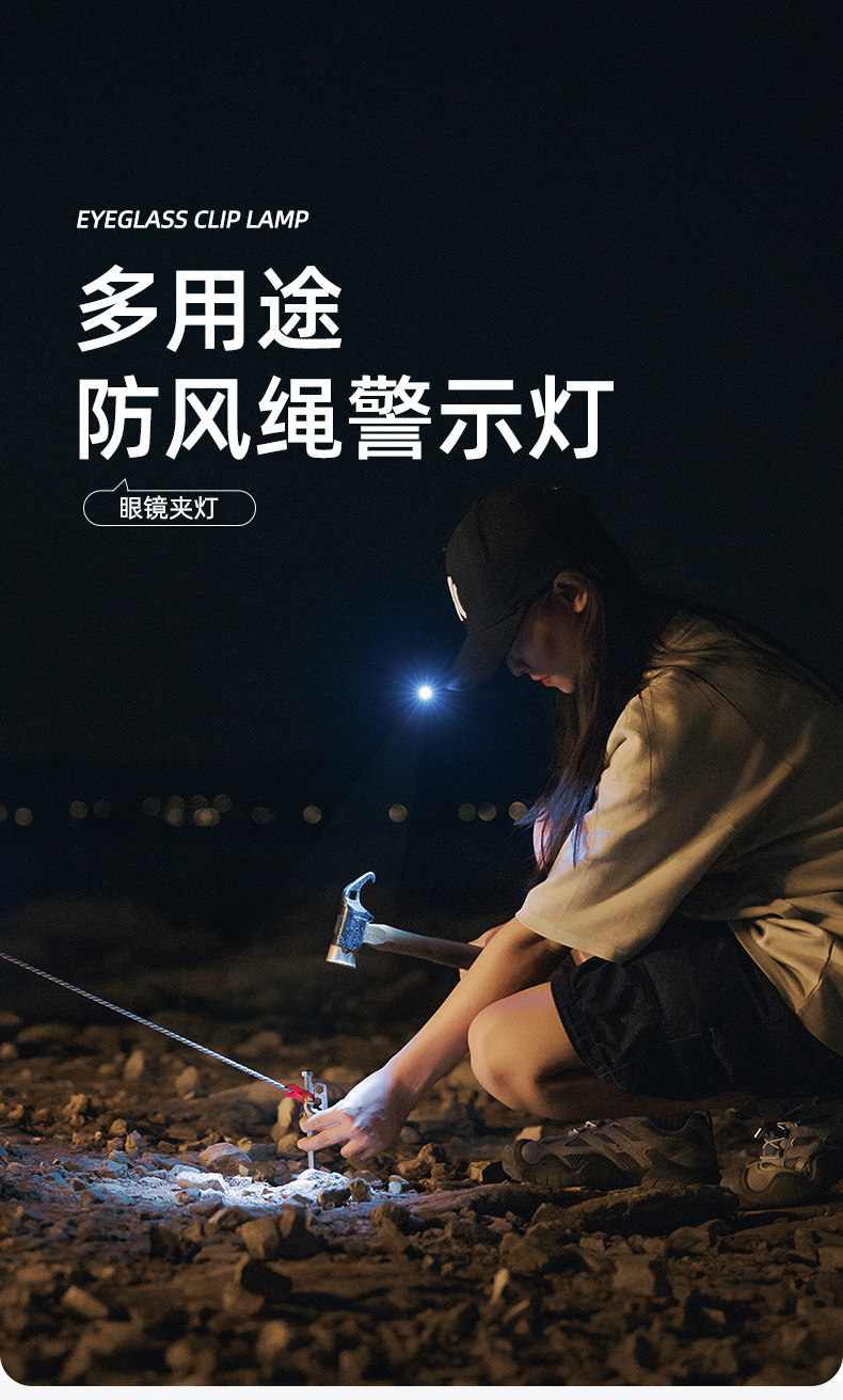 Shanqu 야외 안경 클립 LED 라이트 윈드 로프 경고등 야간 독서 조명 하이킹 360 도 회전 조절등