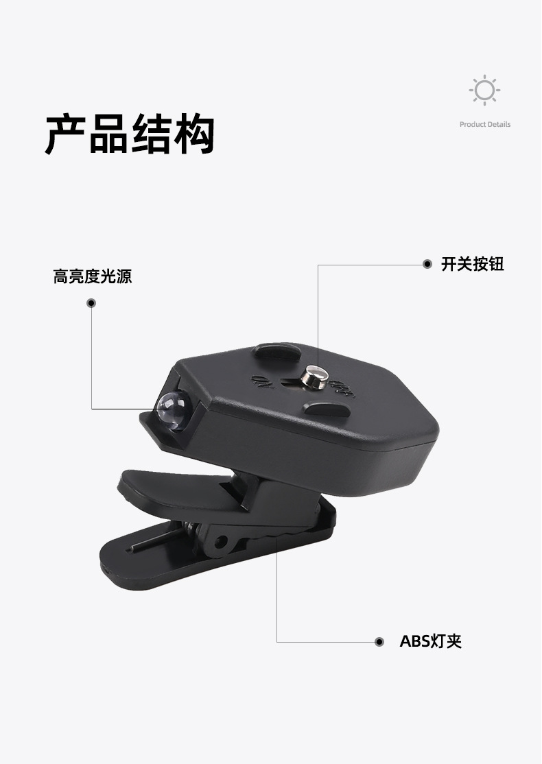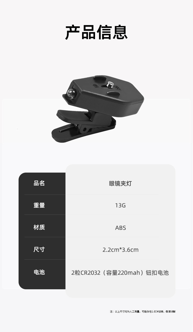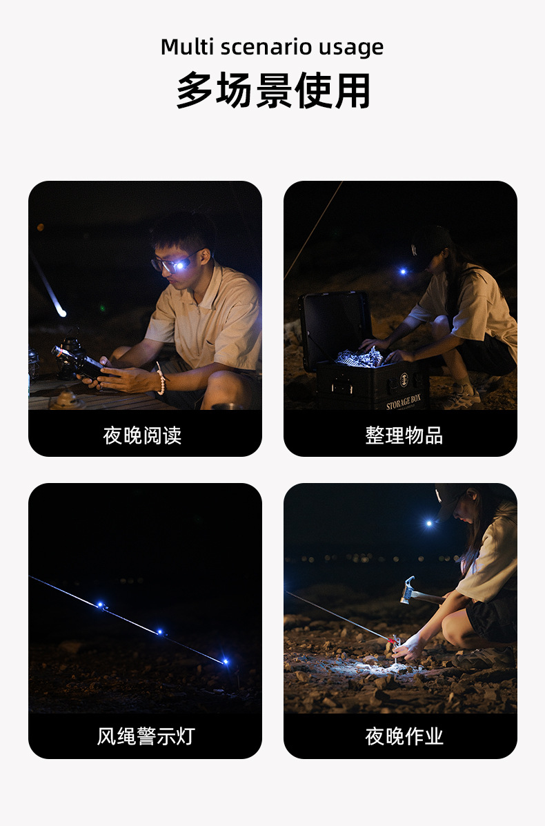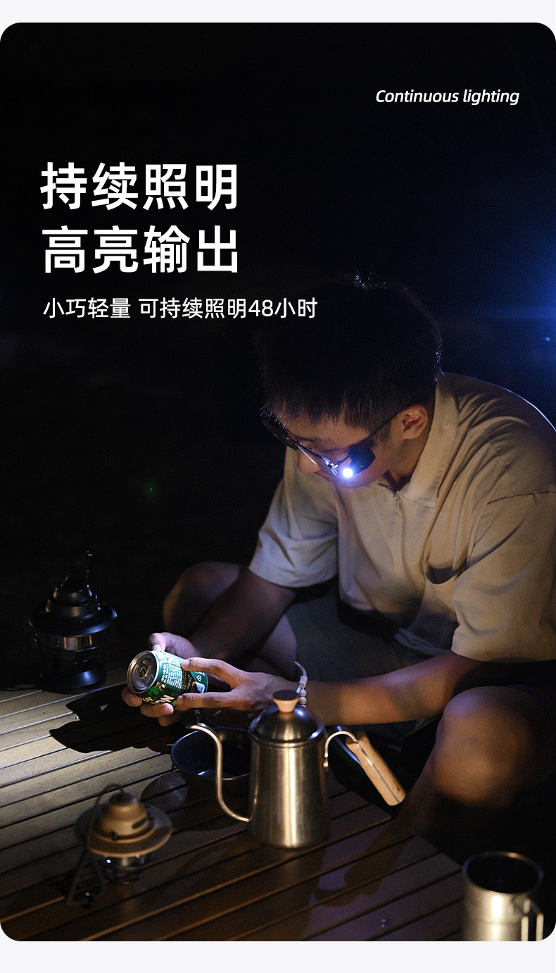 Shanqu 야외 안경 클립 LED 라이트 윈드 로프 경고등 야간 독서 조명 하이킹 360 도 회전 조절등