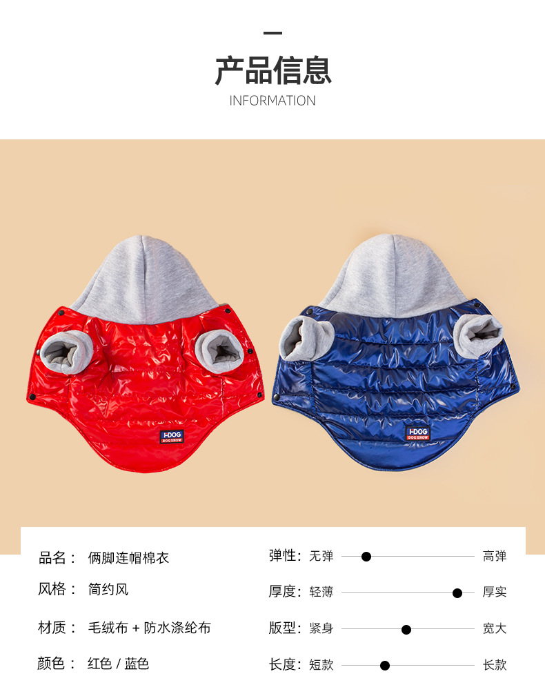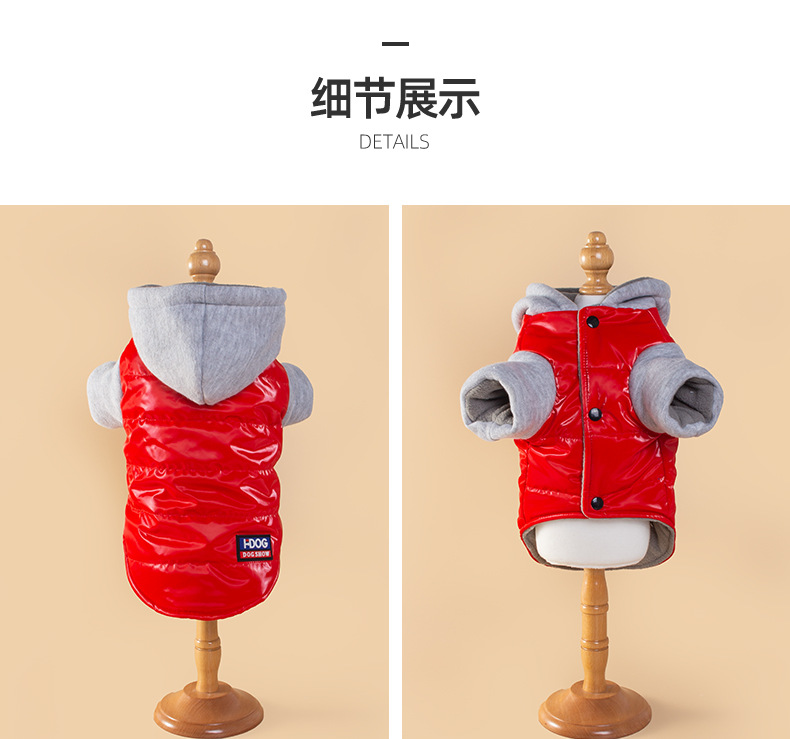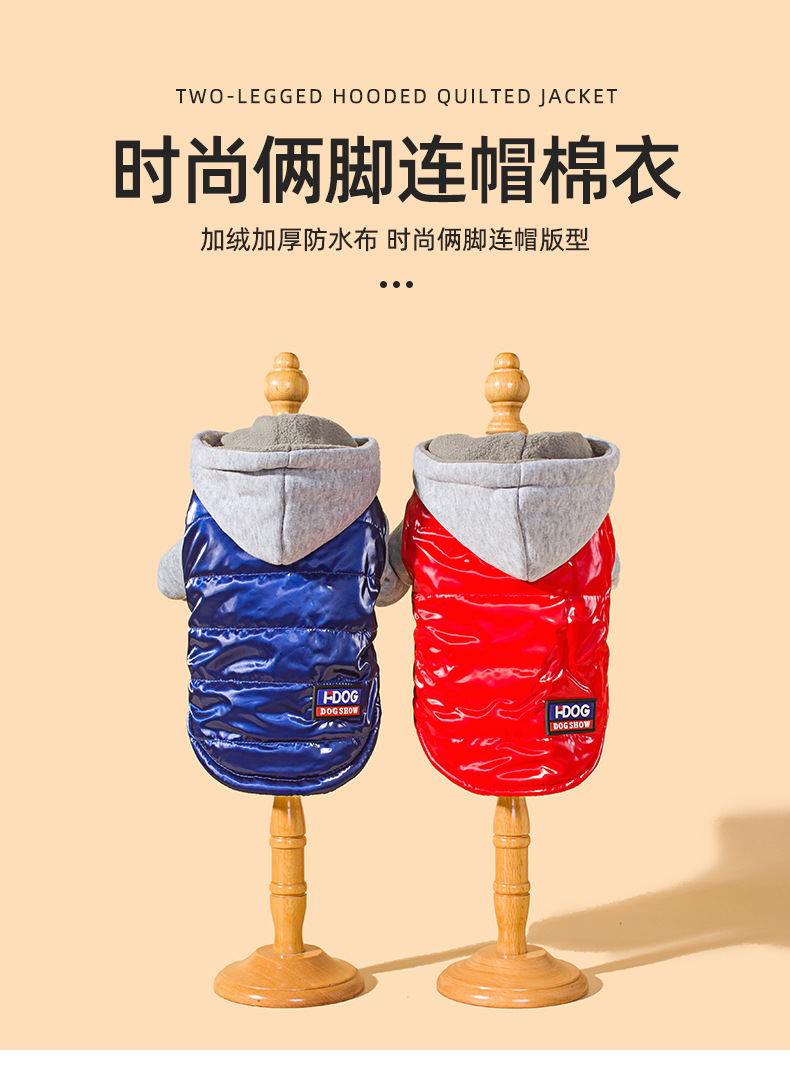 강아지 옷, 동파방지 겨울 신제품 애완동물 옷, 후드가 달린 두발 후드 면옷, 강아지 옷 공장스토어 가기
