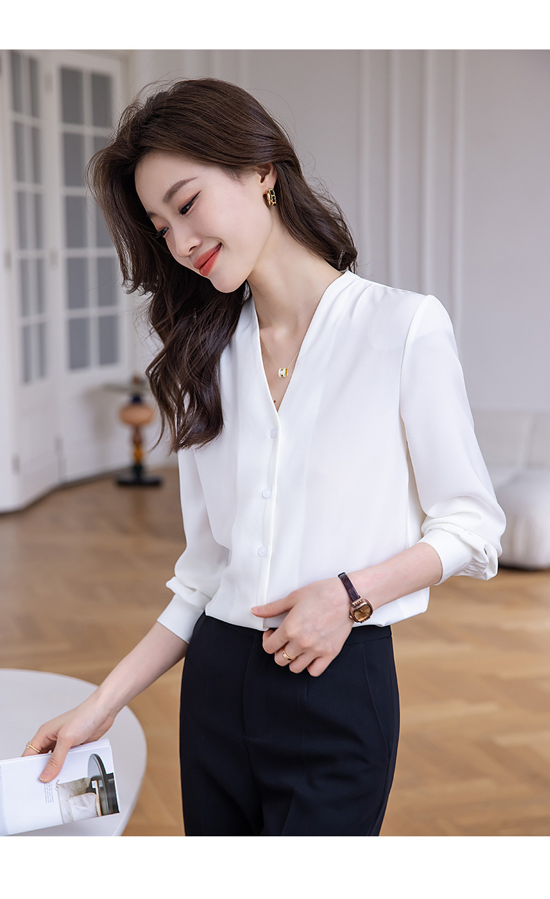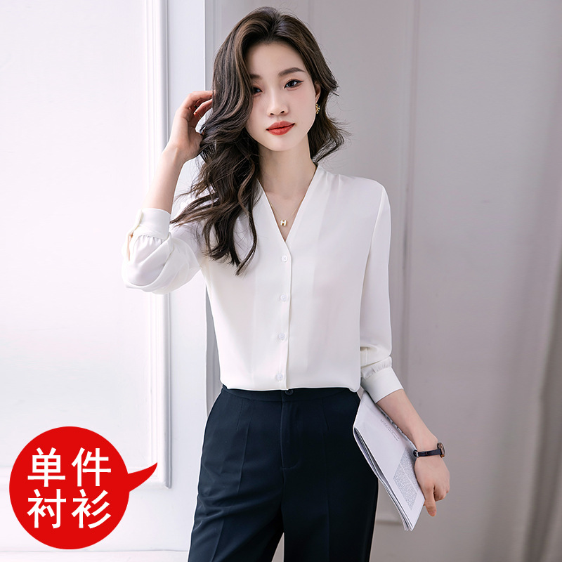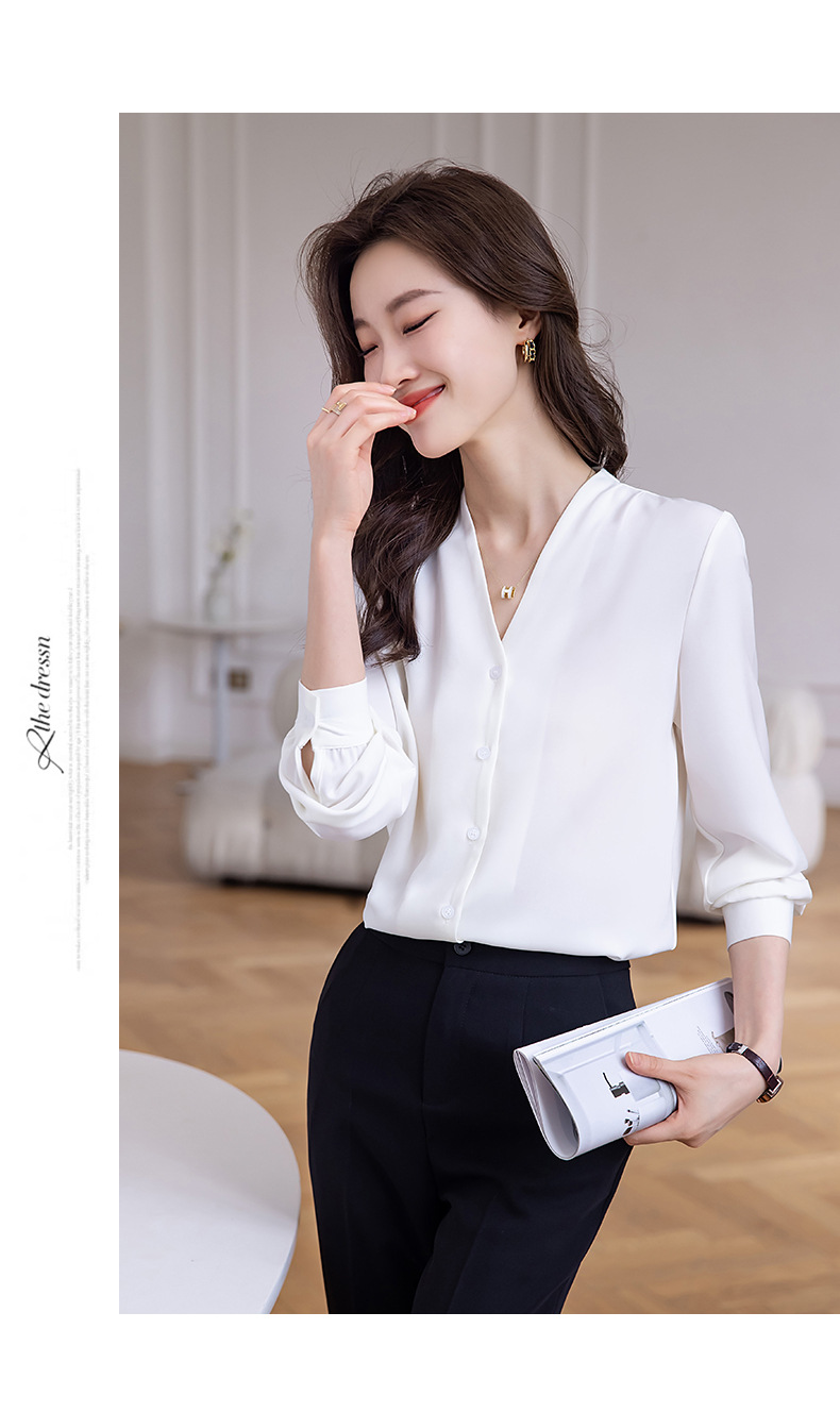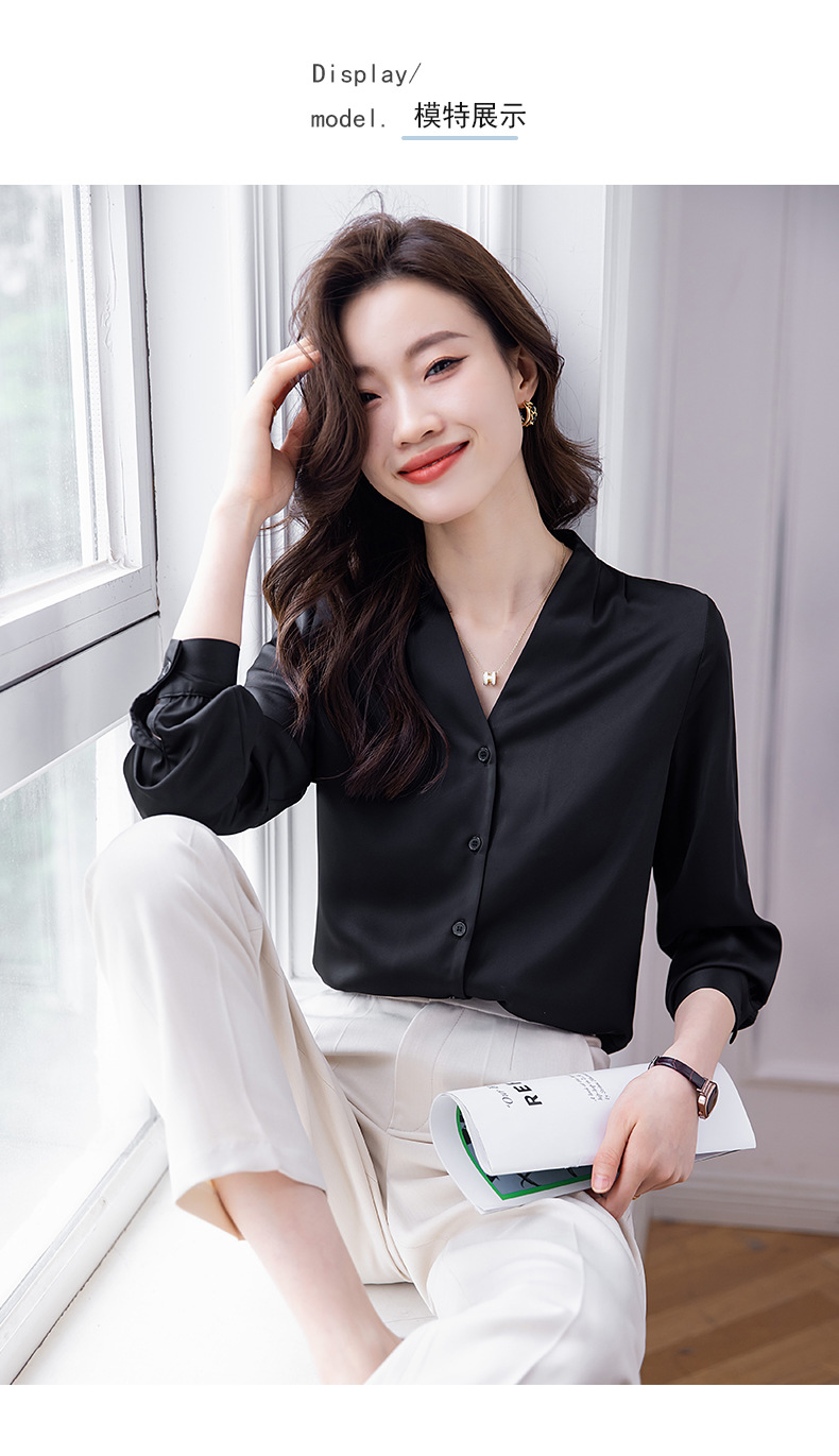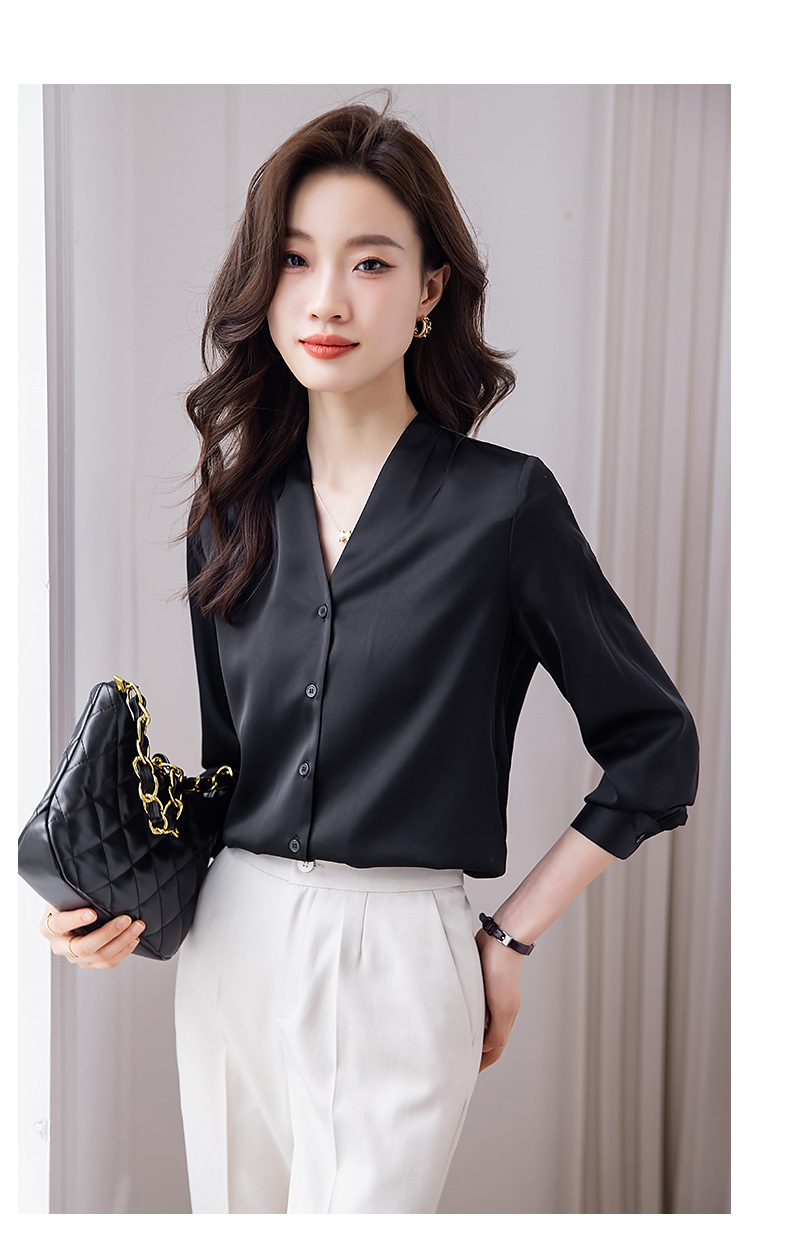 블랙 긴 소매 셔츠 여성의 패션 웨스턴 스타일 2023 가을 V-넥 쉬폰 셔츠 고급 전문 기질 탑 0