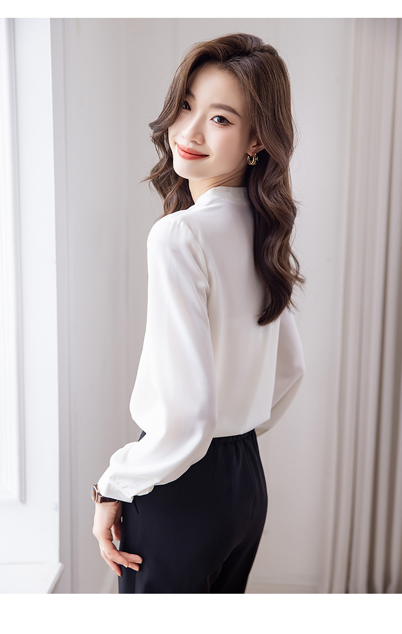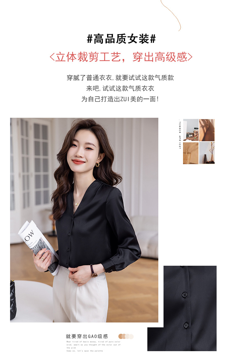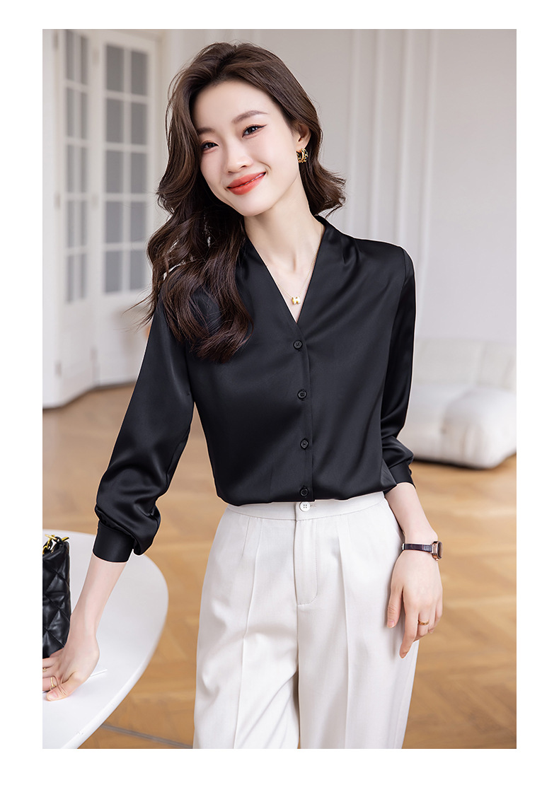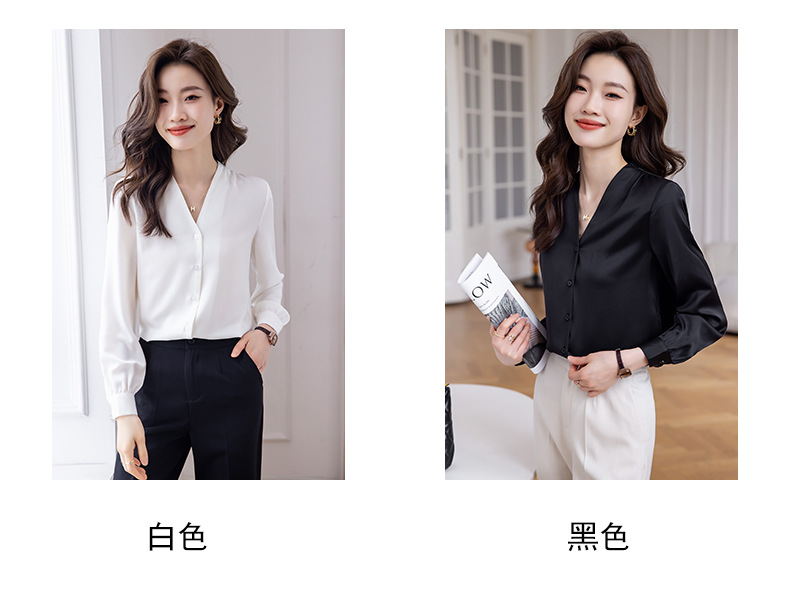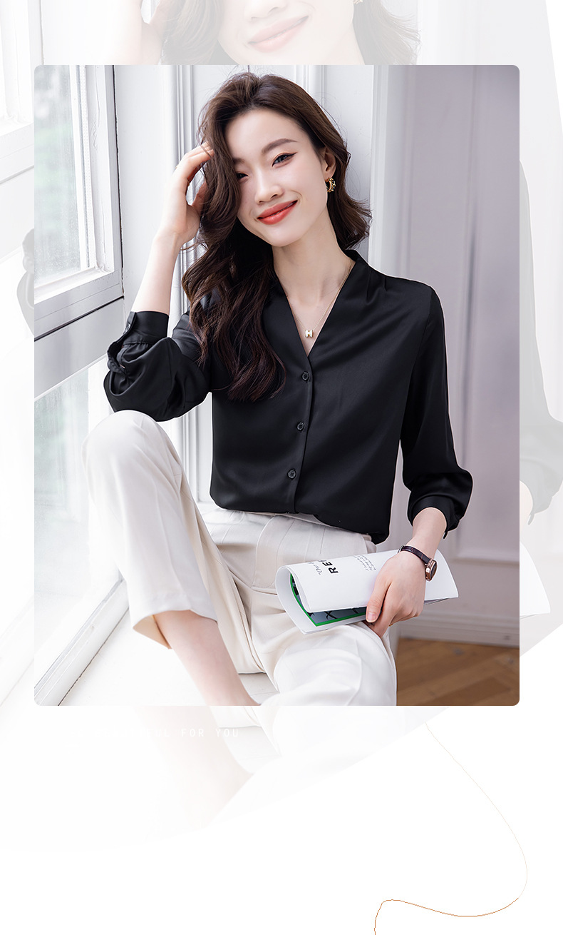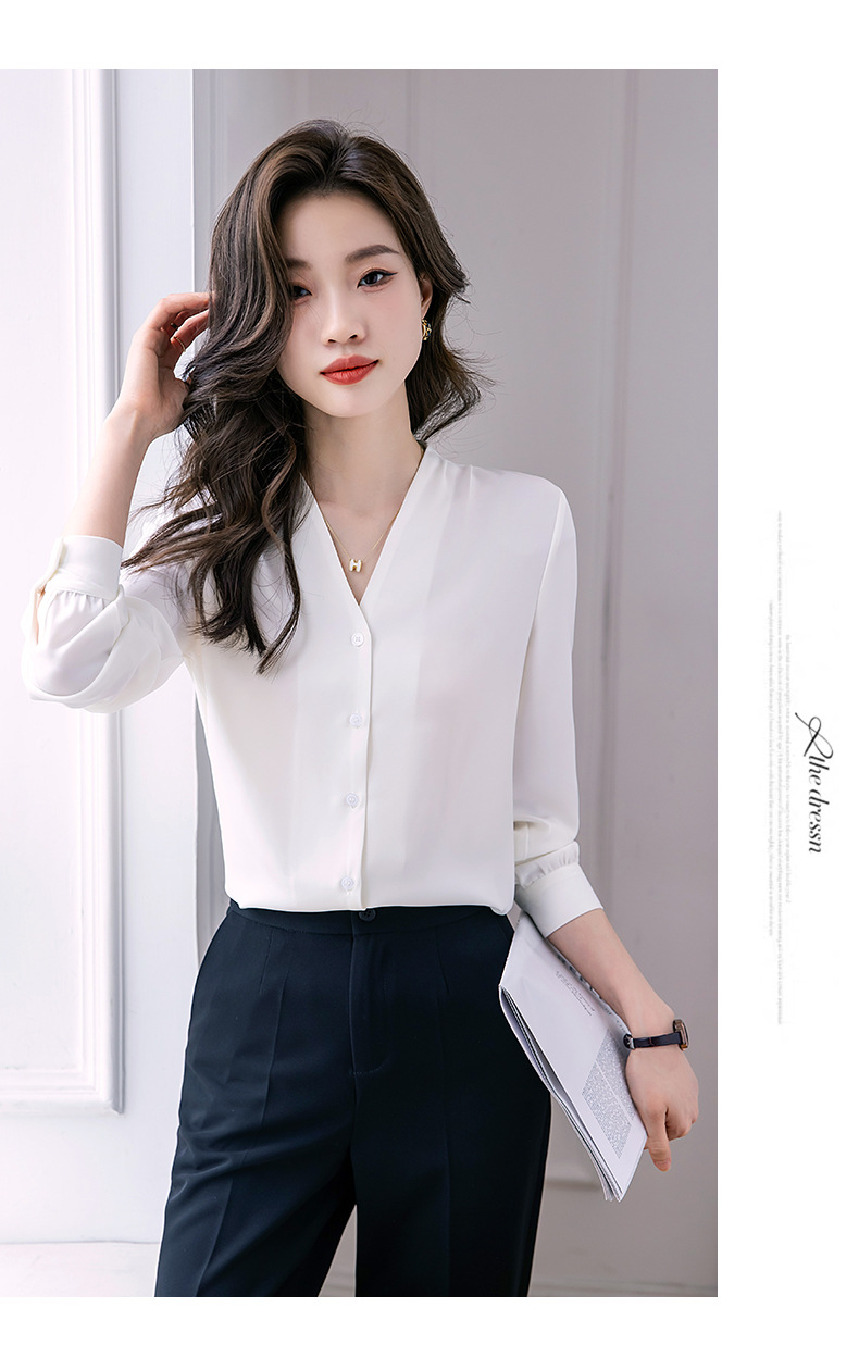 블랙 긴 소매 셔츠 여성의 패션 웨스턴 스타일 2023 가을 V-넥 쉬폰 셔츠 고급 전문 기질 탑 0