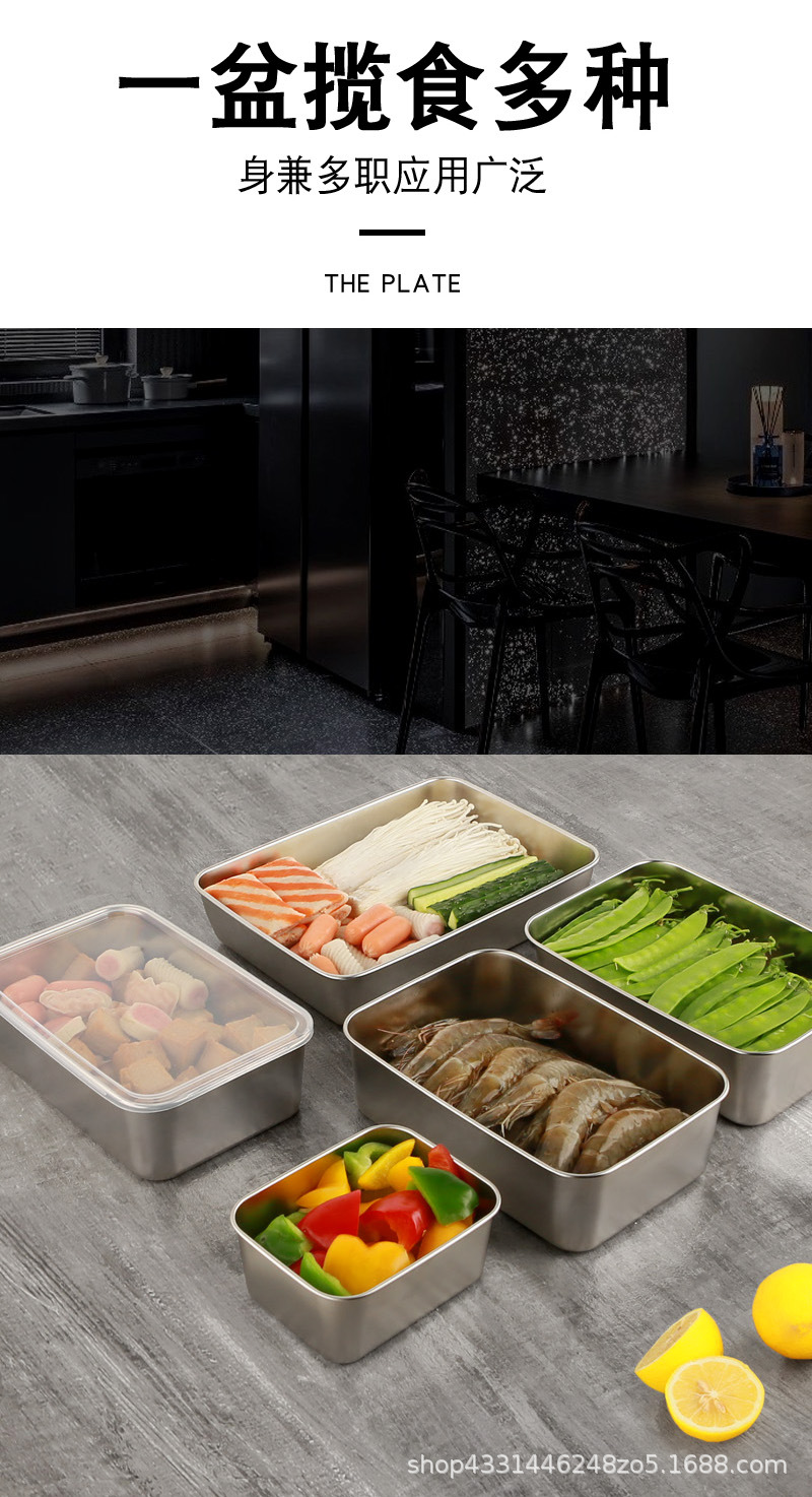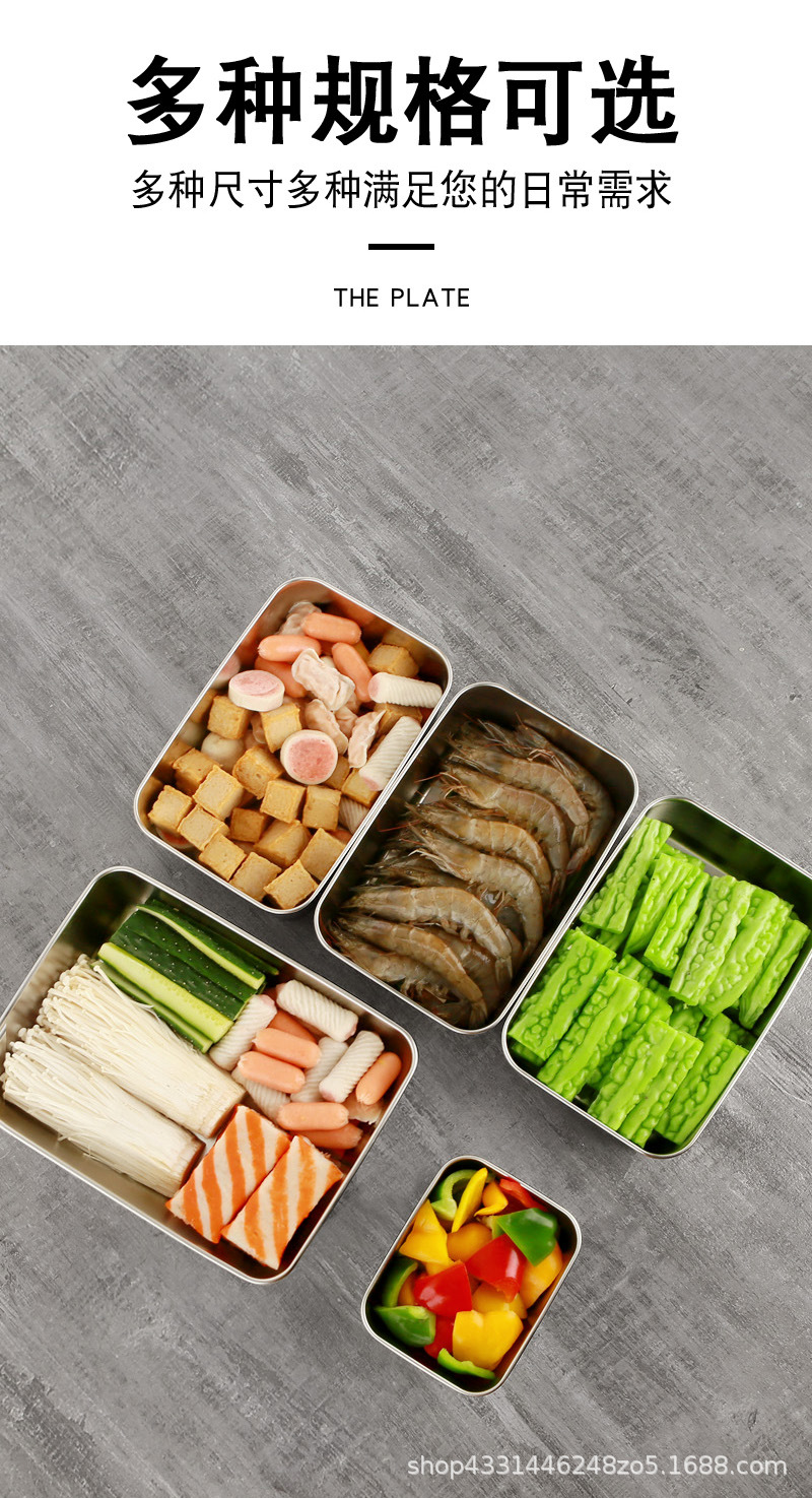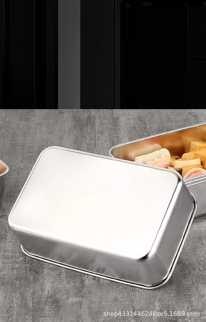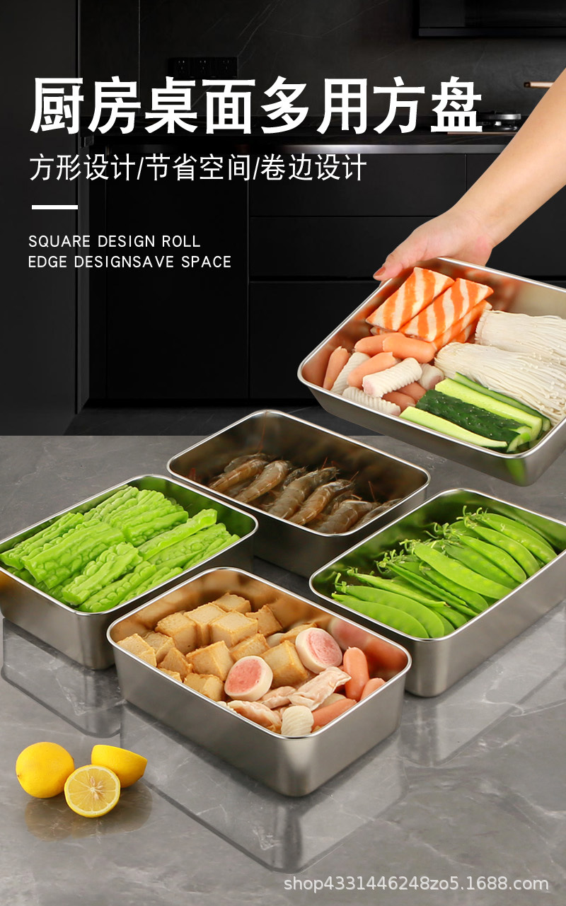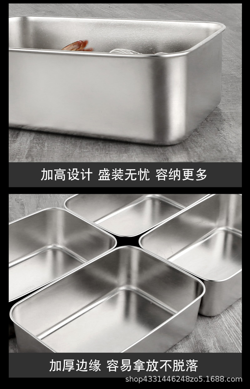 스테인레스 스틸 두꺼운 사각 접시 차가운 접시 주방 밀폐 트레이 베이킹 트레이 스테인레스 스틸 상업용 뷔페 플랫 바닥 플레이트스토어 가기