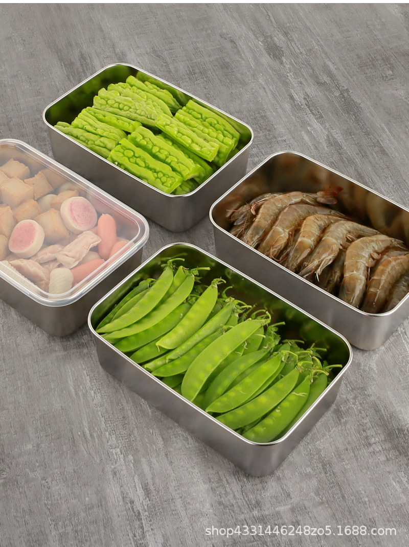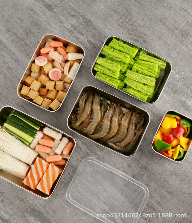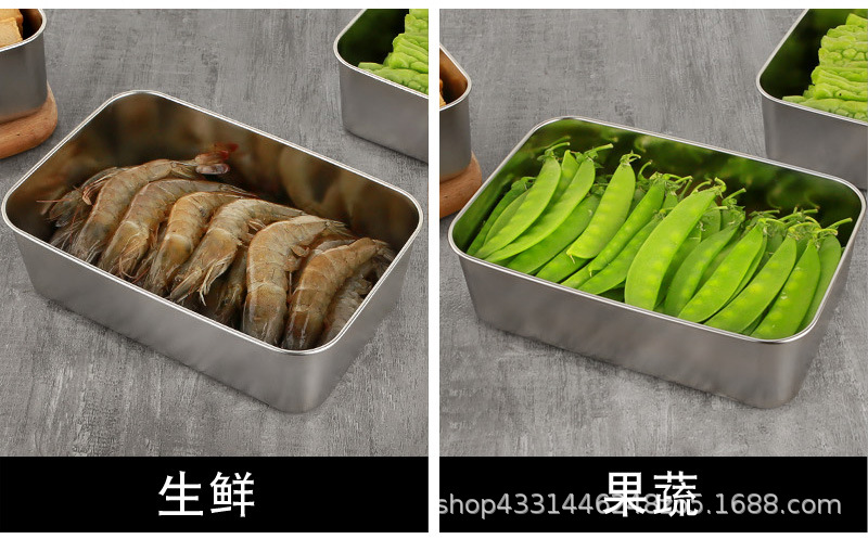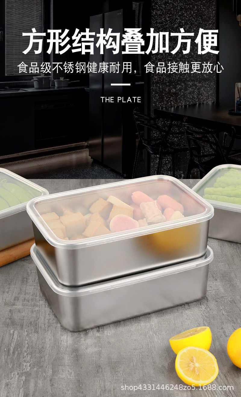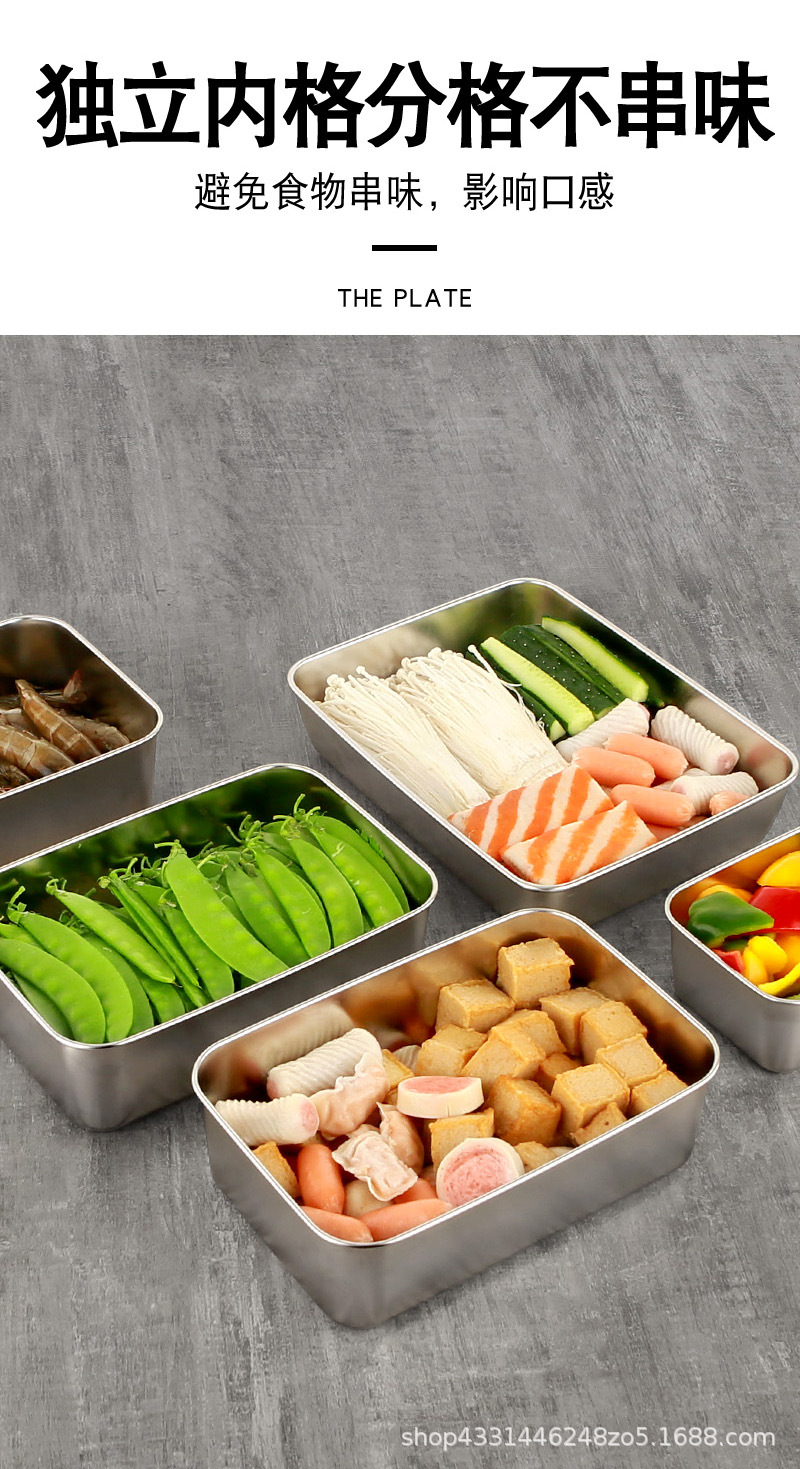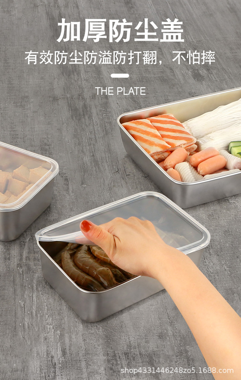 스테인레스 스틸 두꺼운 사각 접시 차가운 접시 주방 밀폐 트레이 베이킹 트레이 스테인레스 스틸 상업용 뷔페 플랫 바닥 플레이트스토어 가기
