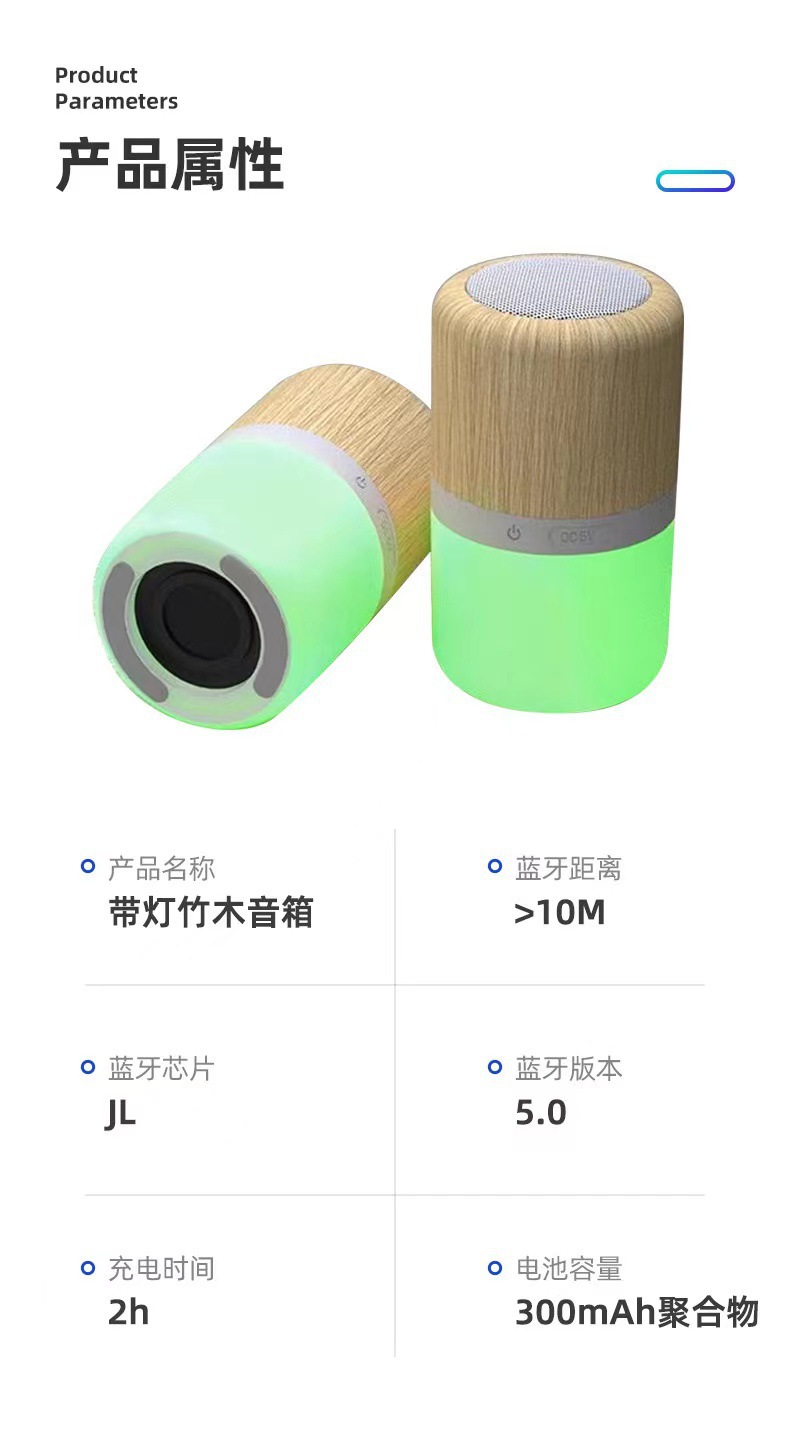 새로운 무선 미니 RGB 천막 대나무 나무 블루투스 스피커 서브 우퍼 선물 야간 조명 소형 사운드 박스 도매