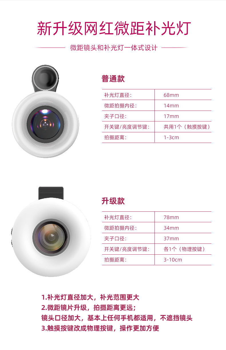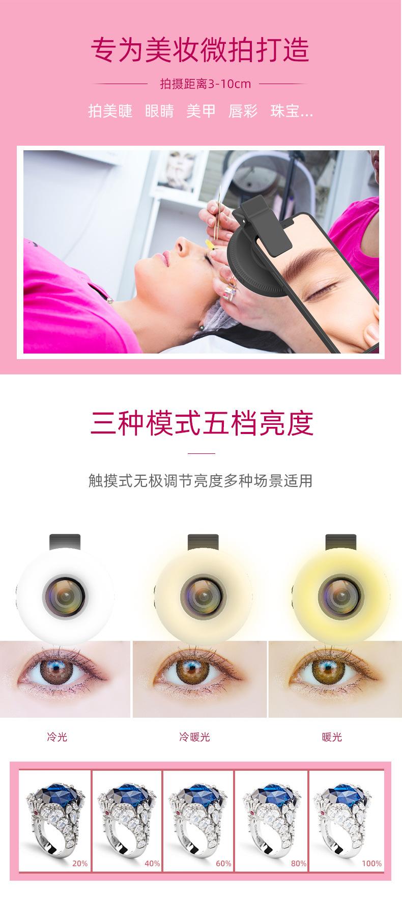 LQ-191 새로운 업그레이드 매크로 필 라이트 15X 속눈썹 네일 쥬얼리 클로즈업 카메라 폰 렌즈 필 라이트
