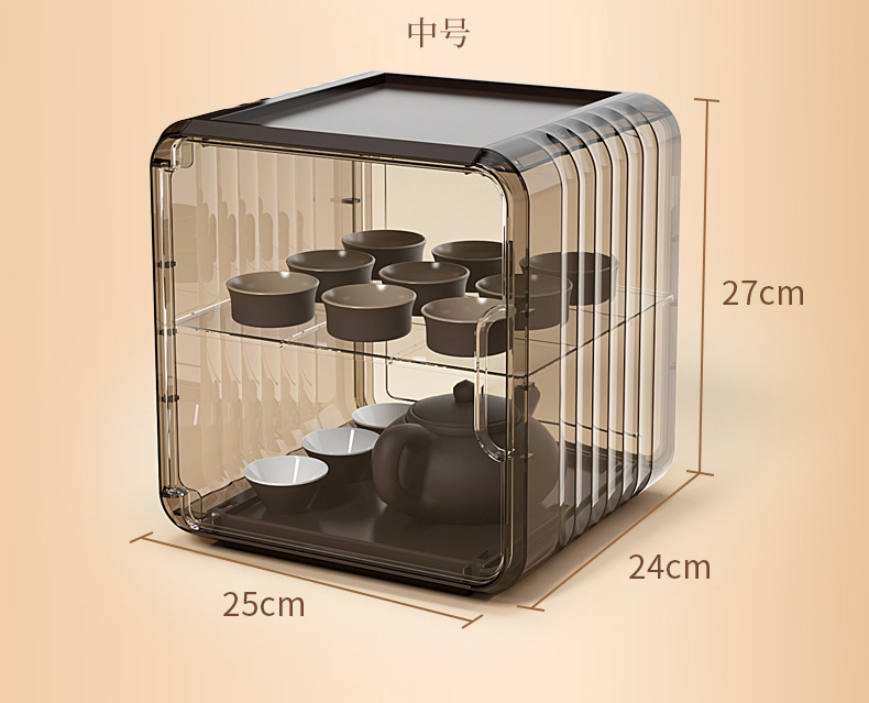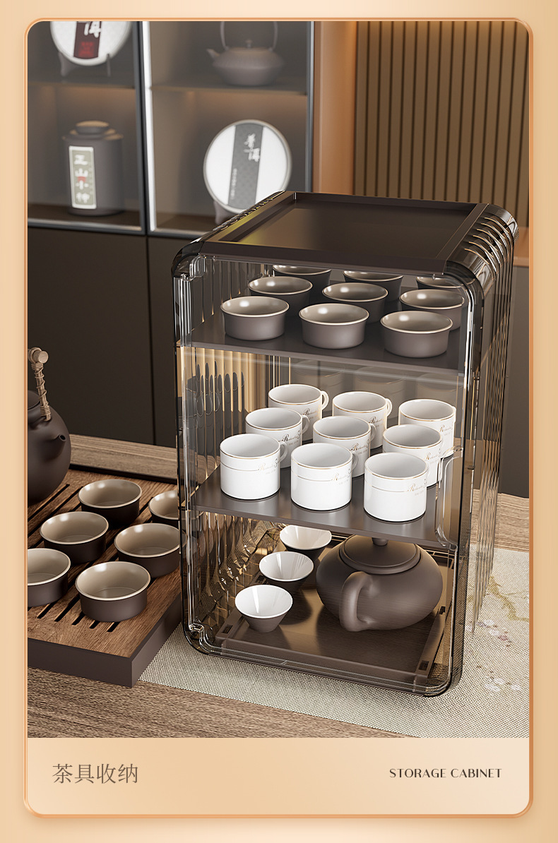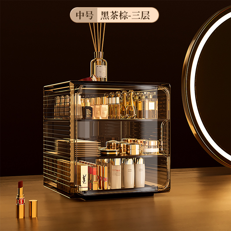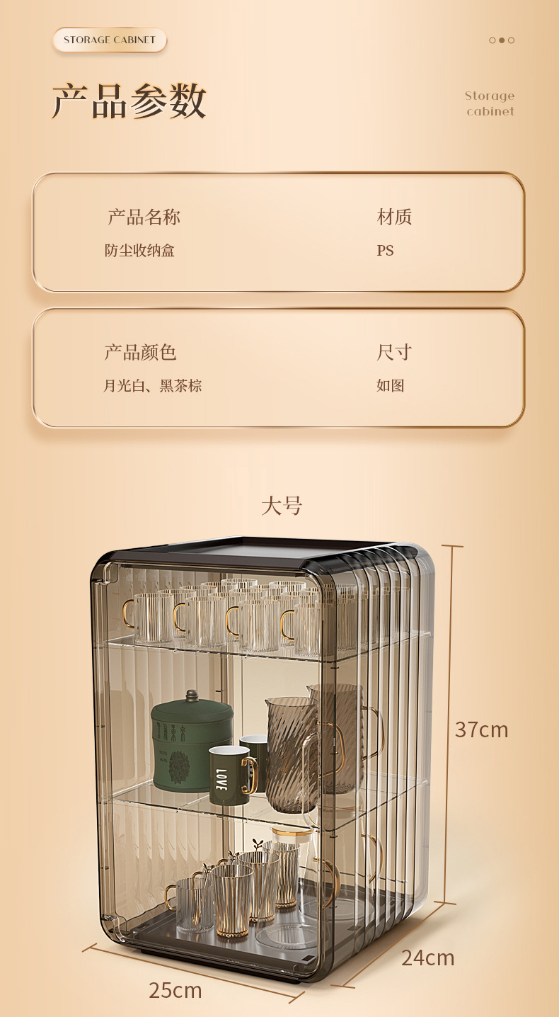 • 방진 보관 캐비닛 대형 3 층 블랙 티 다크 브라운