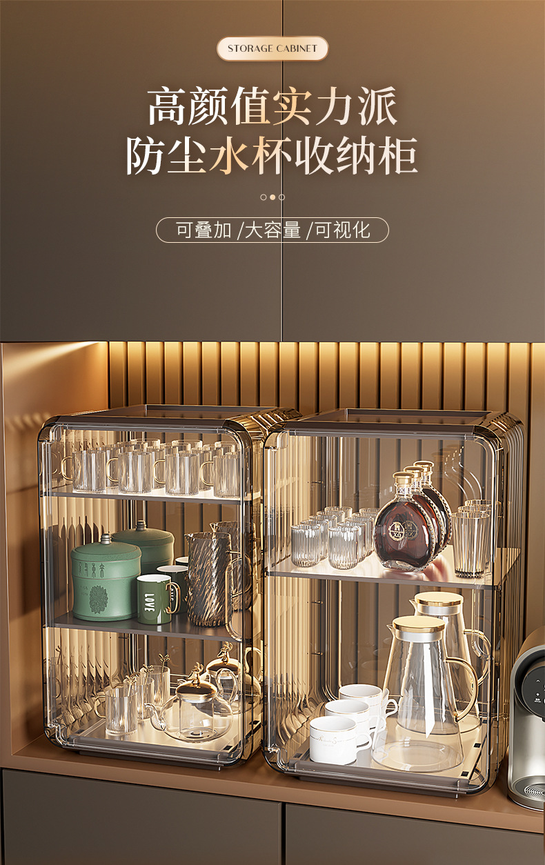 방진 보관 캐비닛 조명 럭셔리 고가의 중첩 가능한 투명 거실 사무실 데스크탑 캐비닛 컵 보관 랙