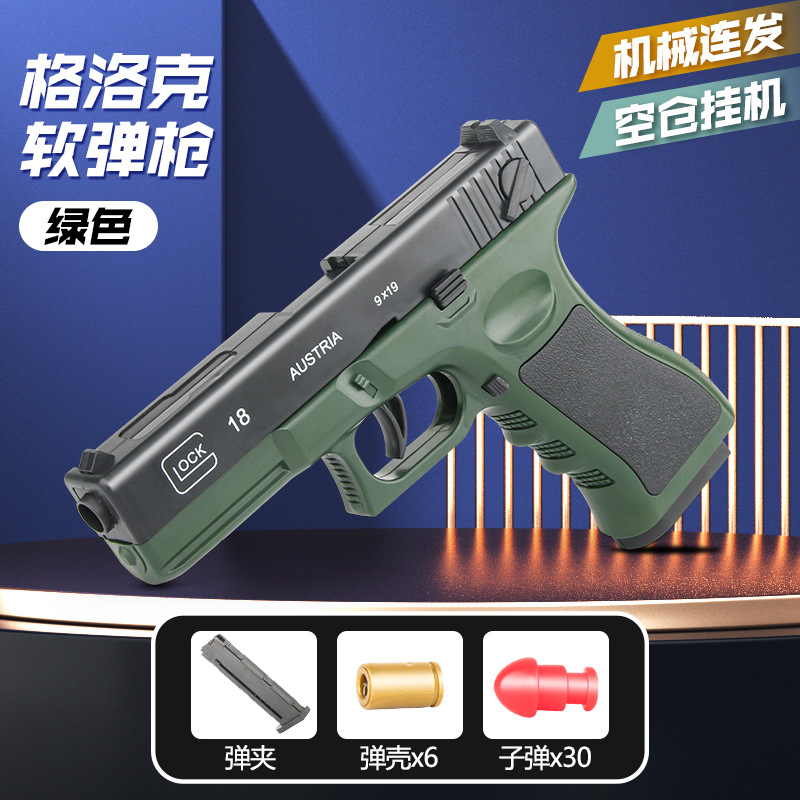 콜트 1911 소프트 폭탄 리버스 블로우 완전 자동 보어 및 쉘 던지기 글록 권총 기계식 연속 샷 장난감 총