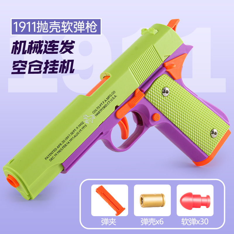 콜트 1911 소프트 폭탄 리버스 블로우 완전 자동 보어 및 쉘 던지기 글록 권총 기계식 연속 샷 장난감 총스토어 가기