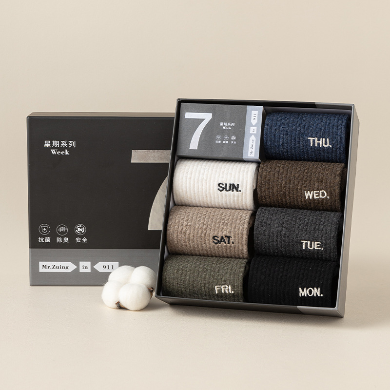 주 선물 상자 남자 양말 뼈없는 양말 머리 항균 탈취제 필링 고탄력 주 7 일 양말 영어 자수