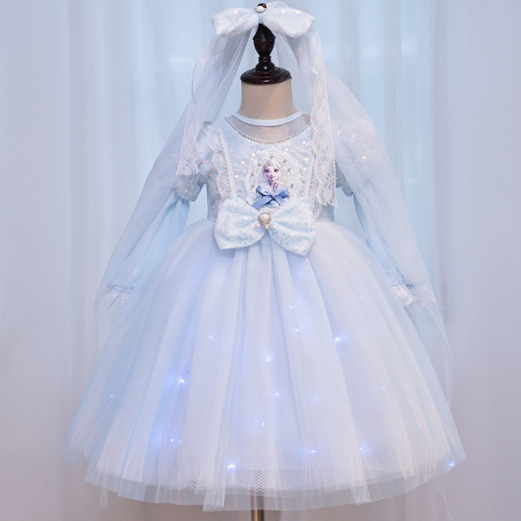 냉동 빛나는 아이샤 공주 원피스 아이샤 원피스 소녀 가을 긴 소매 새로운 아이들의 생일 원피스