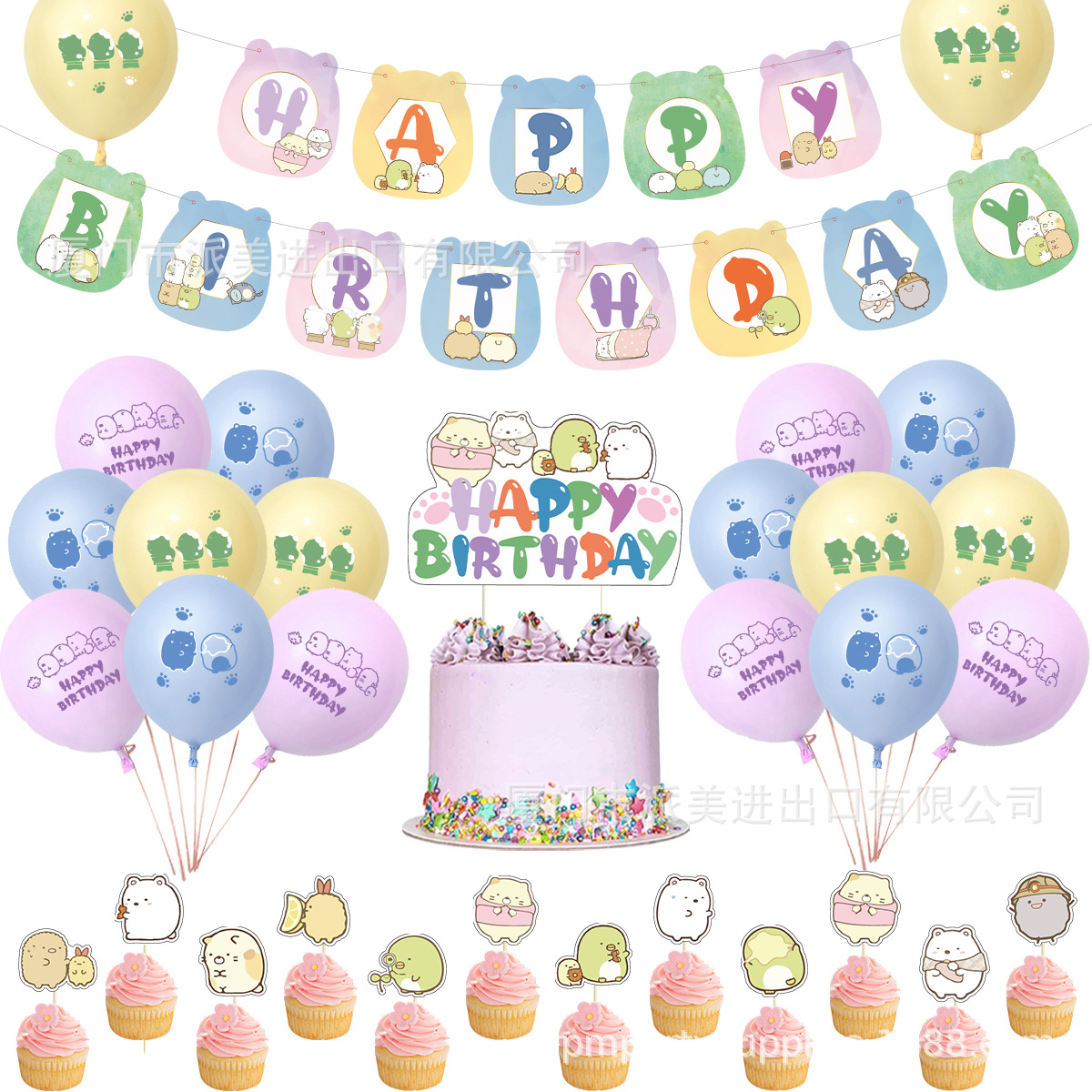 코너 생물 테마 파티 장식 생일 편지 배너 케이크 삽입 카드 플래그 풍선 배경 레이아웃 세트