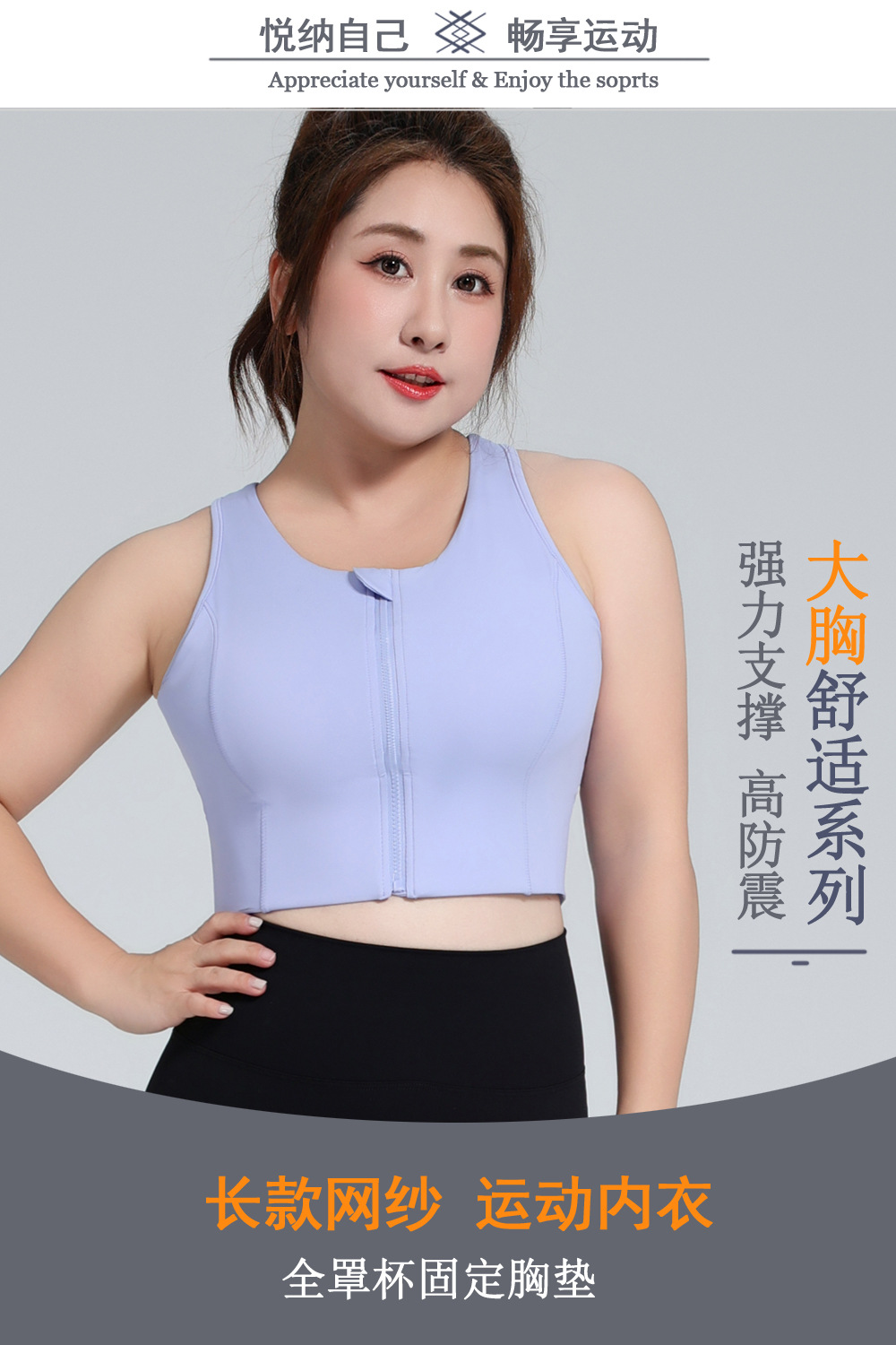 가을 새로운 전면 지퍼 스포츠 속옷 여성용 고강도 원피스 롱 트레이닝 조끼 메쉬 피트니스 브라