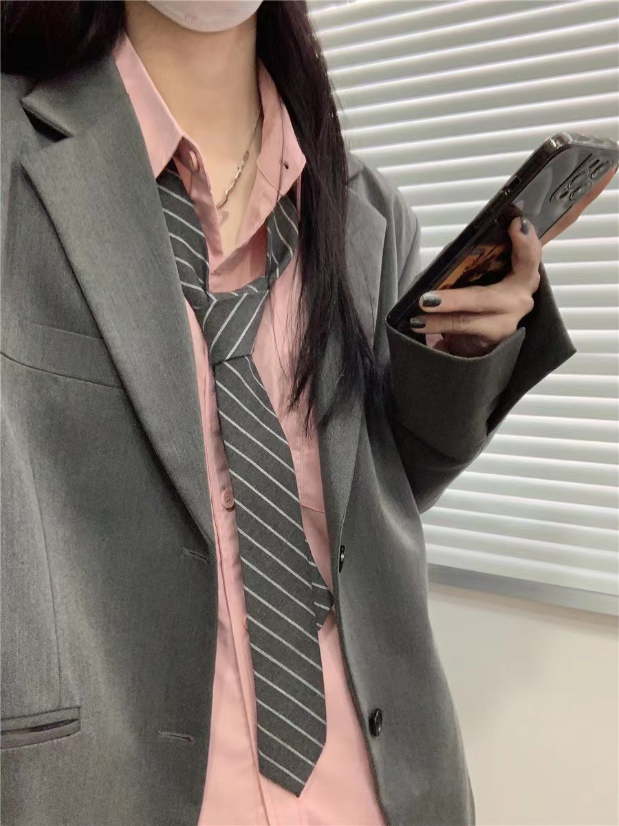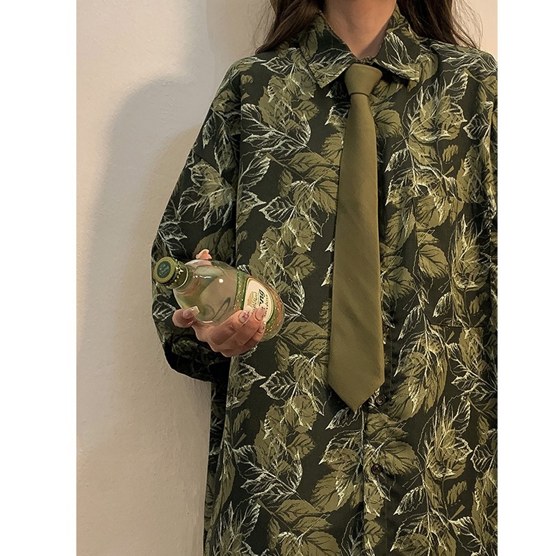 다크 브라운 단색 넥타이 여자의 녹색 손 커피 빈티지 일본 학생 셔츠 전문 장식 캐주얼 모든 일치 유행스토어 가기