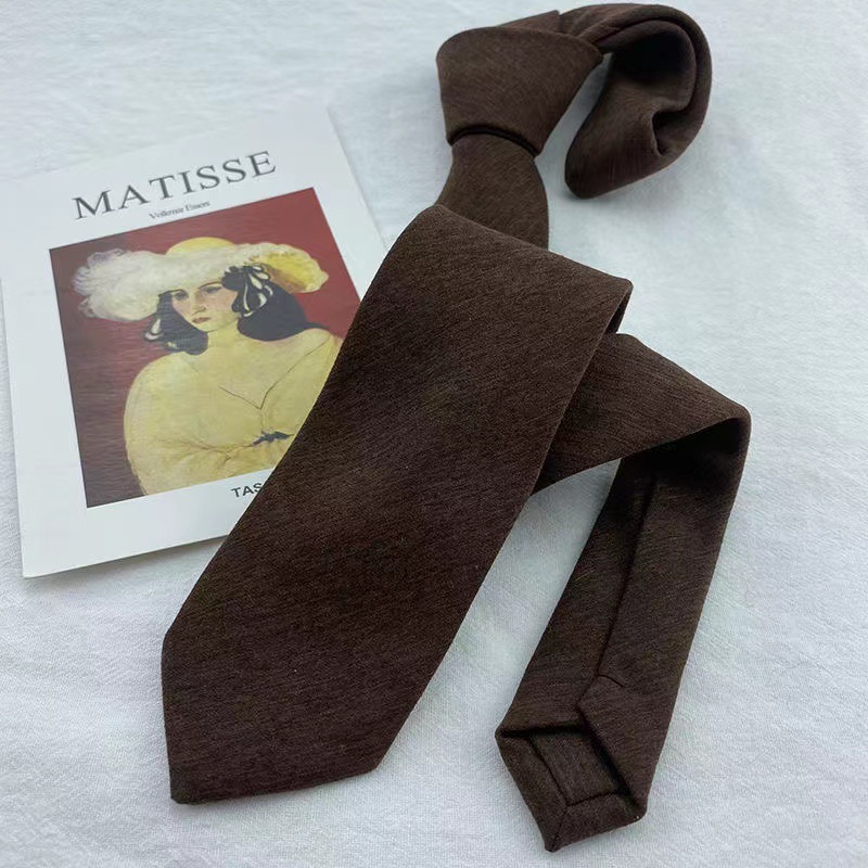 다크 브라운 단색 넥타이 여자의 녹색 손 커피 빈티지 일본 학생 셔츠 전문 장식 캐주얼 모든 일치 유행