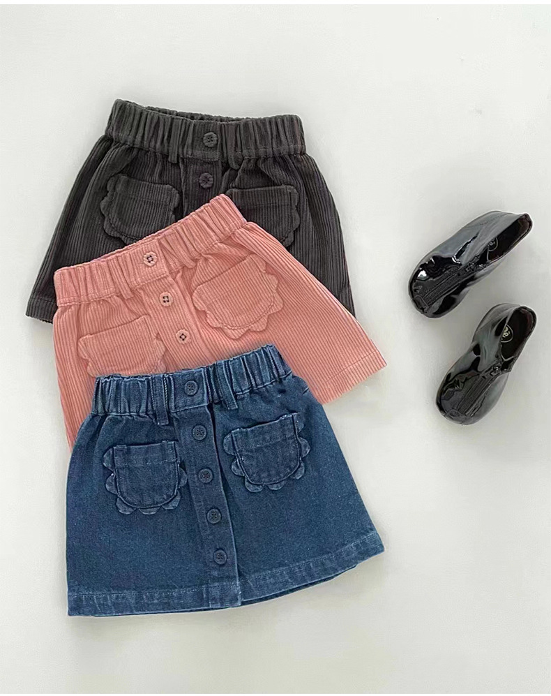 여자 레이스 포켓 코듀로이 스커트 2025 가을 새로운 패션 가을 스커트 어린이 면화 스커트