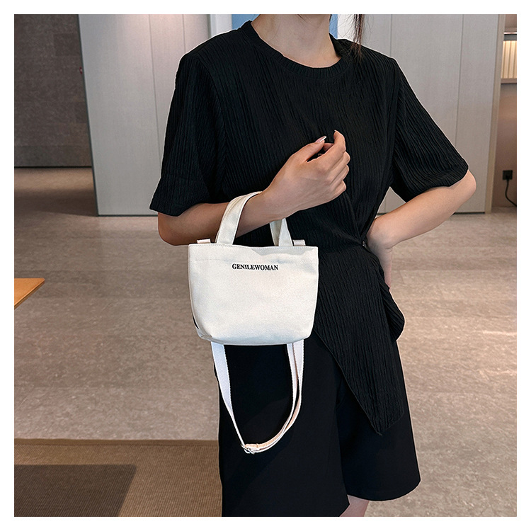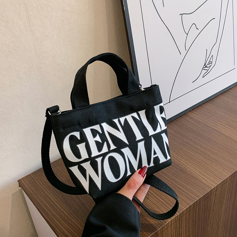 휴대용 미니 스퀘어 백 런치 백 트렌디 한 유행 양면 편지 인쇄 새로운 스타일 타이 캔버스 숄더 크로스 바디 백