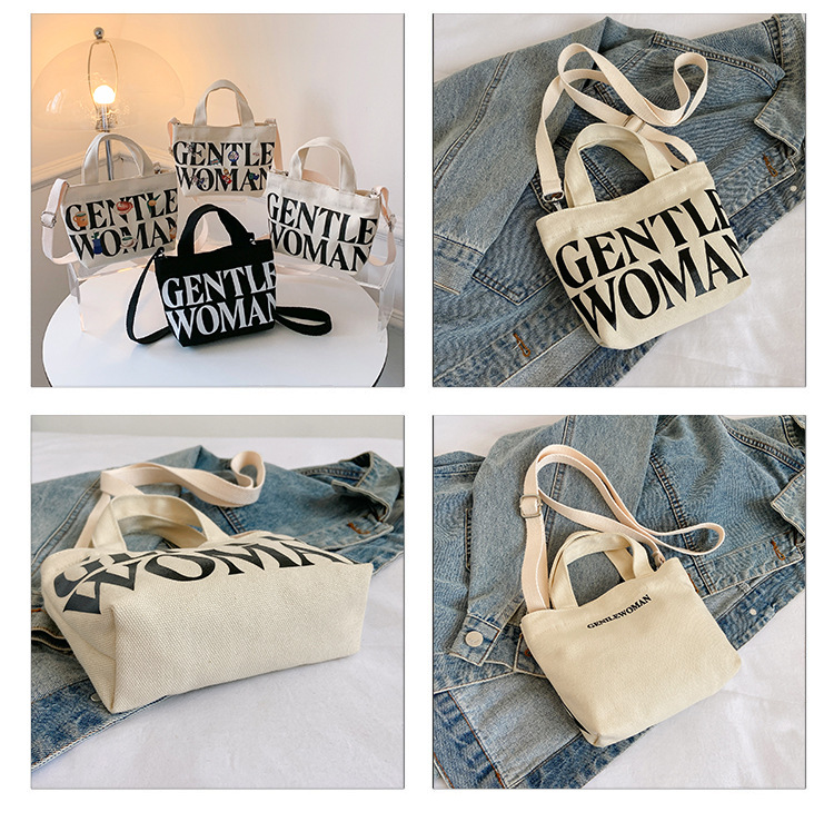 휴대용 미니 스퀘어 백 런치 백 트렌디 한 유행 양면 편지 인쇄 새로운 스타일 타이 캔버스 숄더 크로스 바디 백스토어 가기